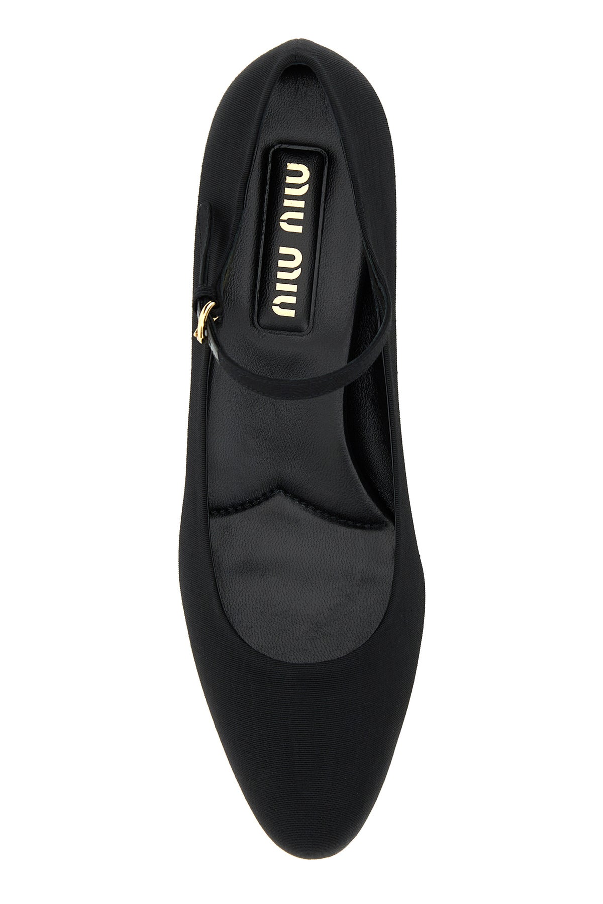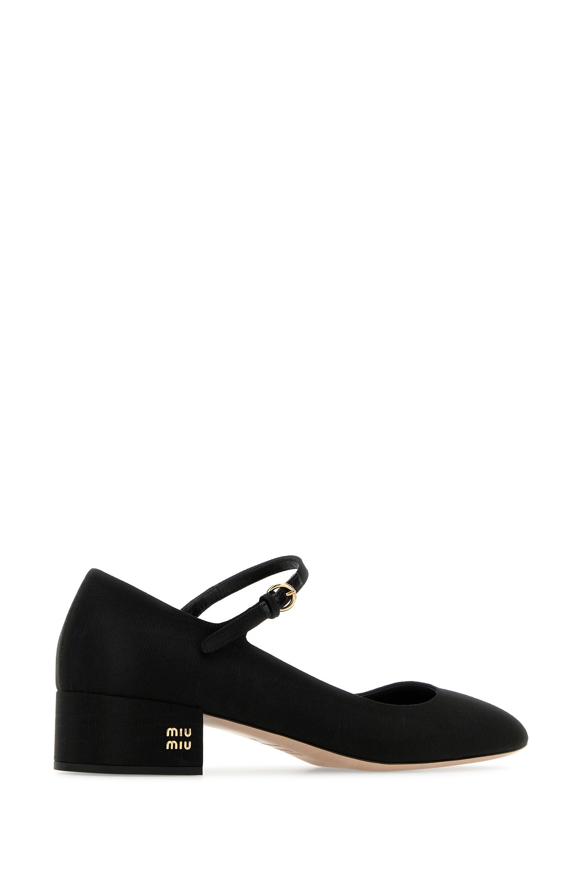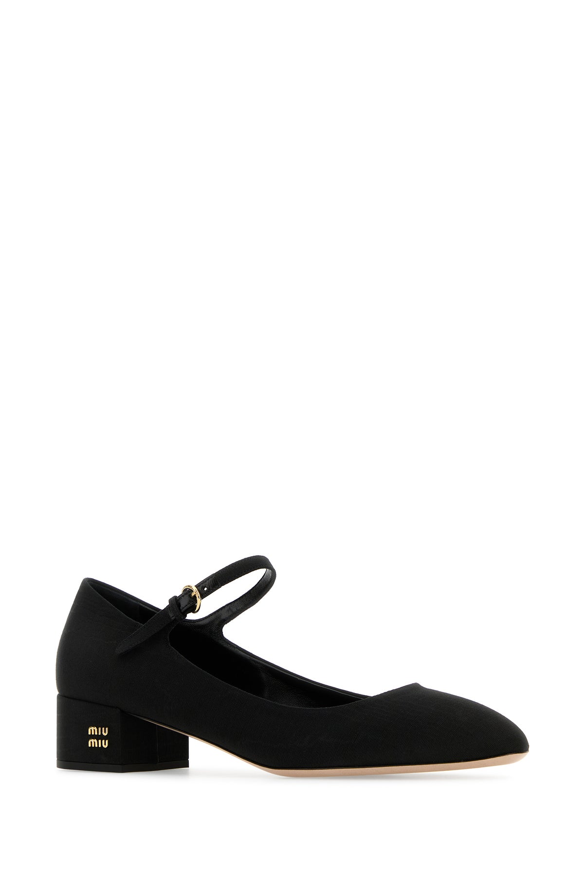 Pumps realized in fabric enriched by metal lettering logo on the heel.