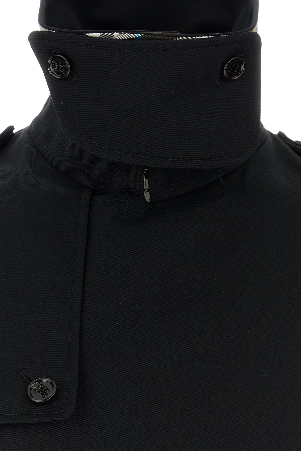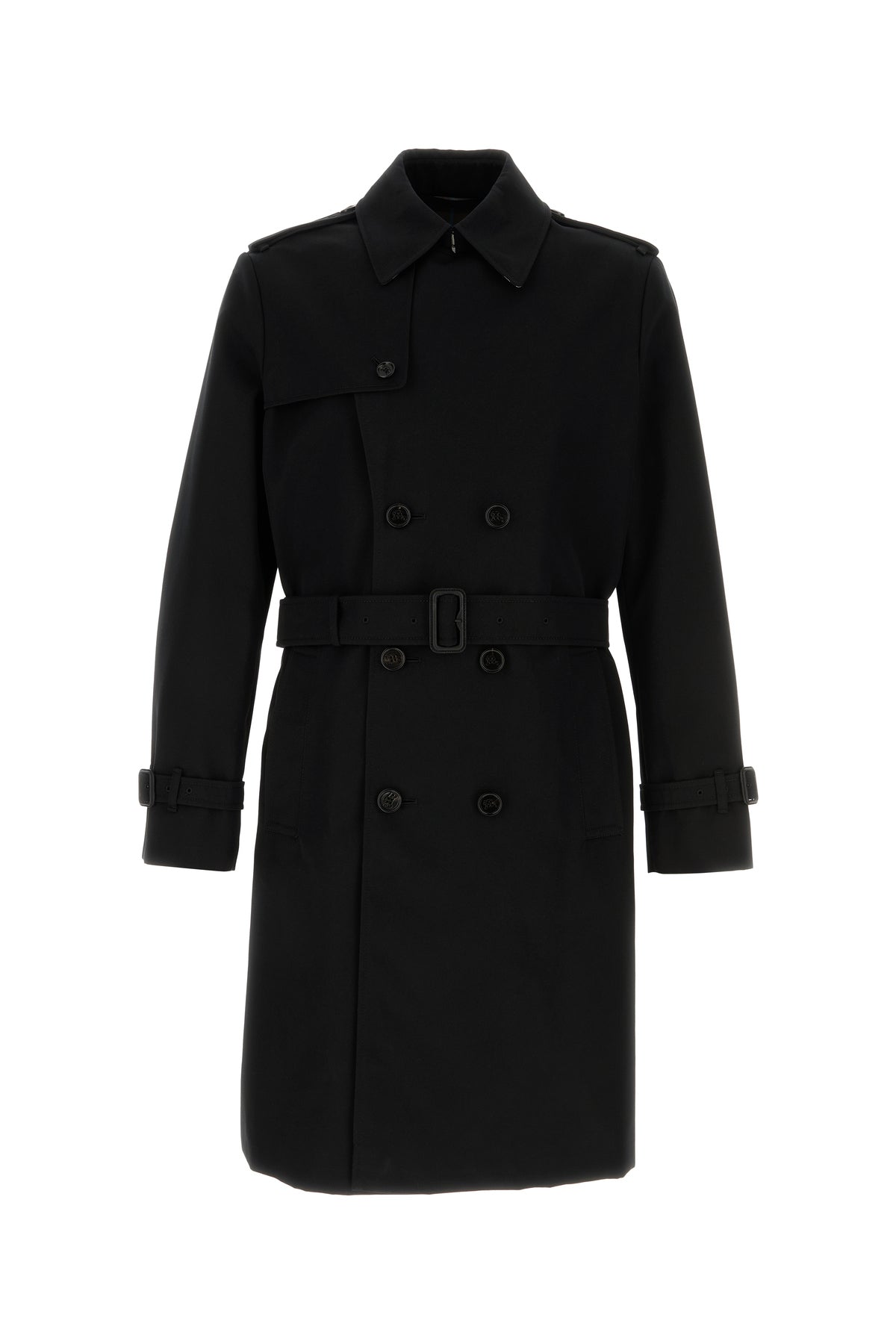 Black gabardine trench coat