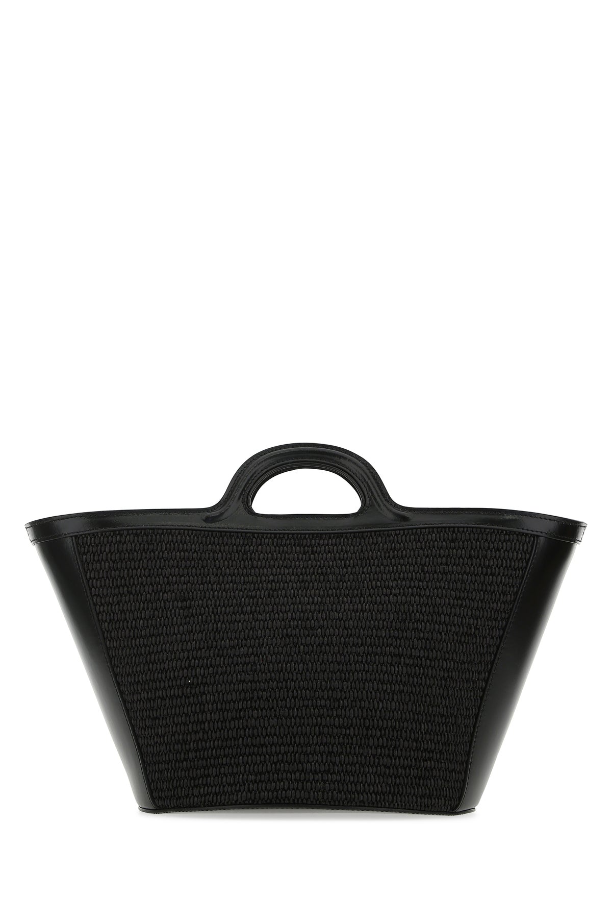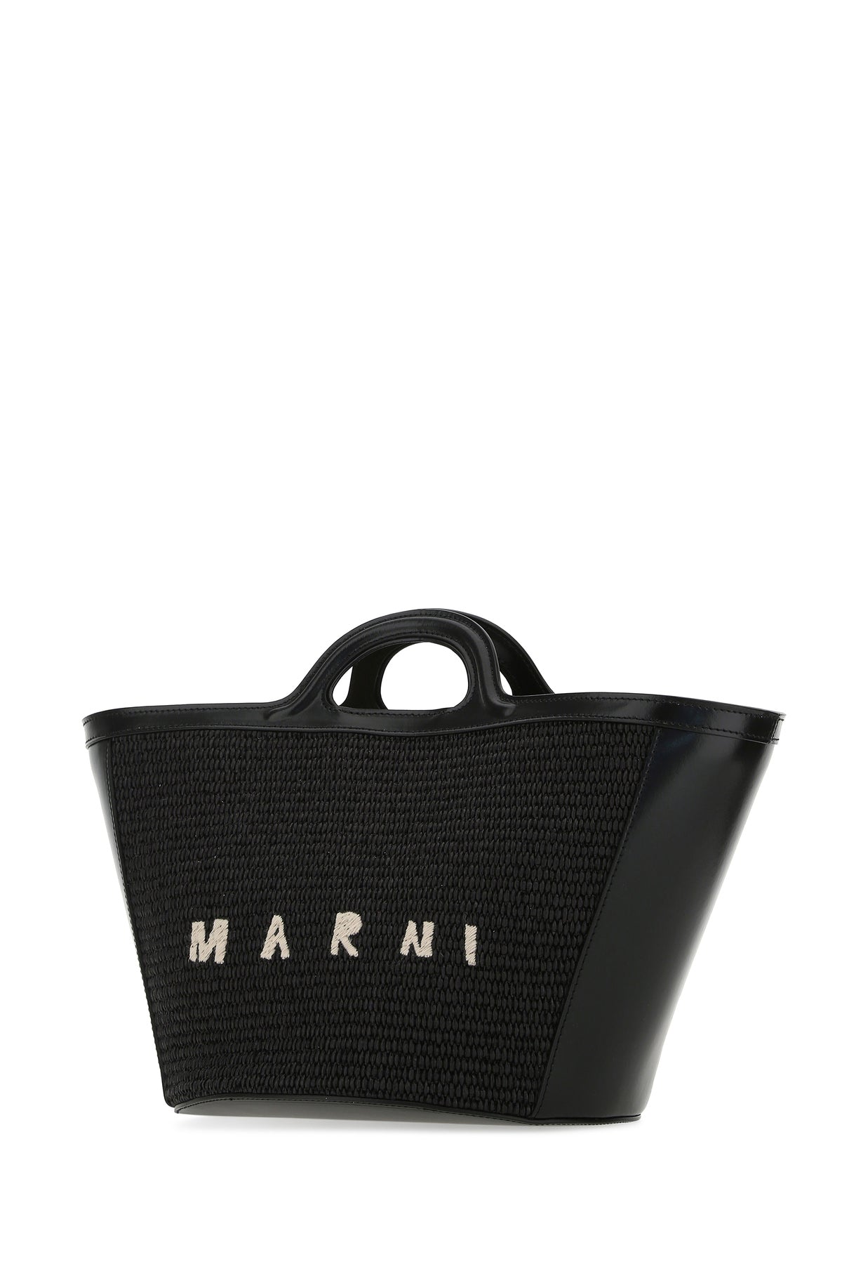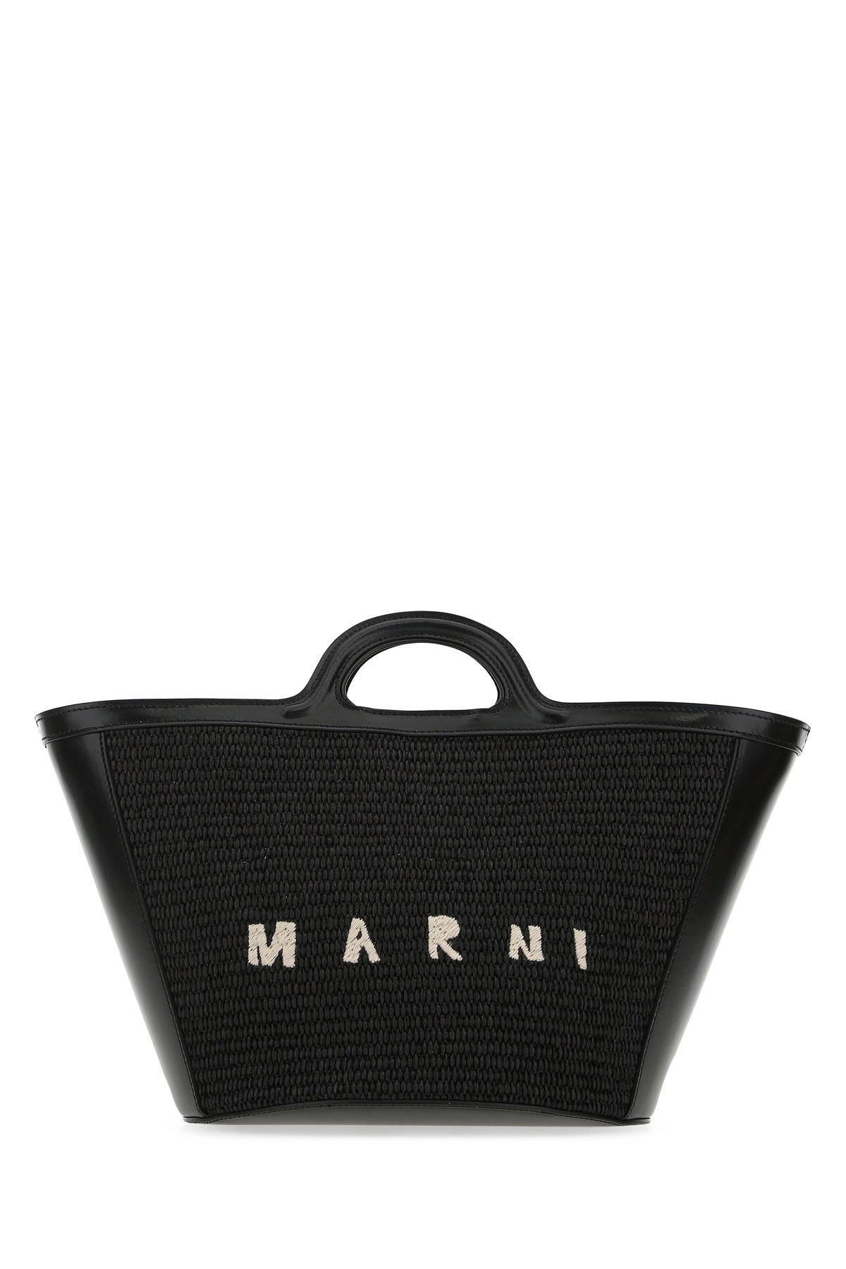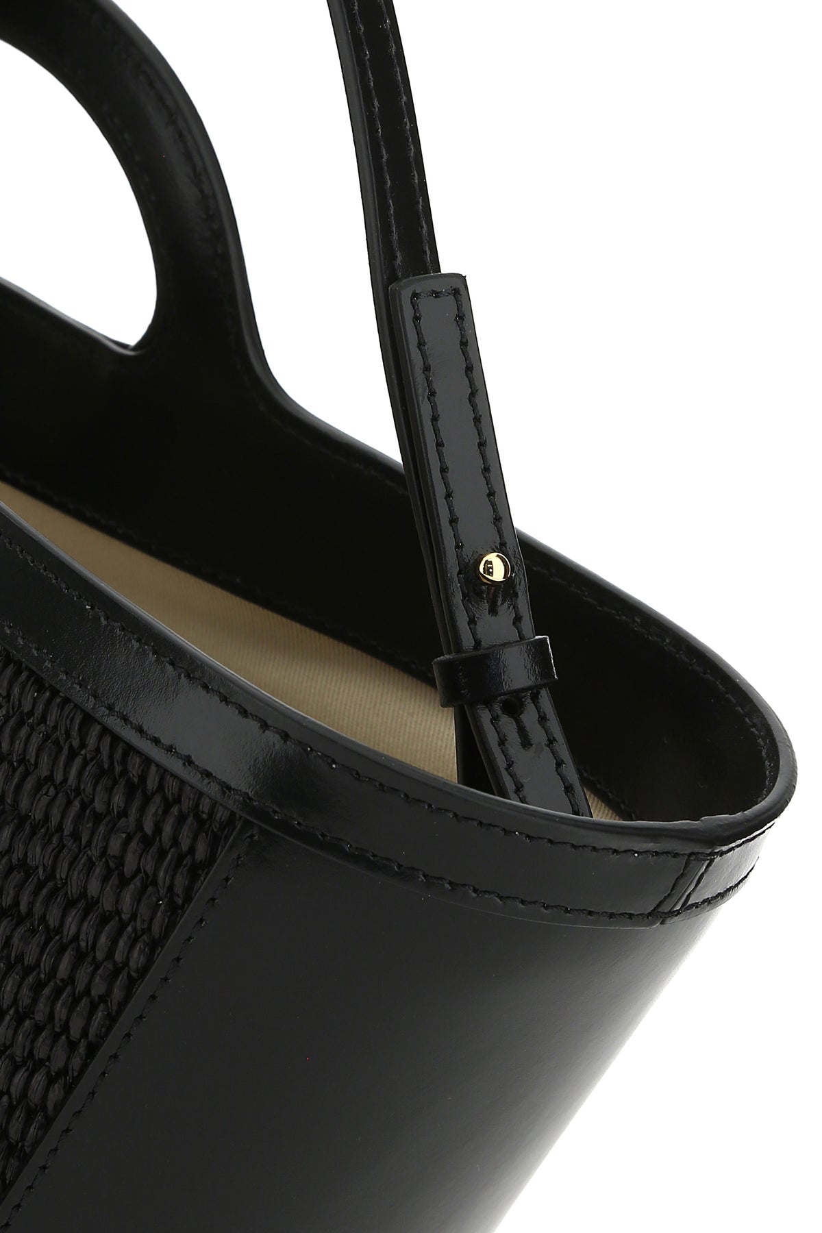 Handbag realized in smooth bovine leather and raffia characterized by contrasting embroidered logo at the front.