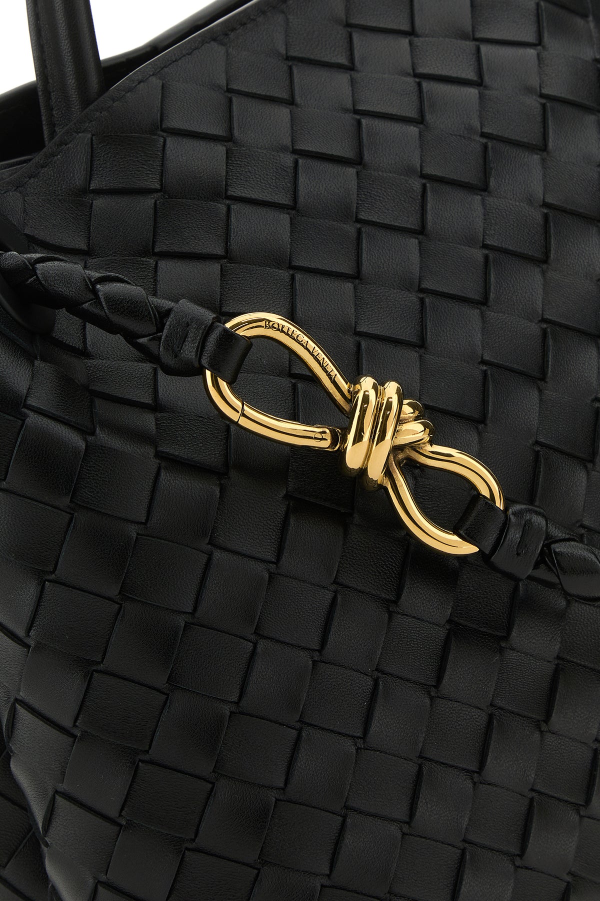 Handbag realized in nappa leather characterized by iconic Intrecciato motif on the entire surface.