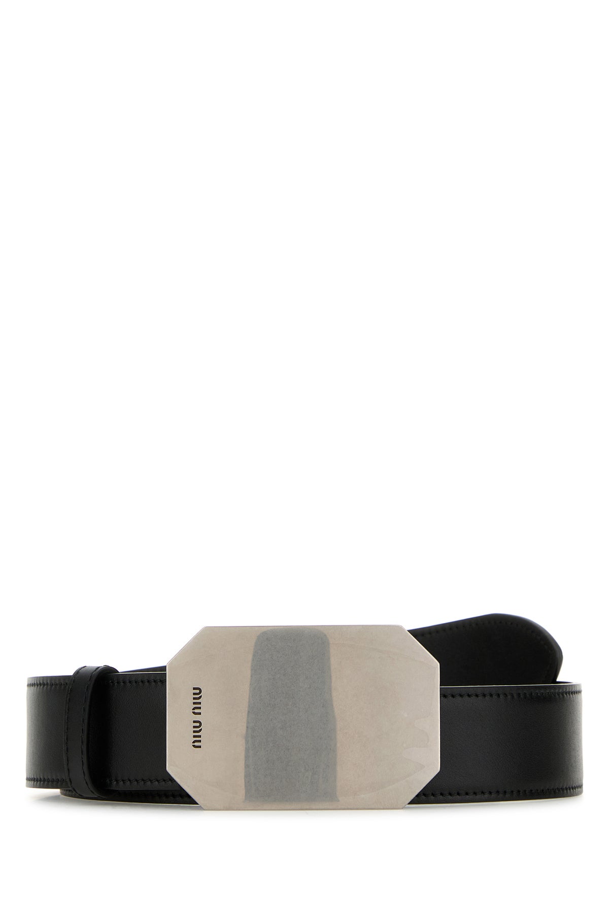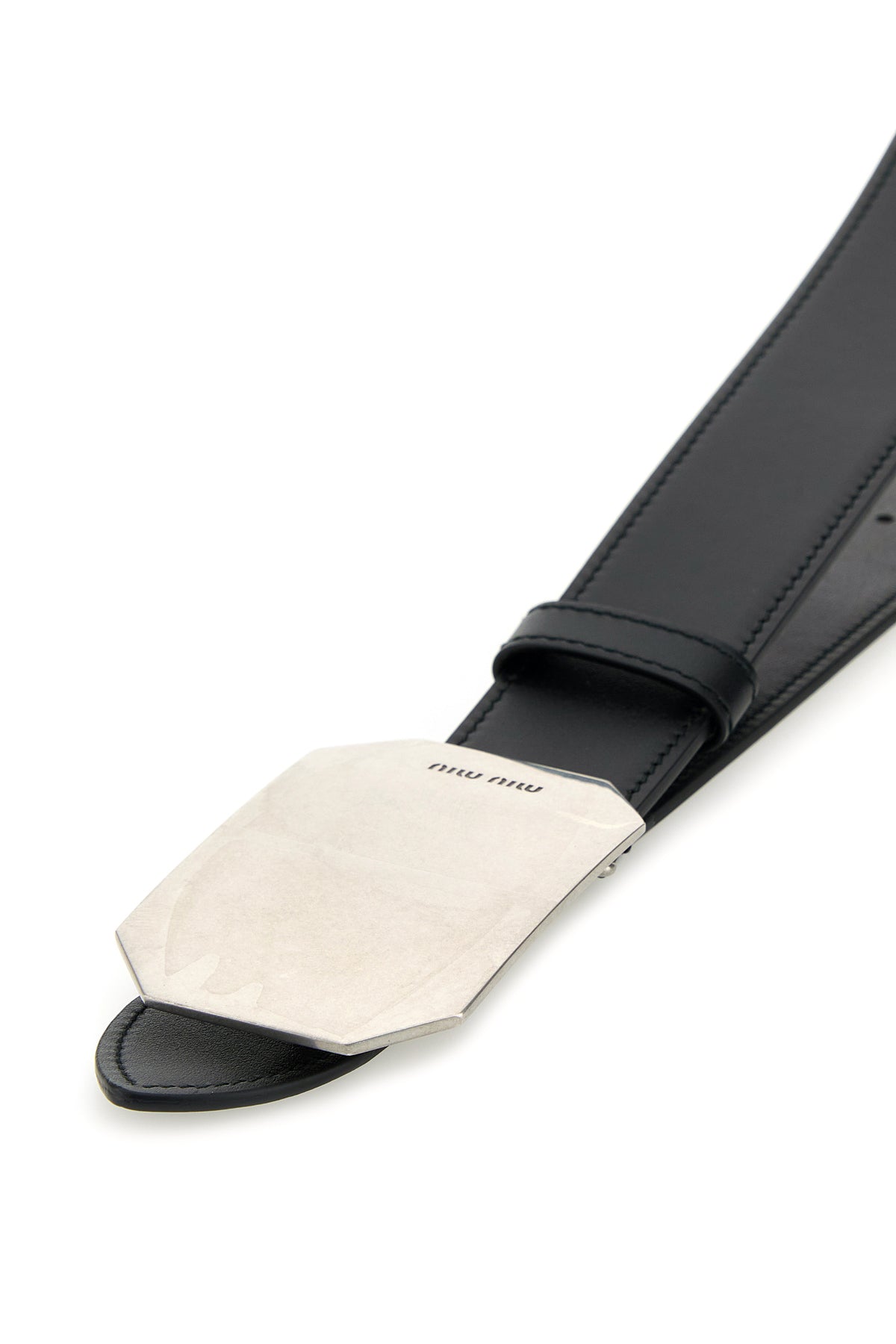 Belt realized in smooth calf leather characterized by metal logoed buckle.