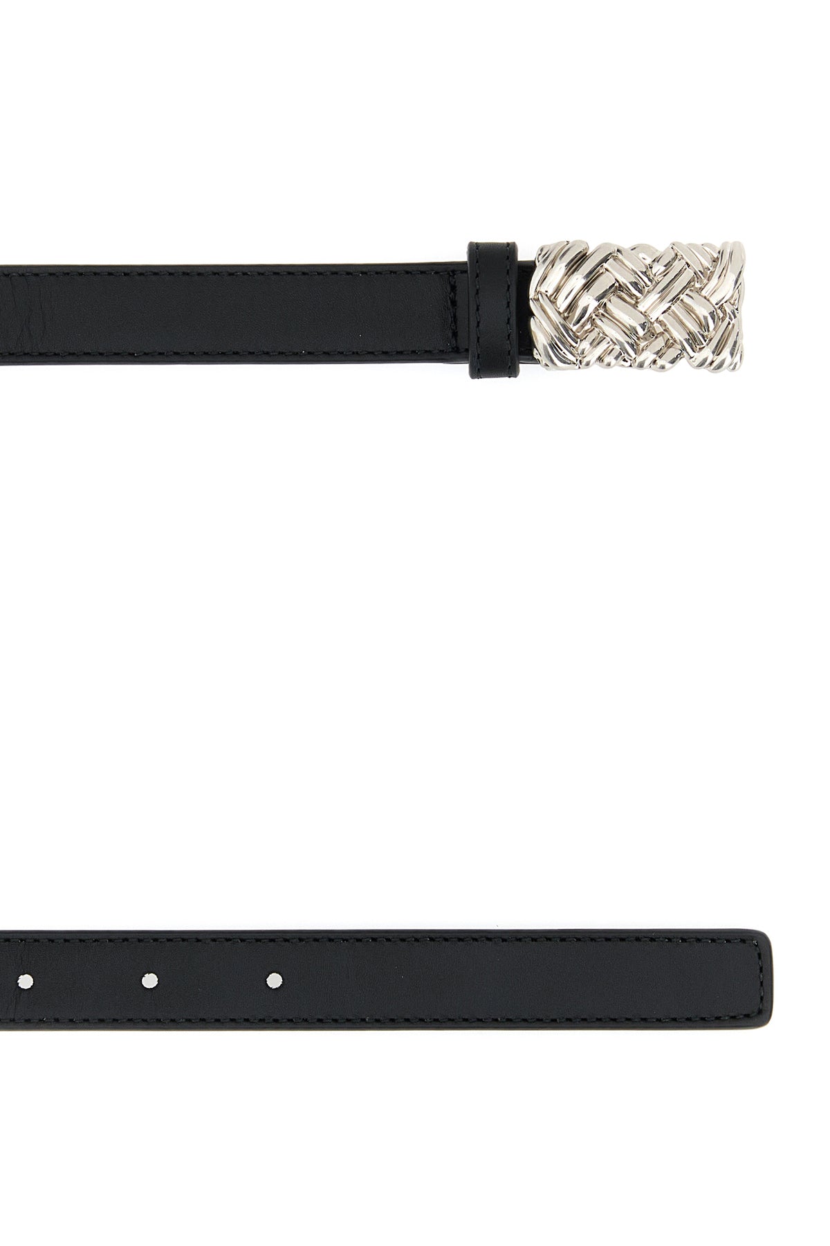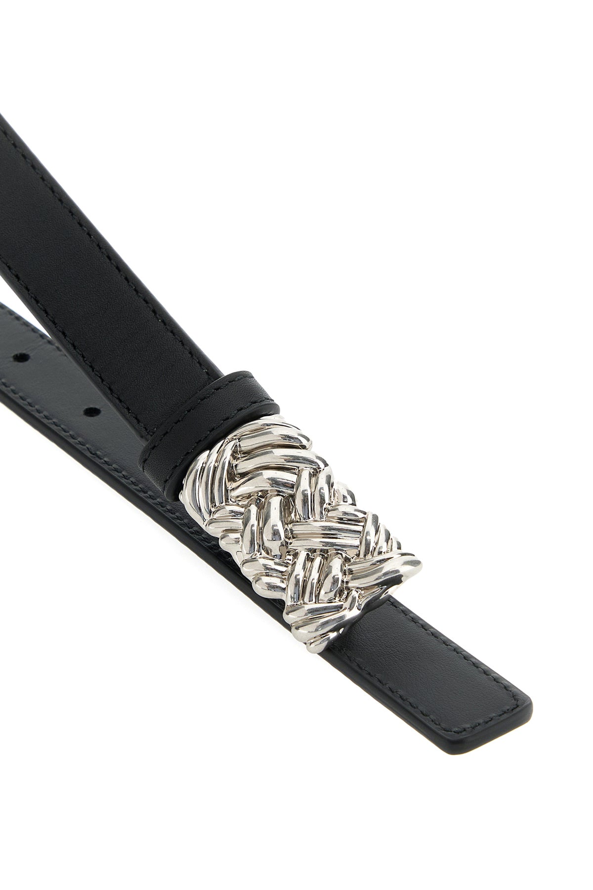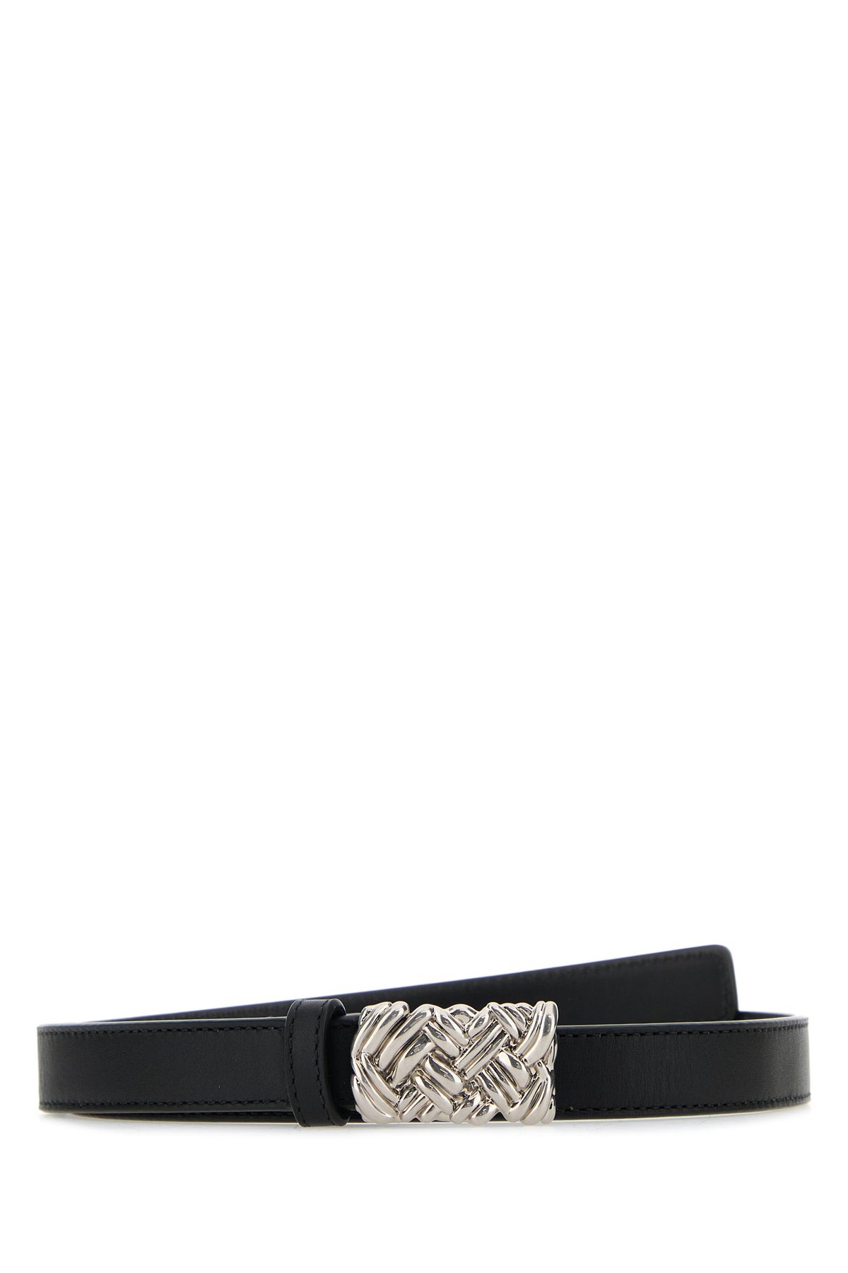 Belt realized in smooth leather enriched by metal Intreccio buckle.