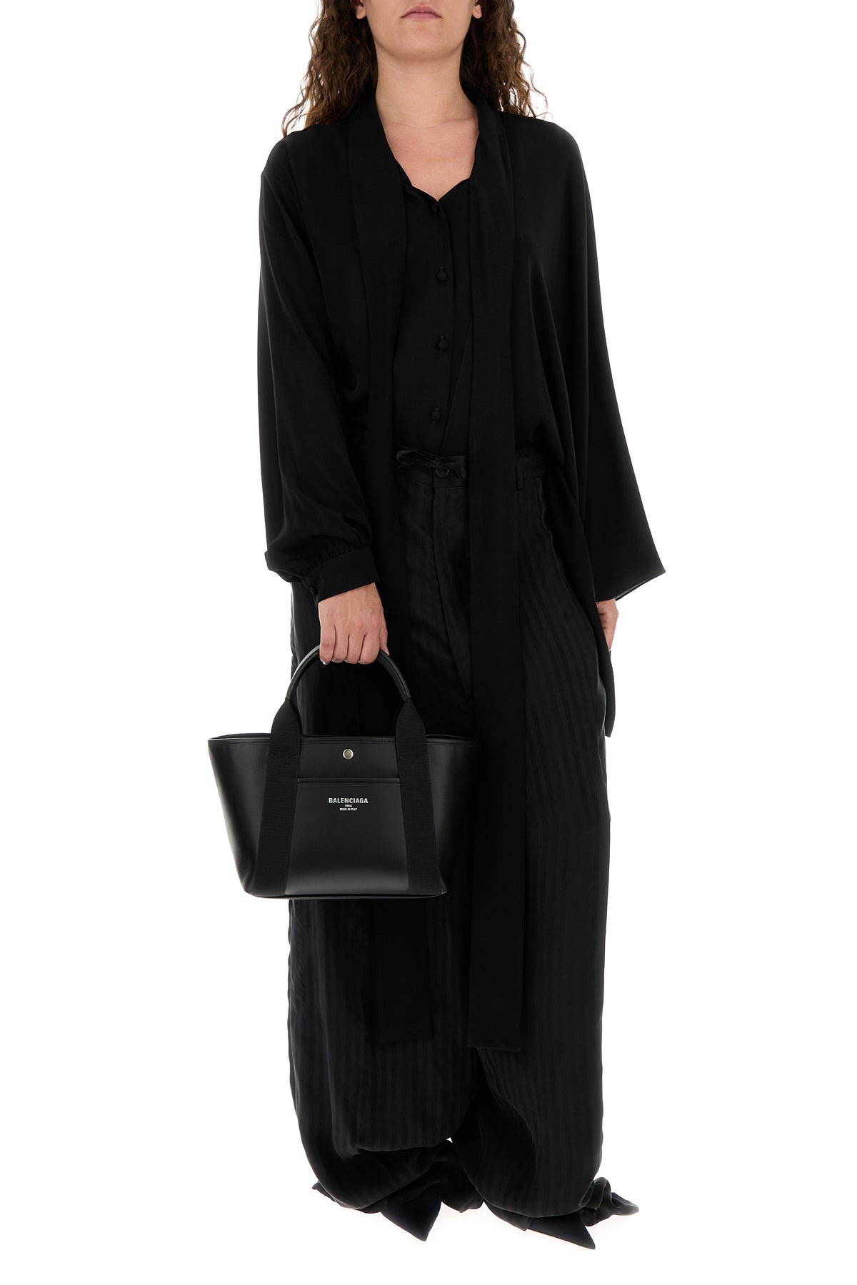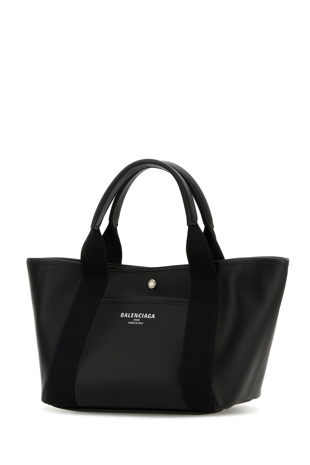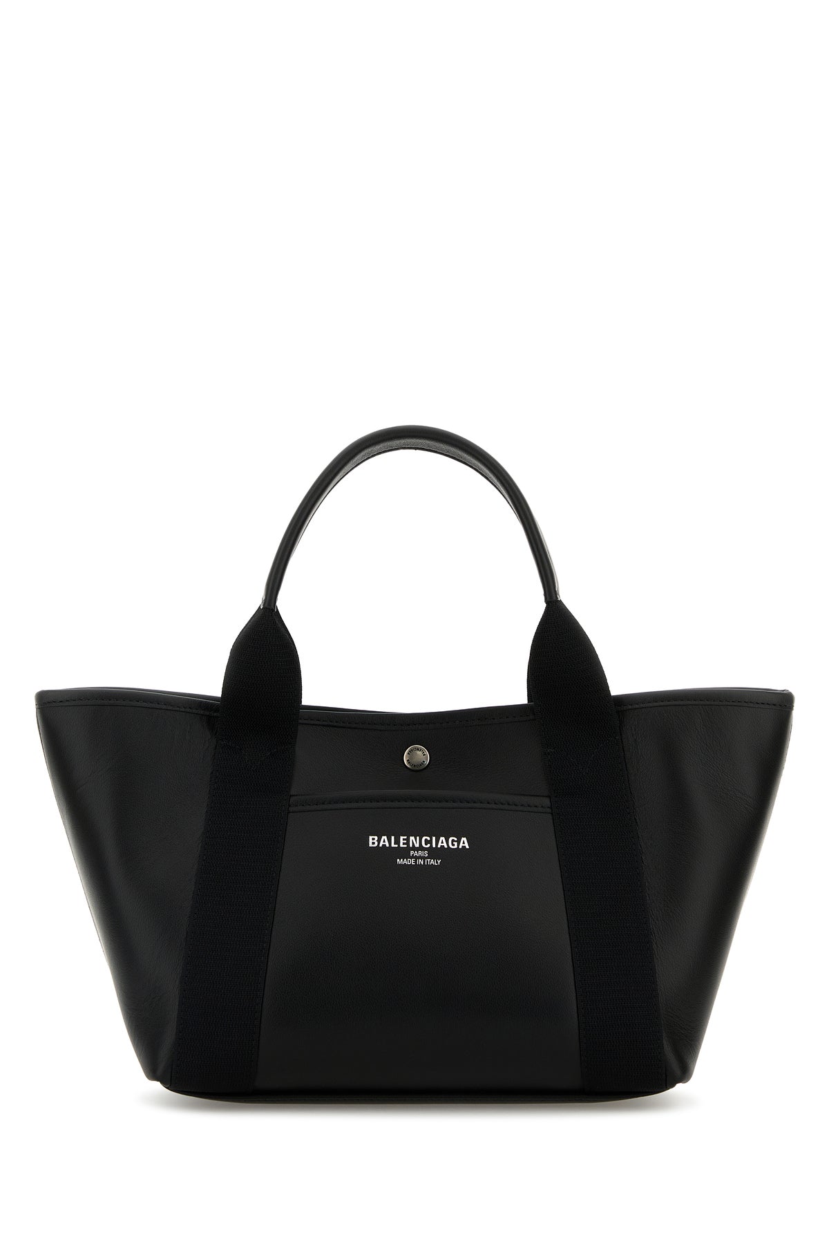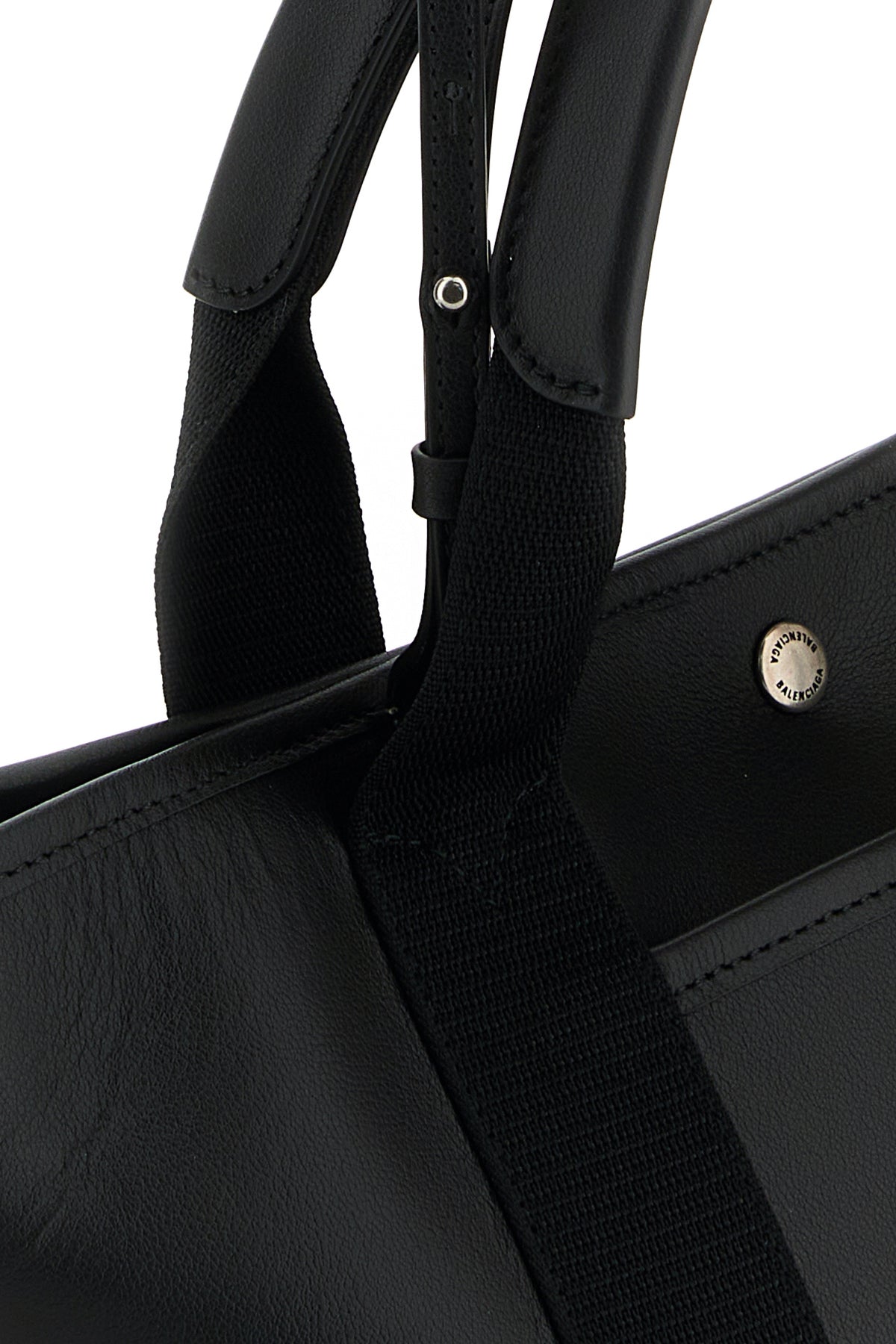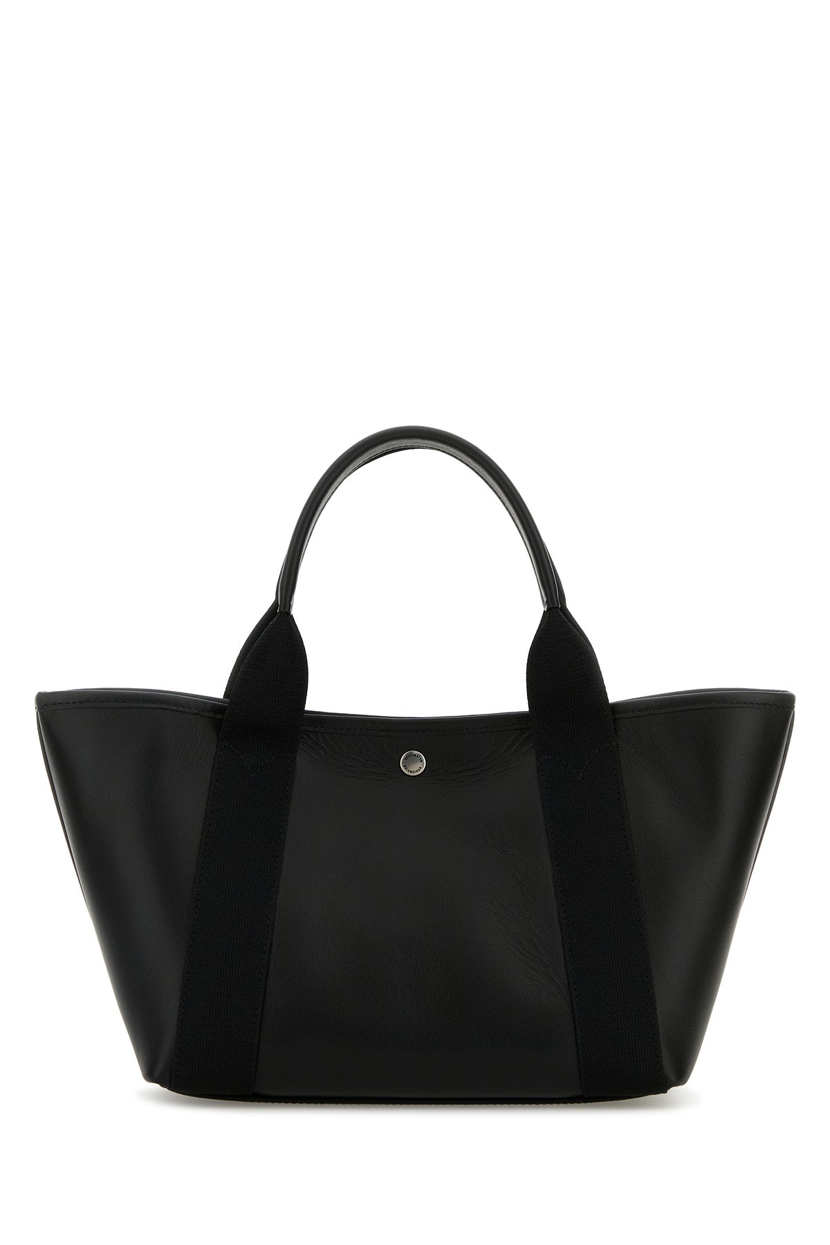 Shopping bag realized in slightly pebble leather characterized by laminated printed logo at the front.