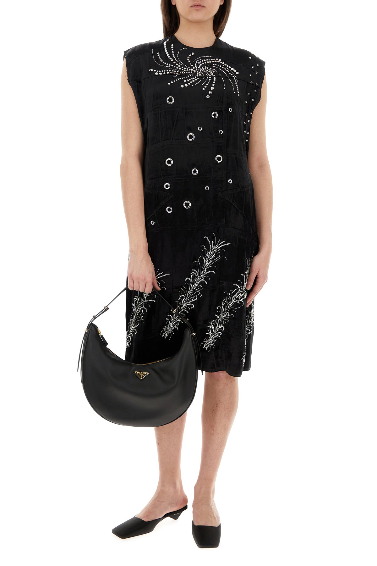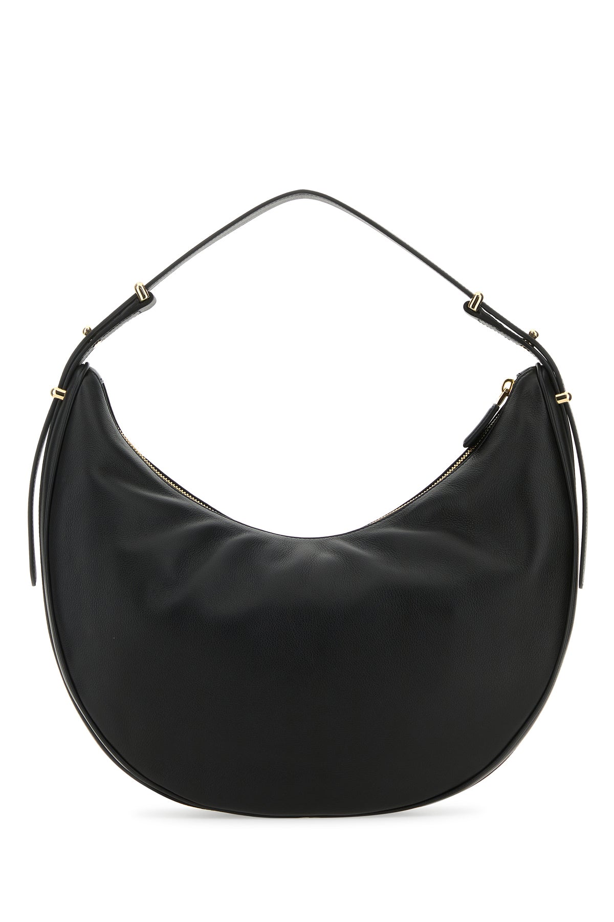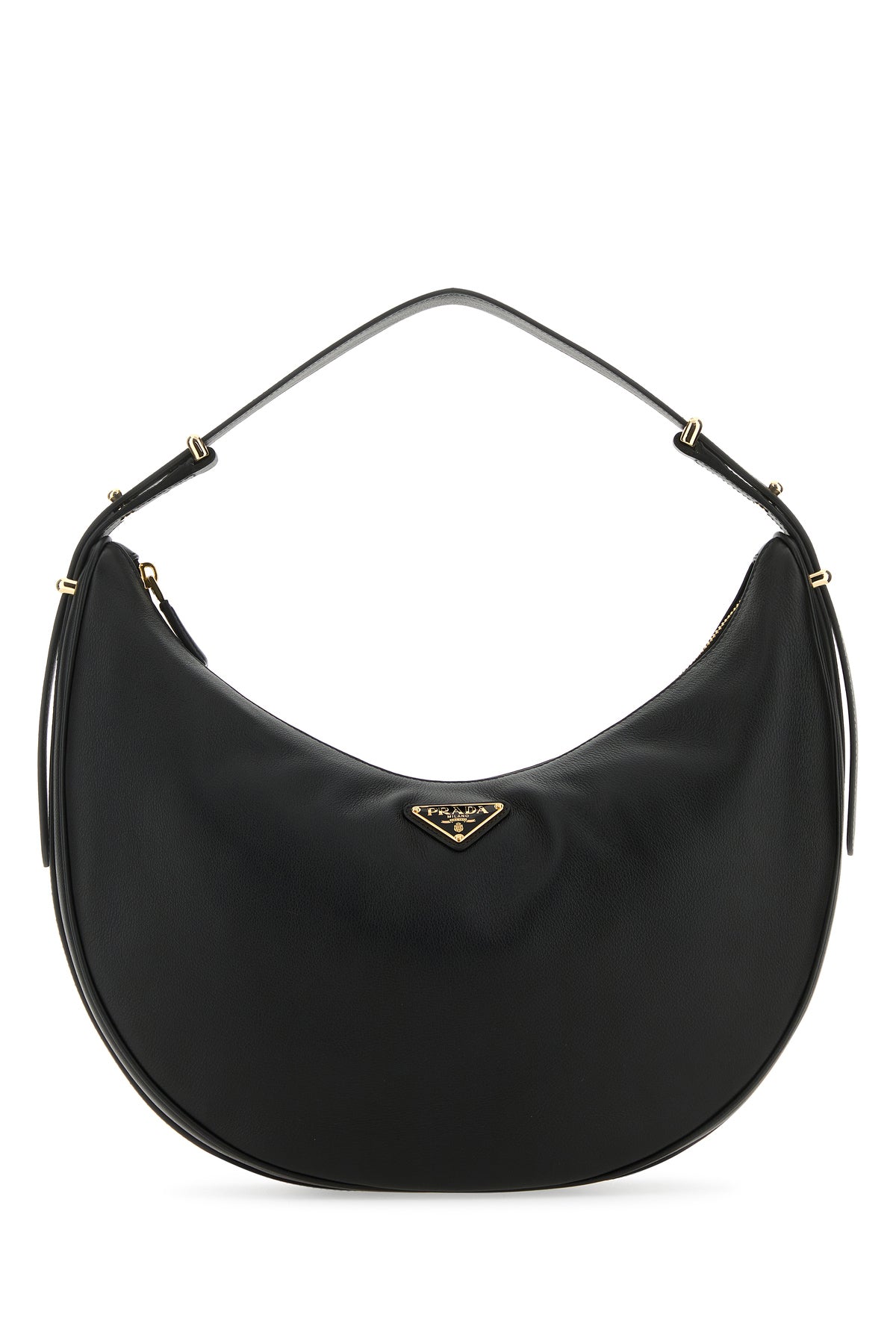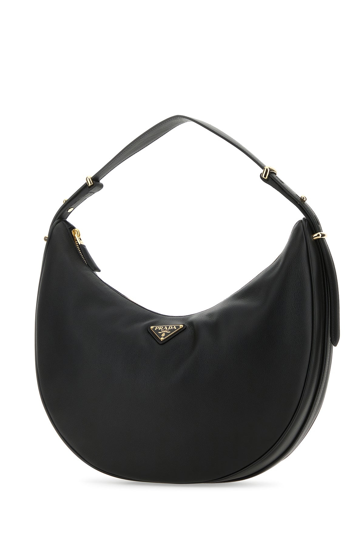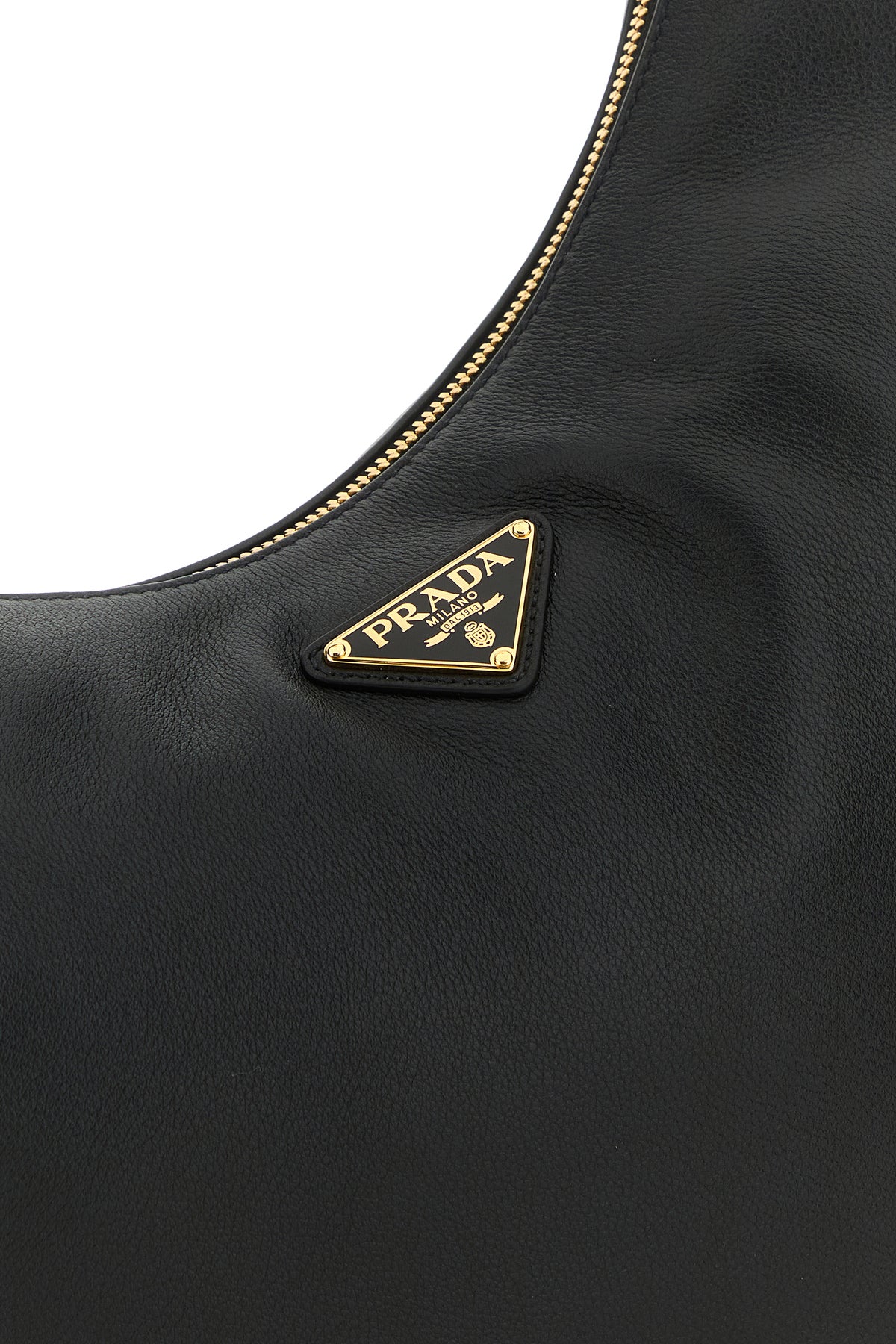 Handbag realized in slightly pebble calf leather enriched by iconic metal logoed triangle at the front.