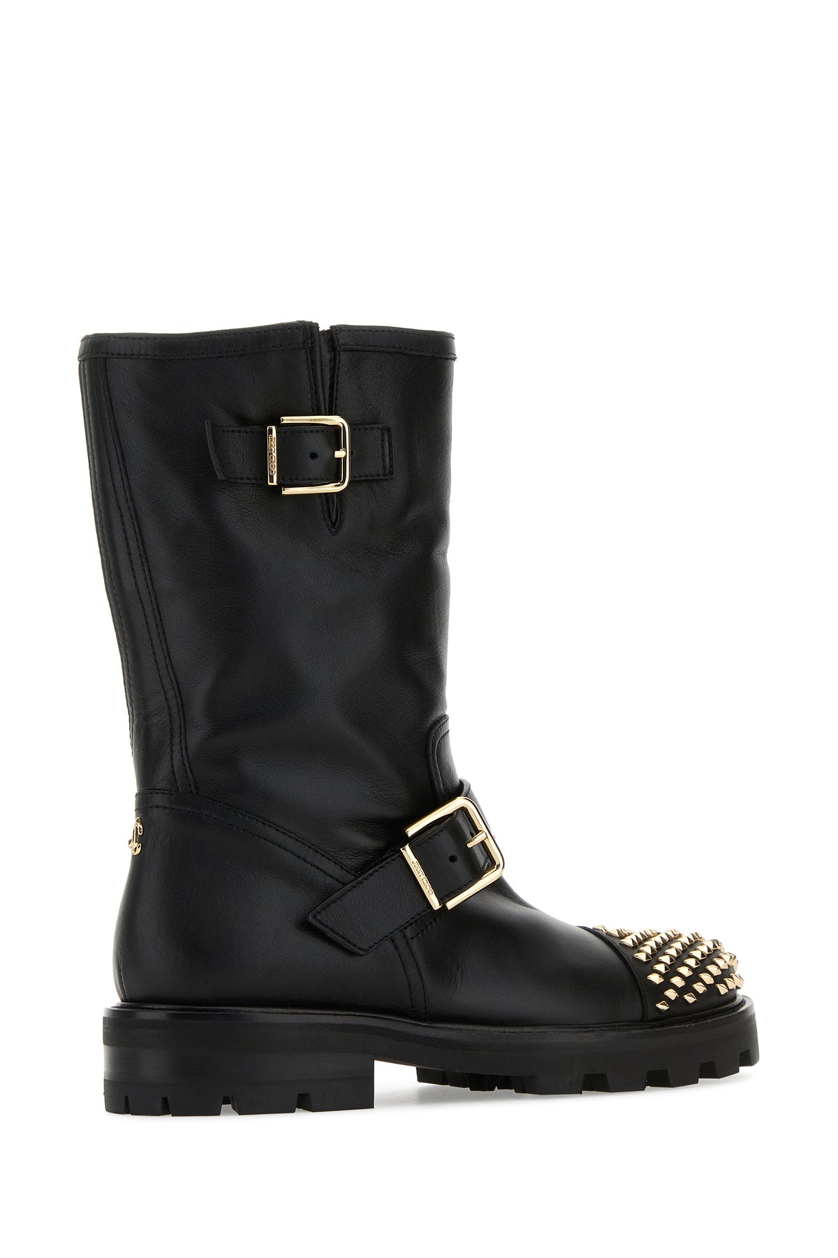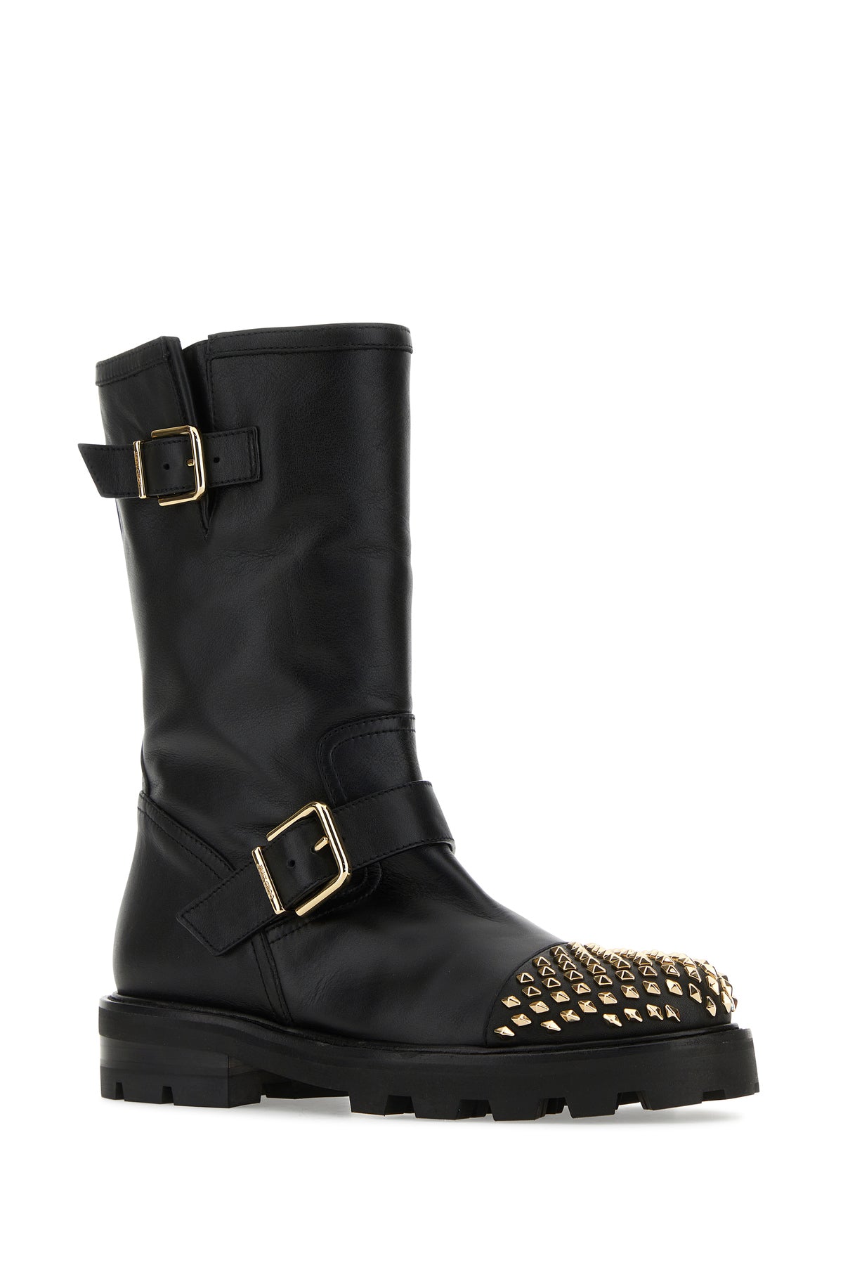 Boots realized in smooth leather enriched by decorative metal studs on the toe.