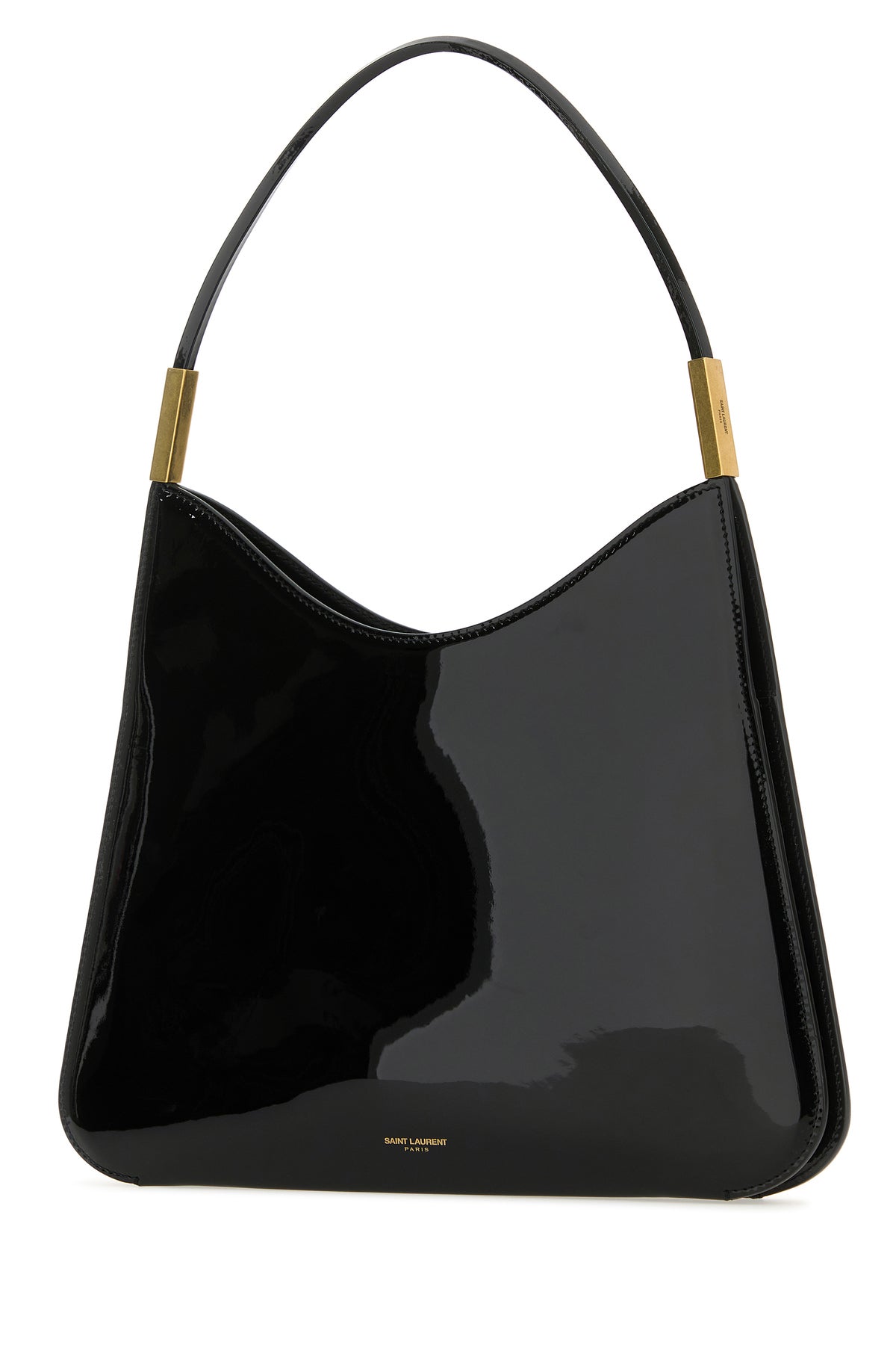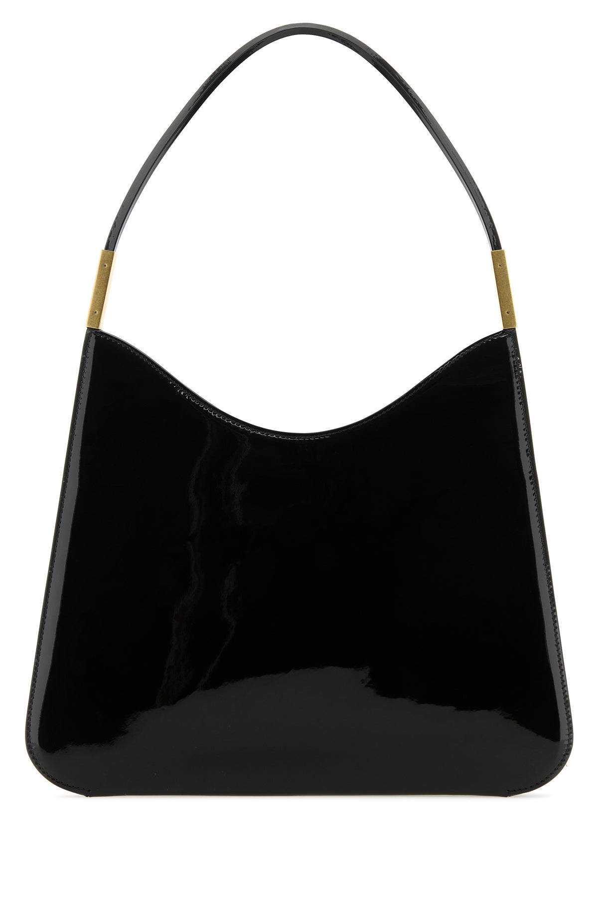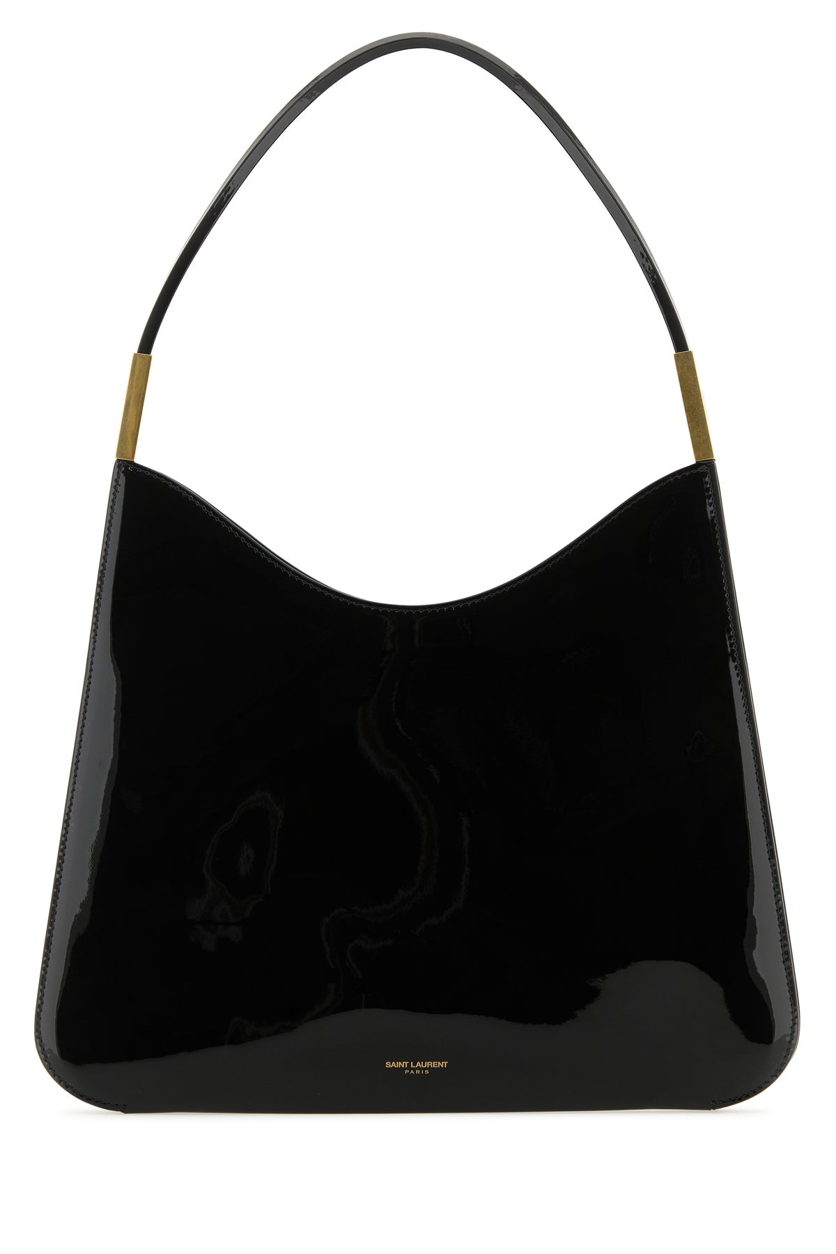 Shoulder bag realized in smooth patent leather characterized. by contrasting printed logo at the front.