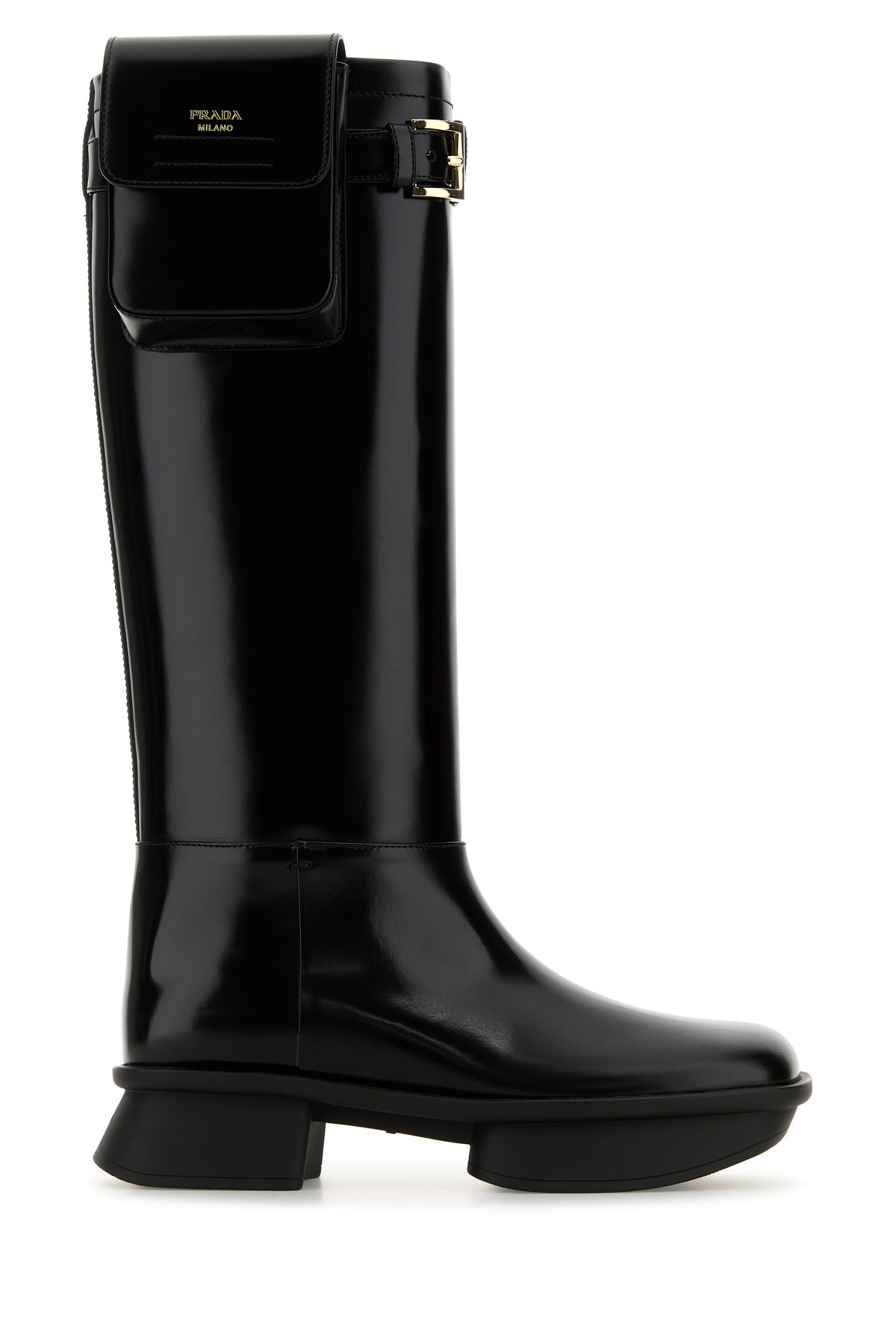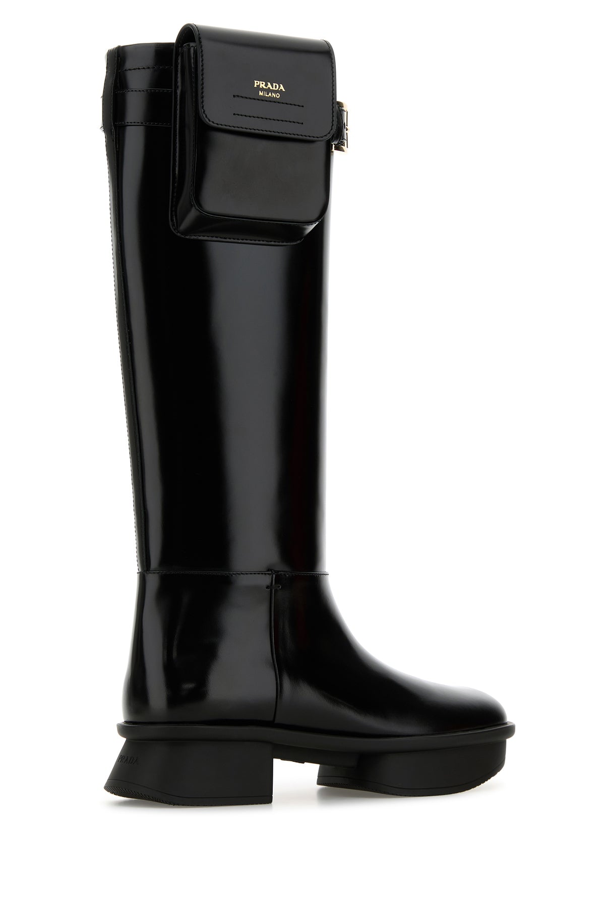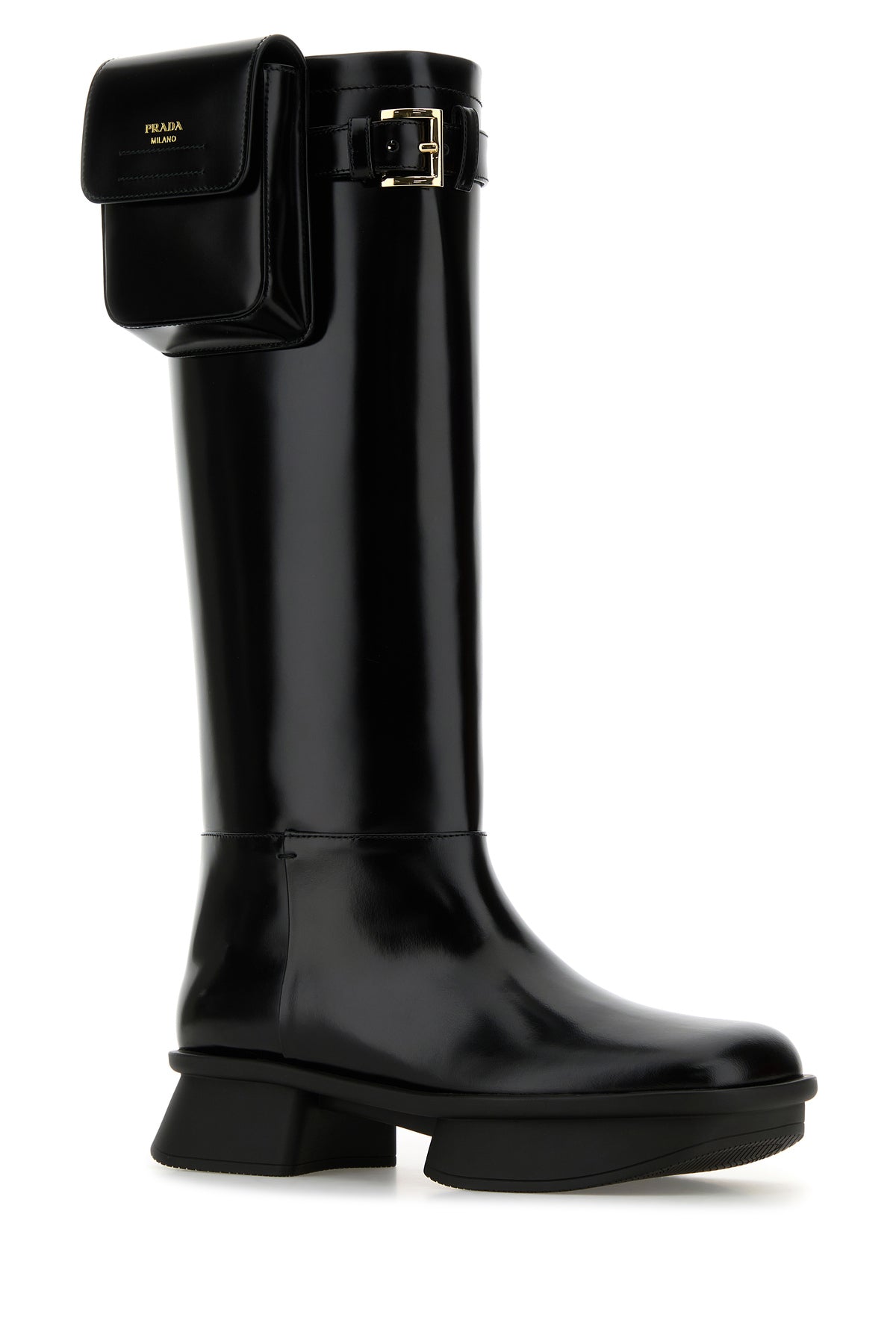 Boots realized in smooth leather enriched by detachable logoed pouch at the top.