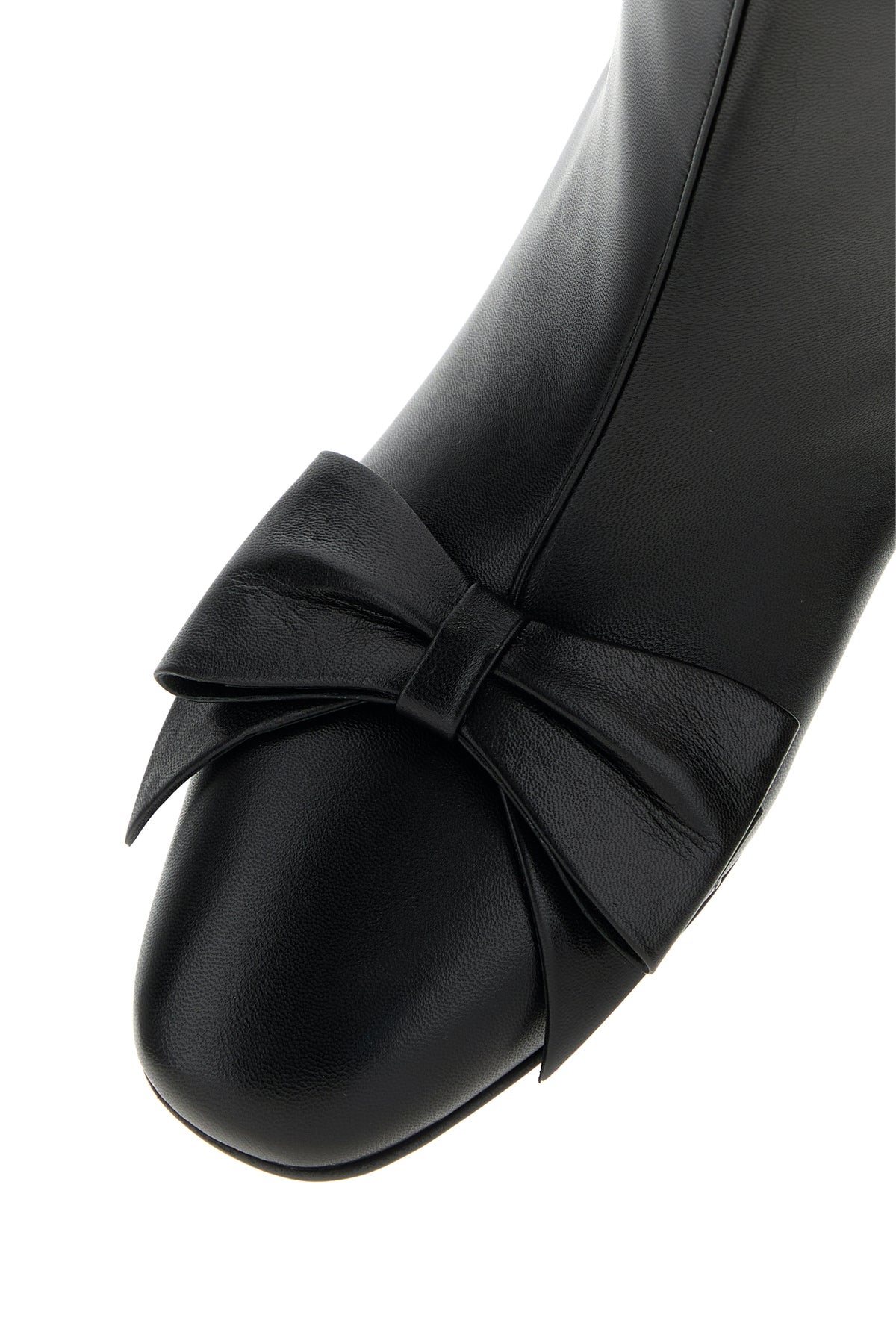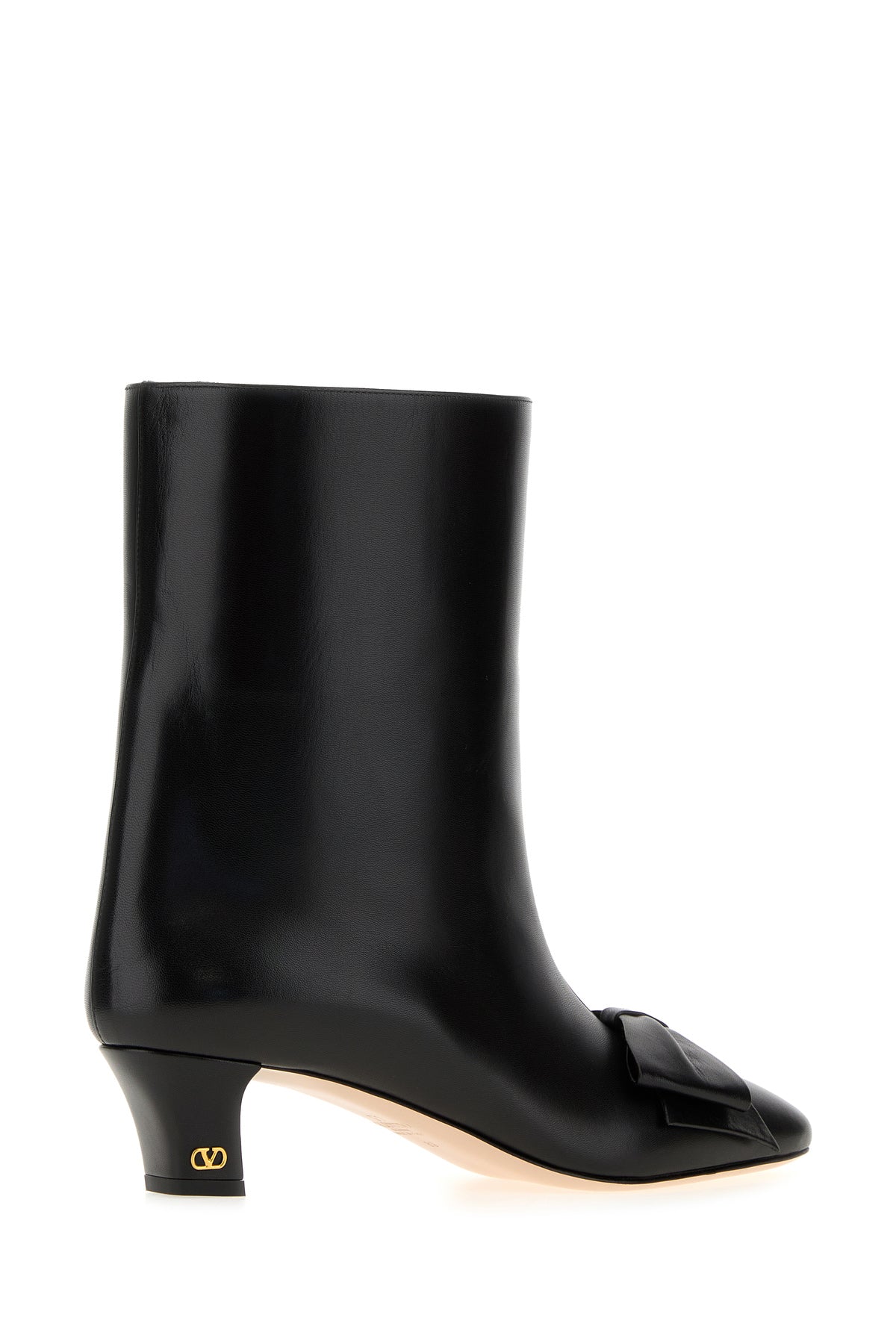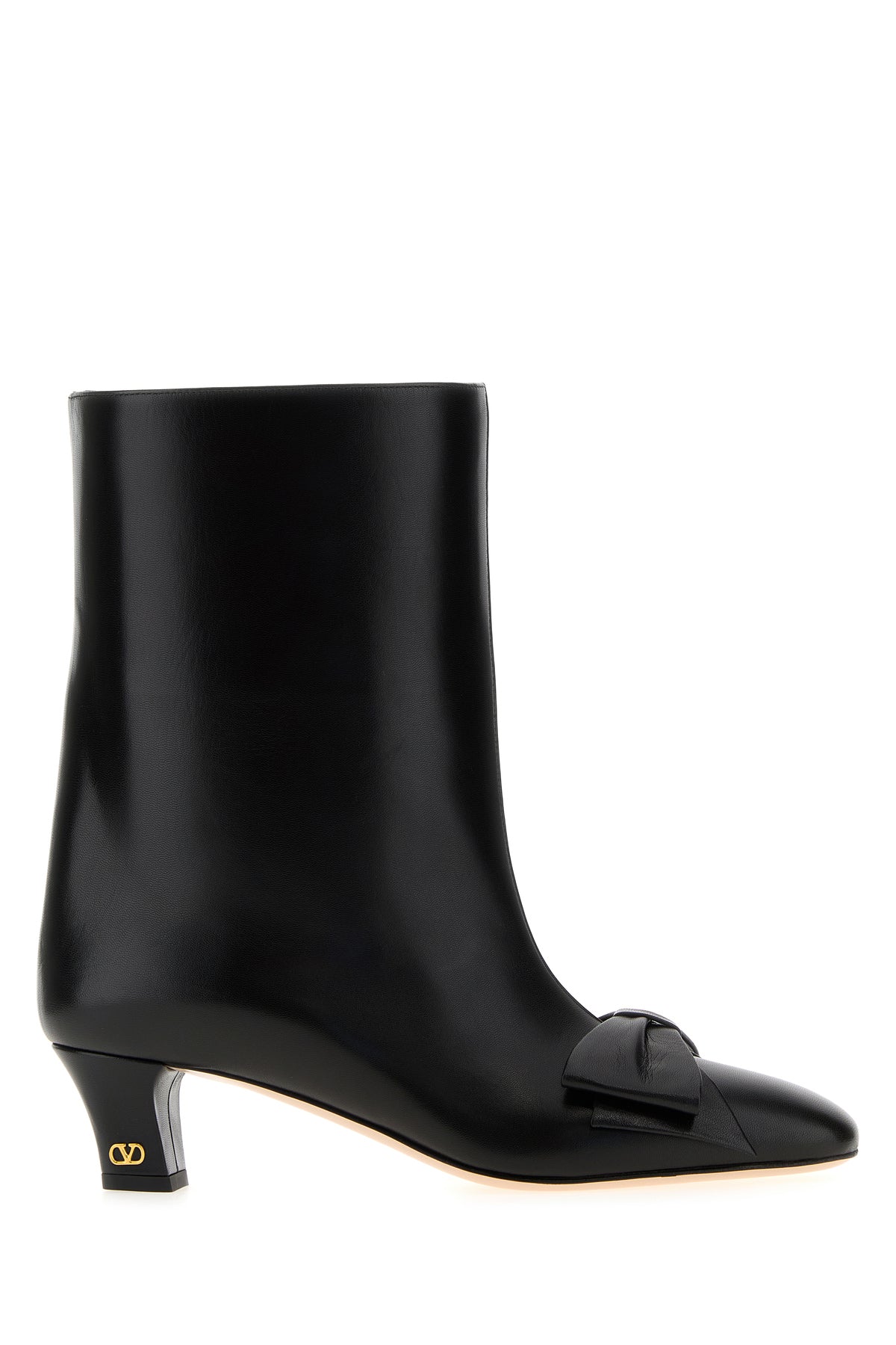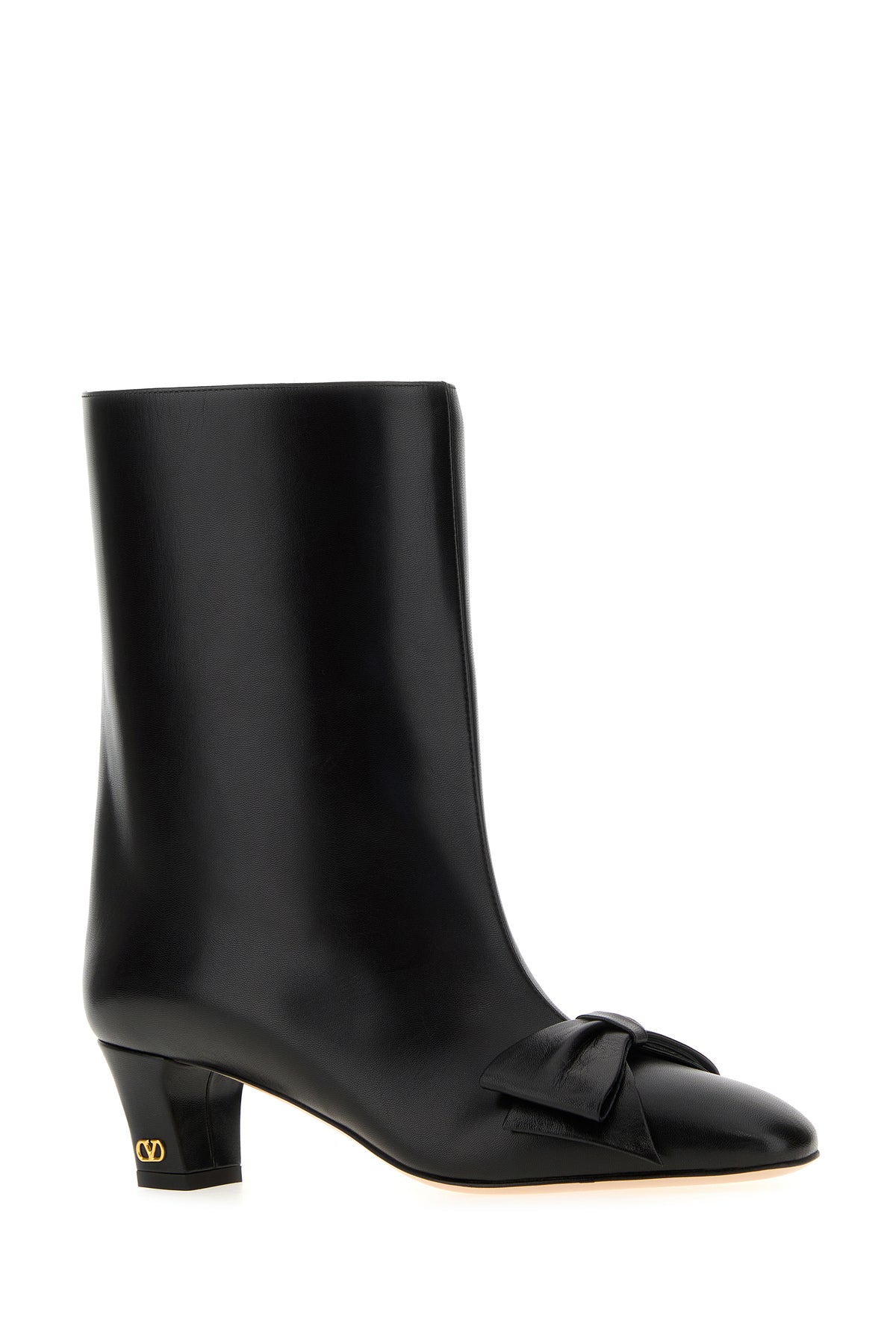Ankle boots realized in slightly pebble leather enriched by decorative bow on the instep and VLogo Signature metal detail on the thick heel.