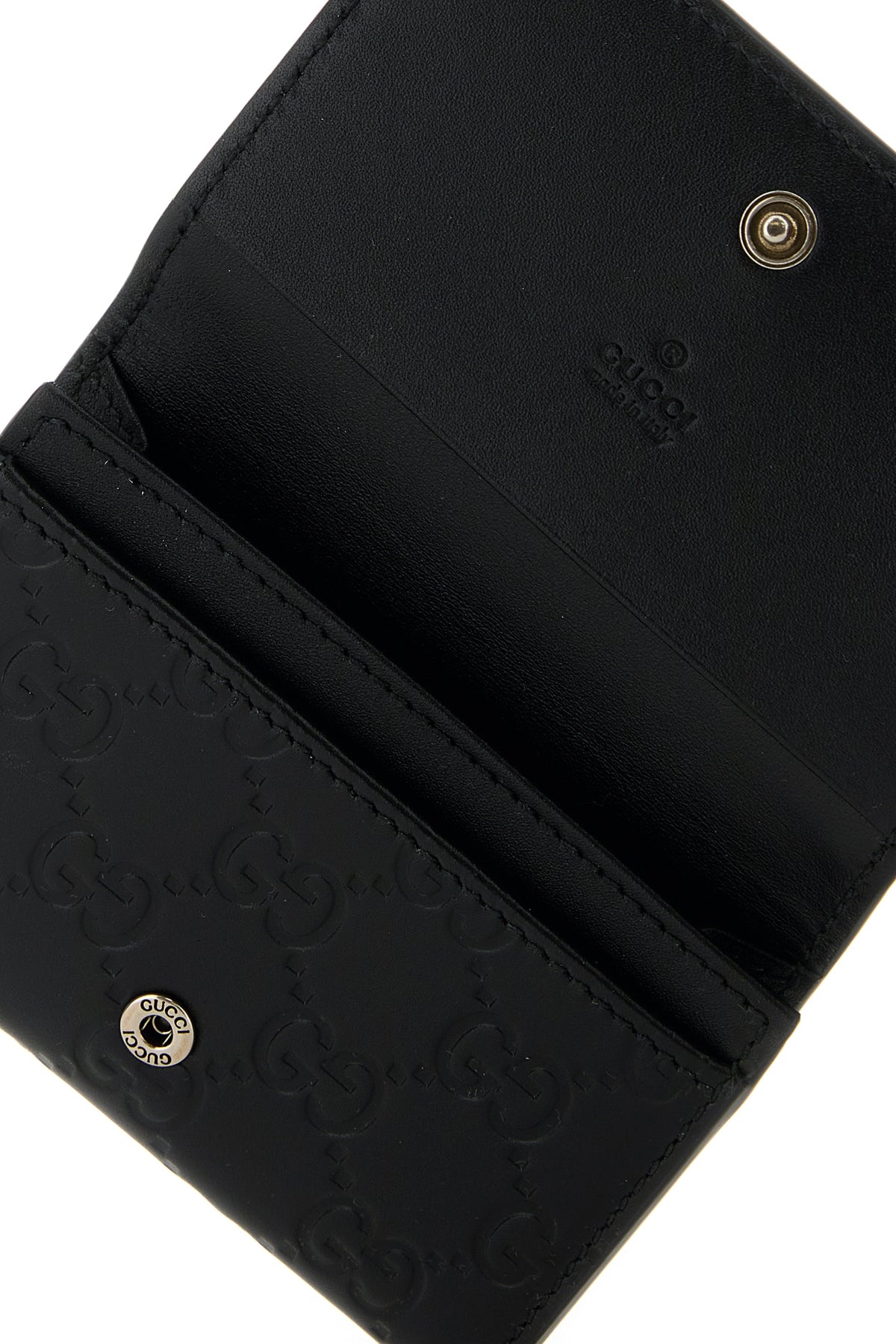 Coin purse realized in leather characterized by embossed GG motif on the entire surface.