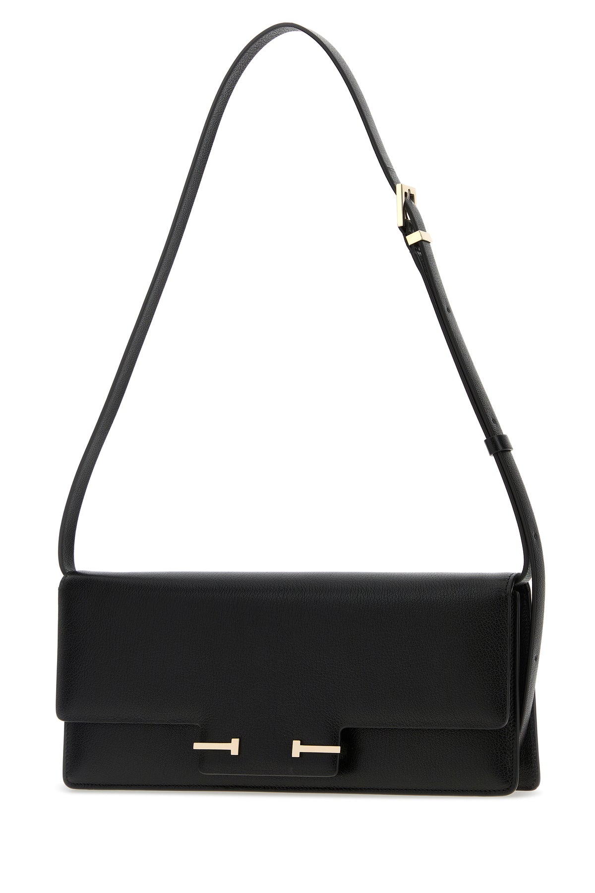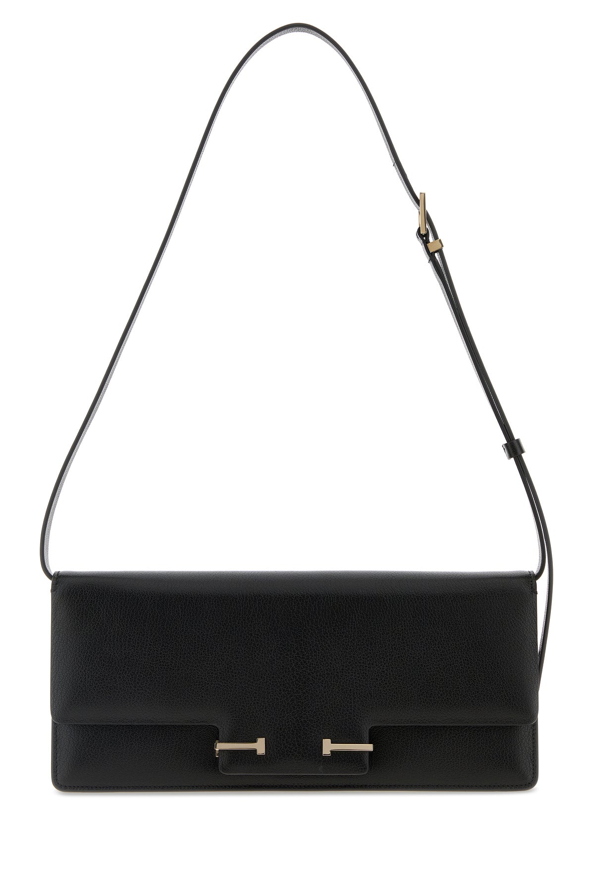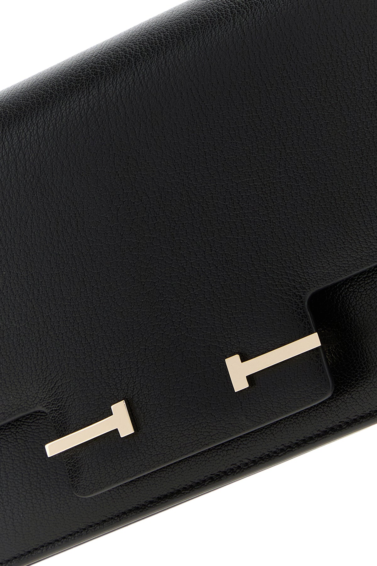 Crossbody bag realized un pebble ovine leather enriched by T metal details at the front.