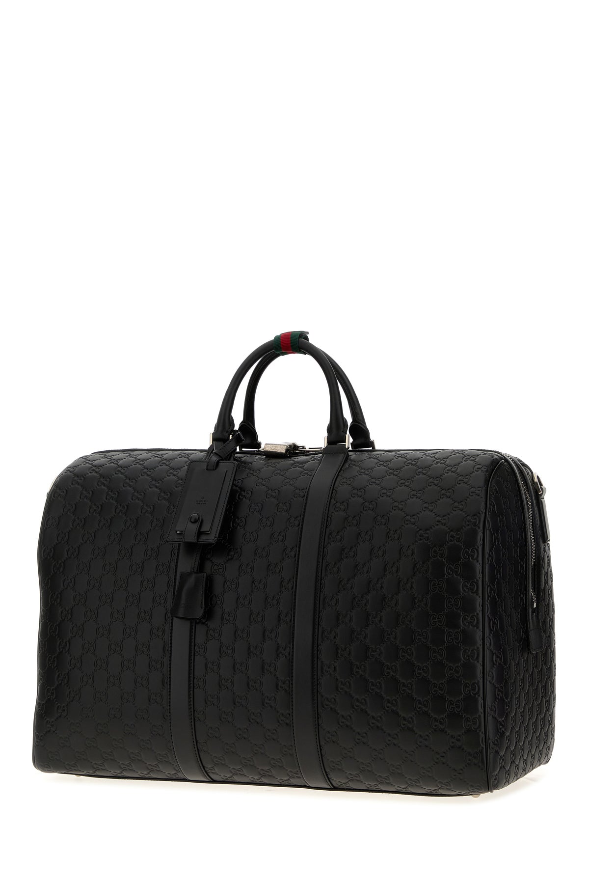 Duffle bag realized in leather characterized by embossed GG motif on the entire surface.