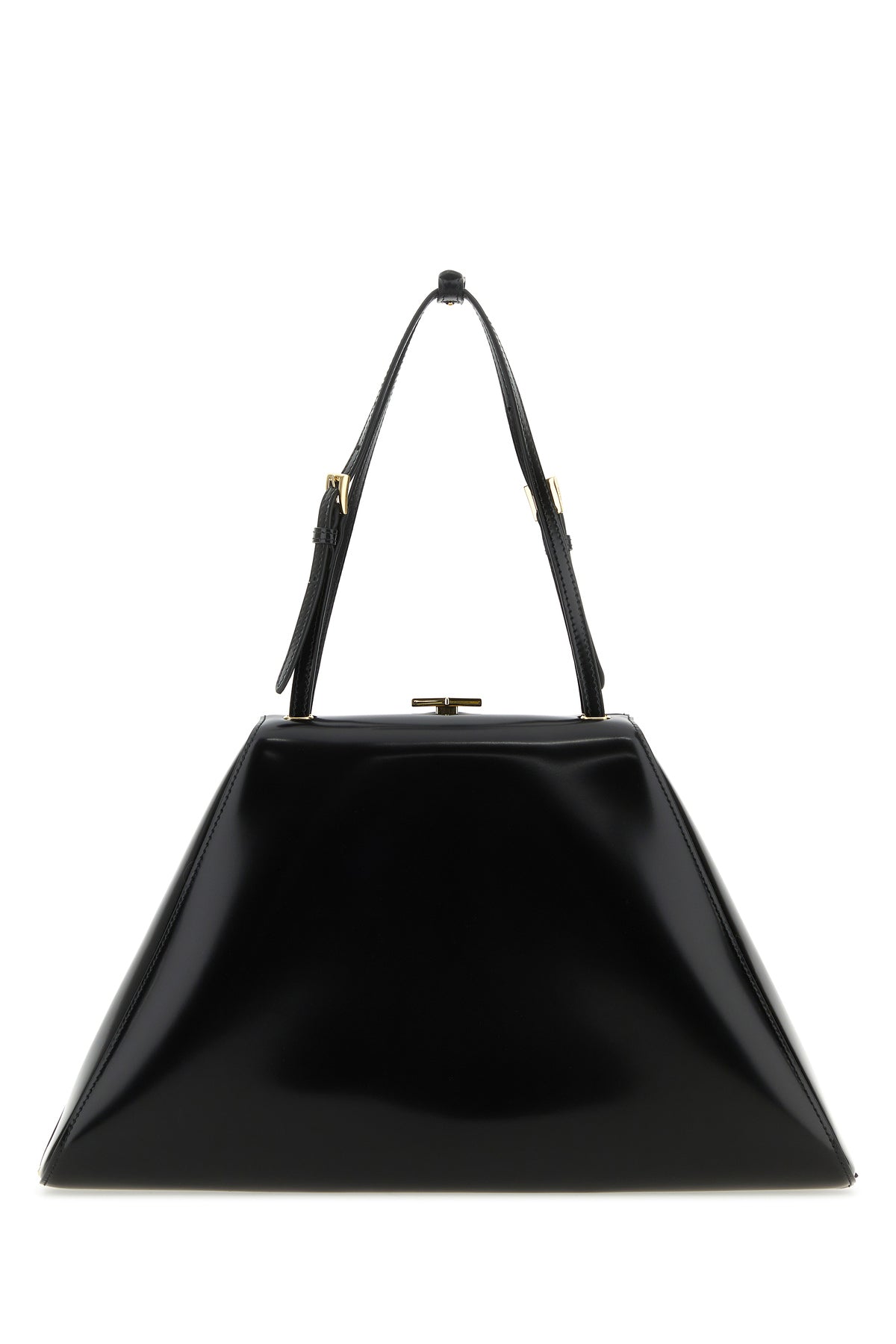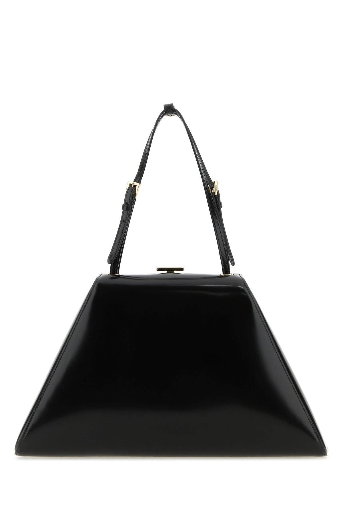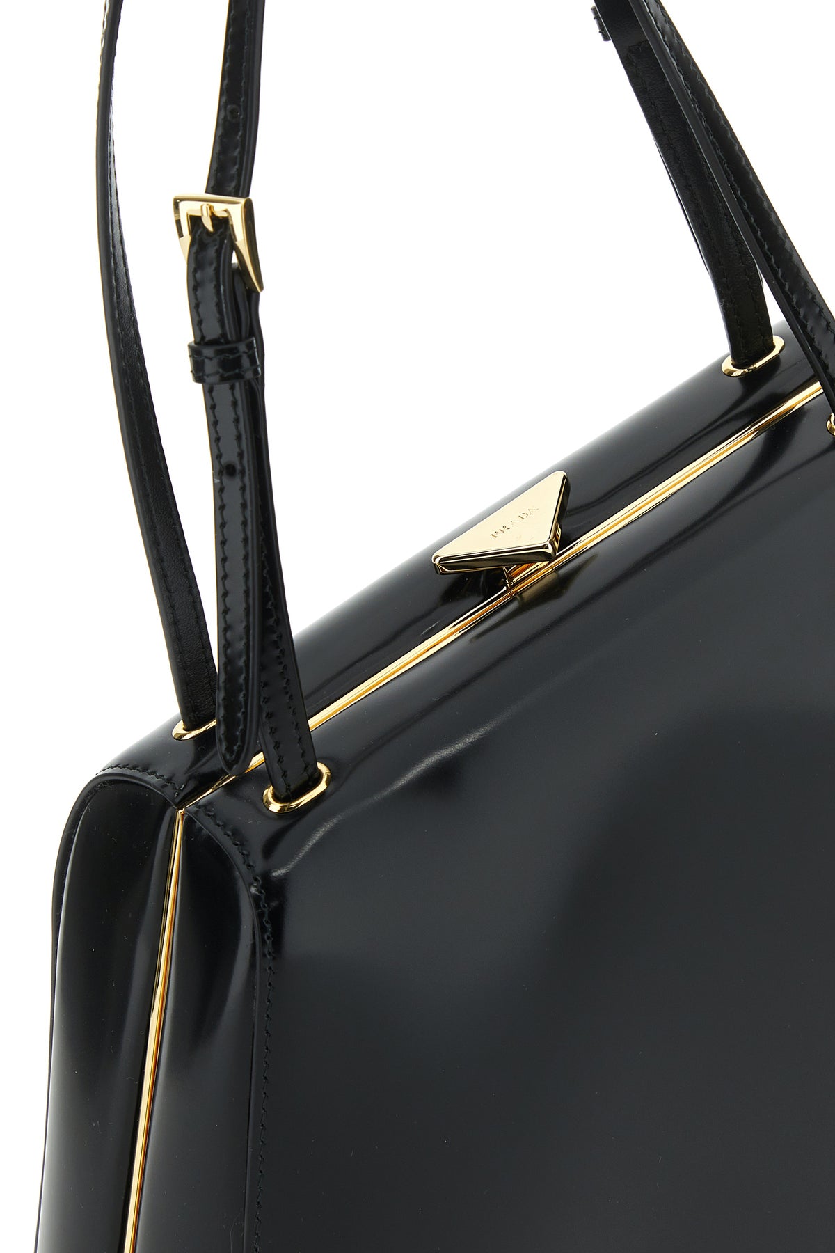 Handbag realized in smooth leather characterized by logoed press-stud closure.