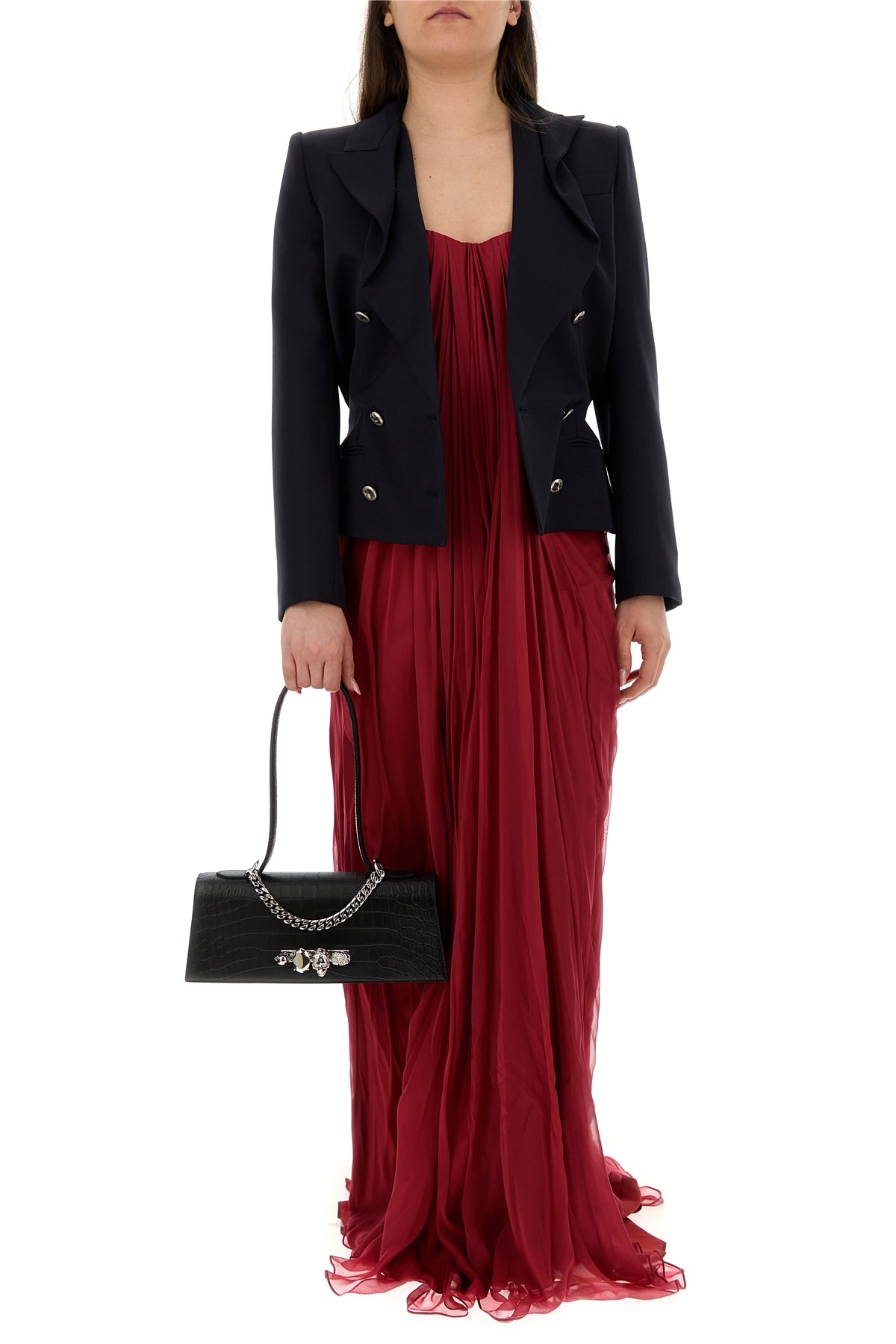 Shoulder bag realized in crocodile embossed calf leather enriched by Knuckle metal detail and metal chain at the front.