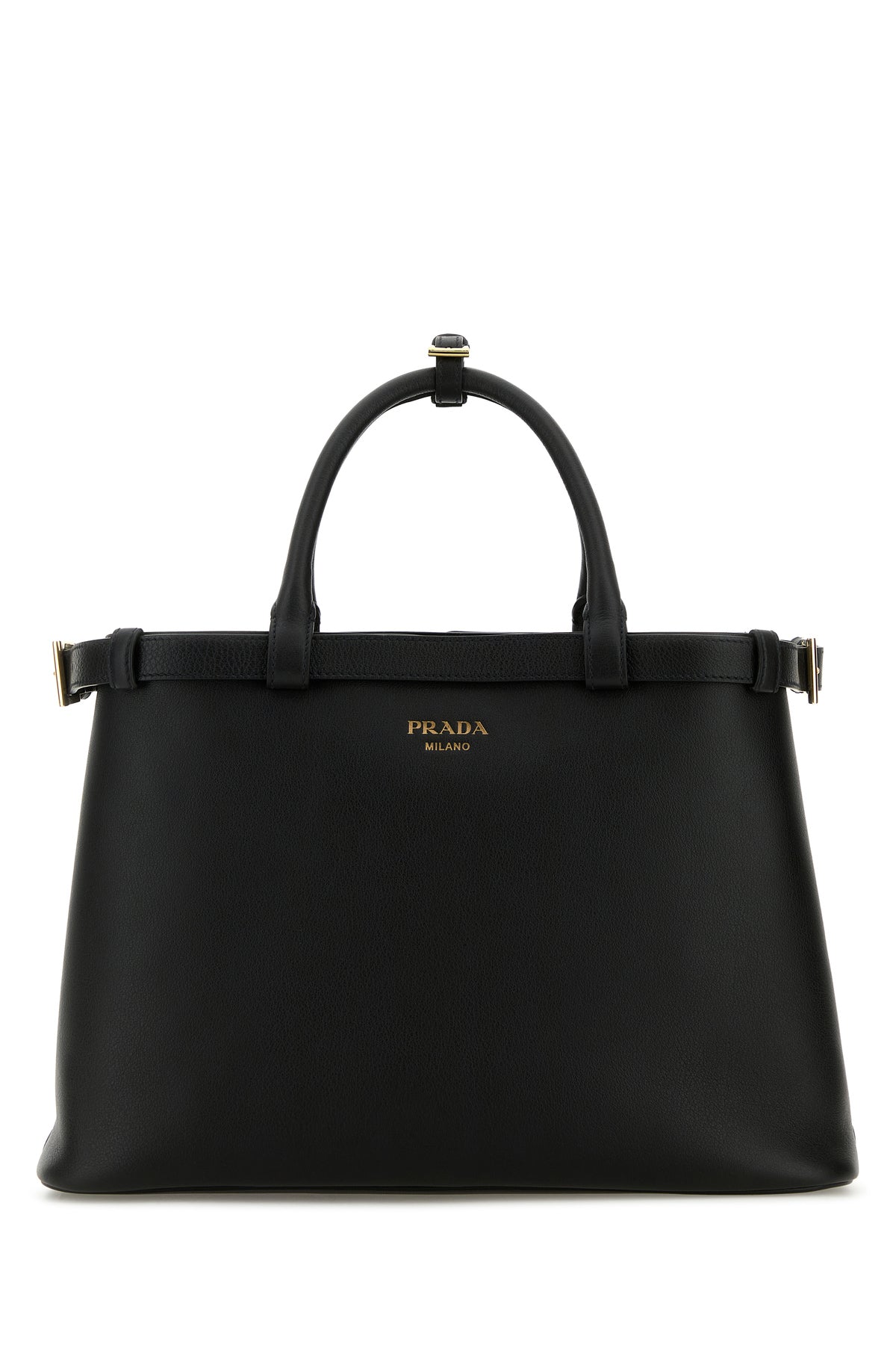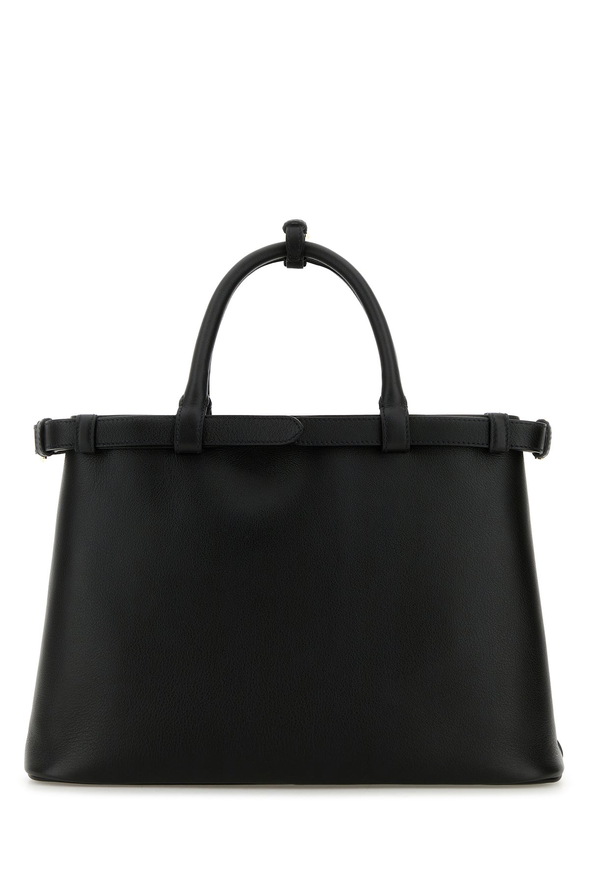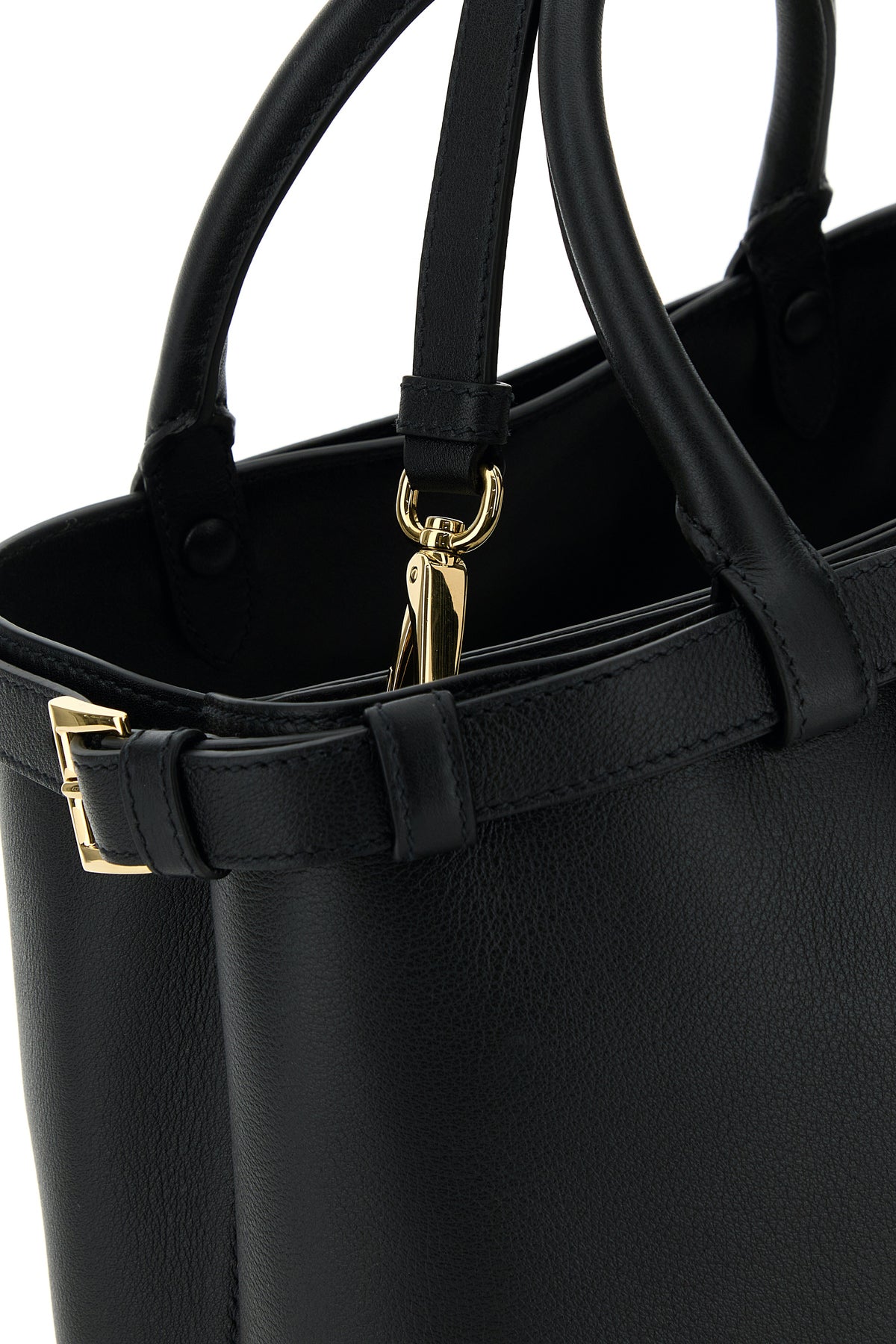 Handbag realized in slightly pebble leather characterized by contrasting printed logo at the front enriched by tonal leather belt.