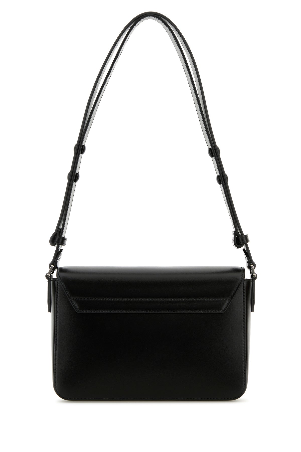 Shoulder bag realized in polished-finish smooth leather enriched by enameled logo at the front.