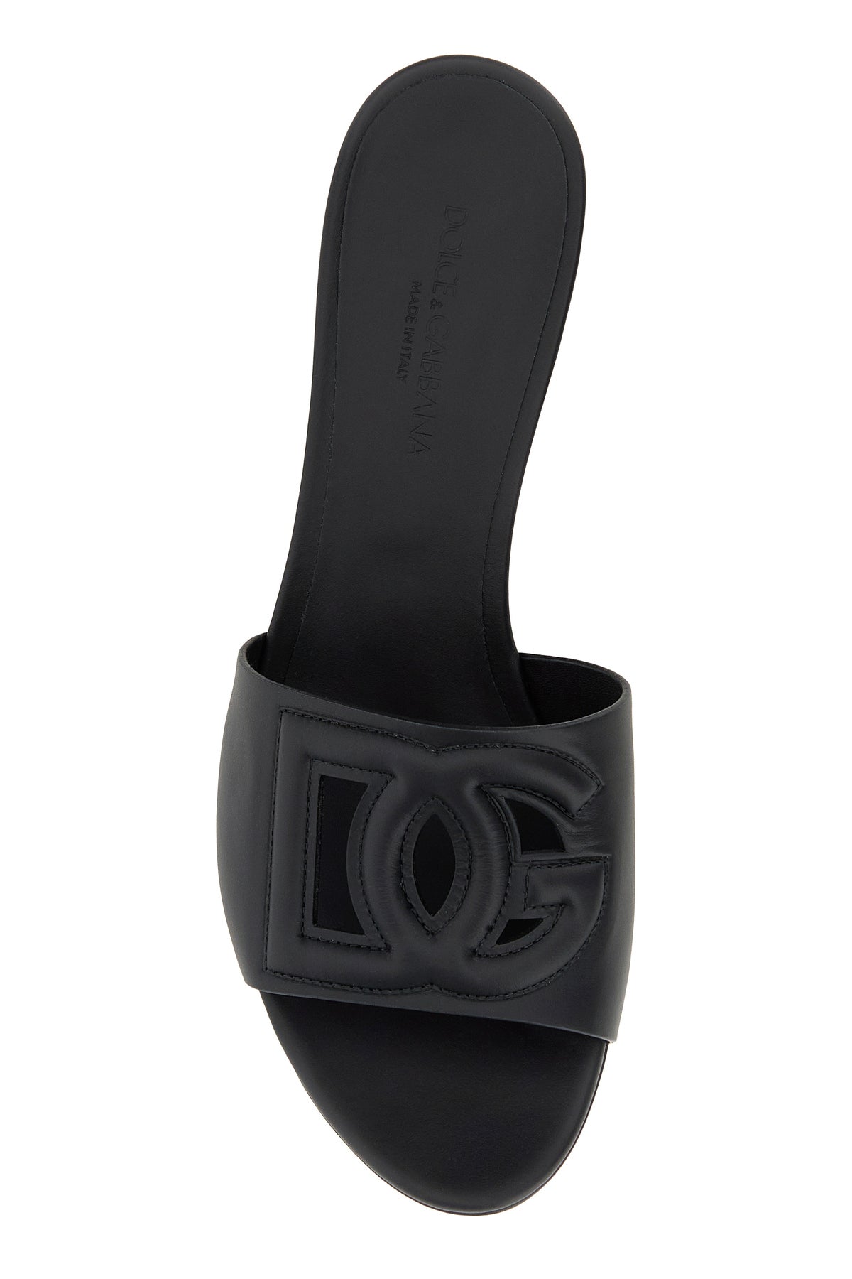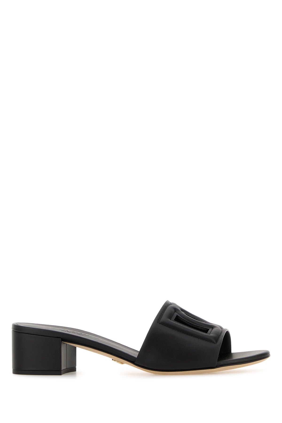 Mules realized in calf leather characterized by DG patch on the instep.