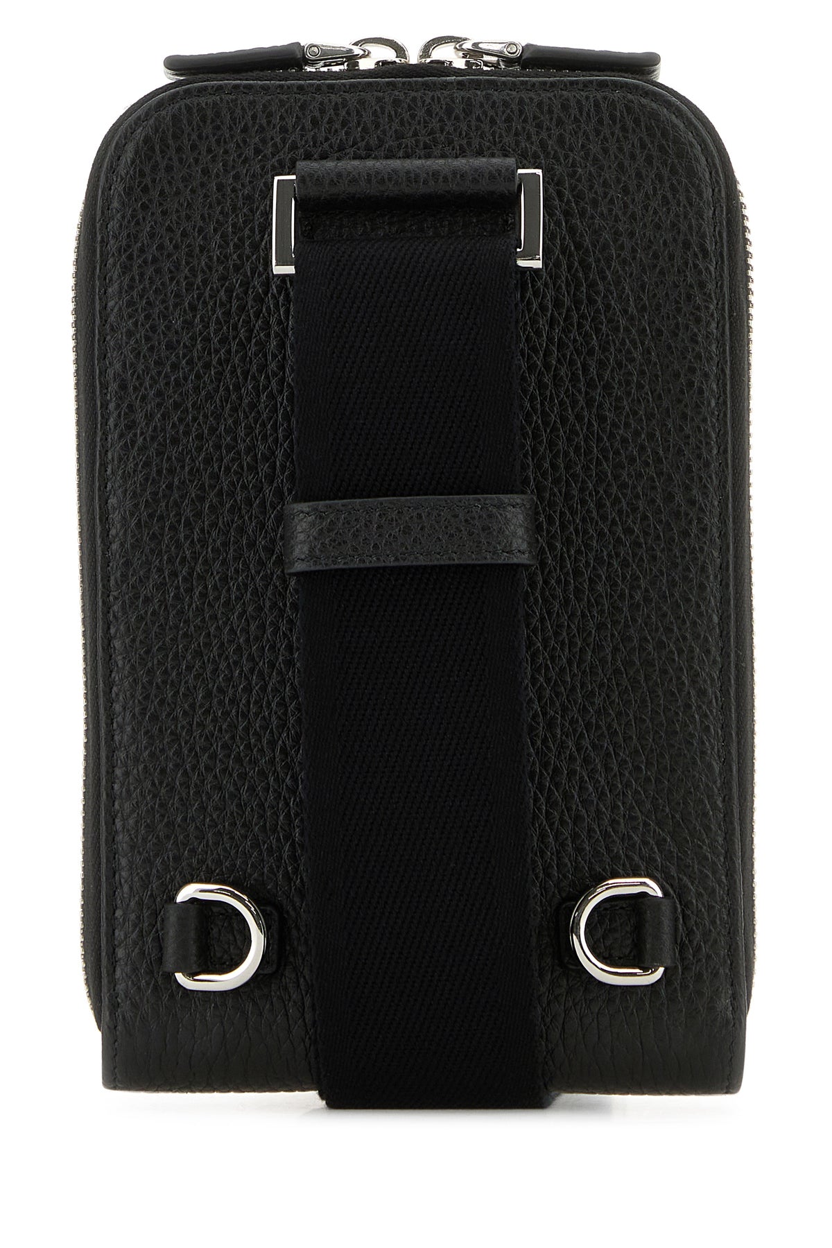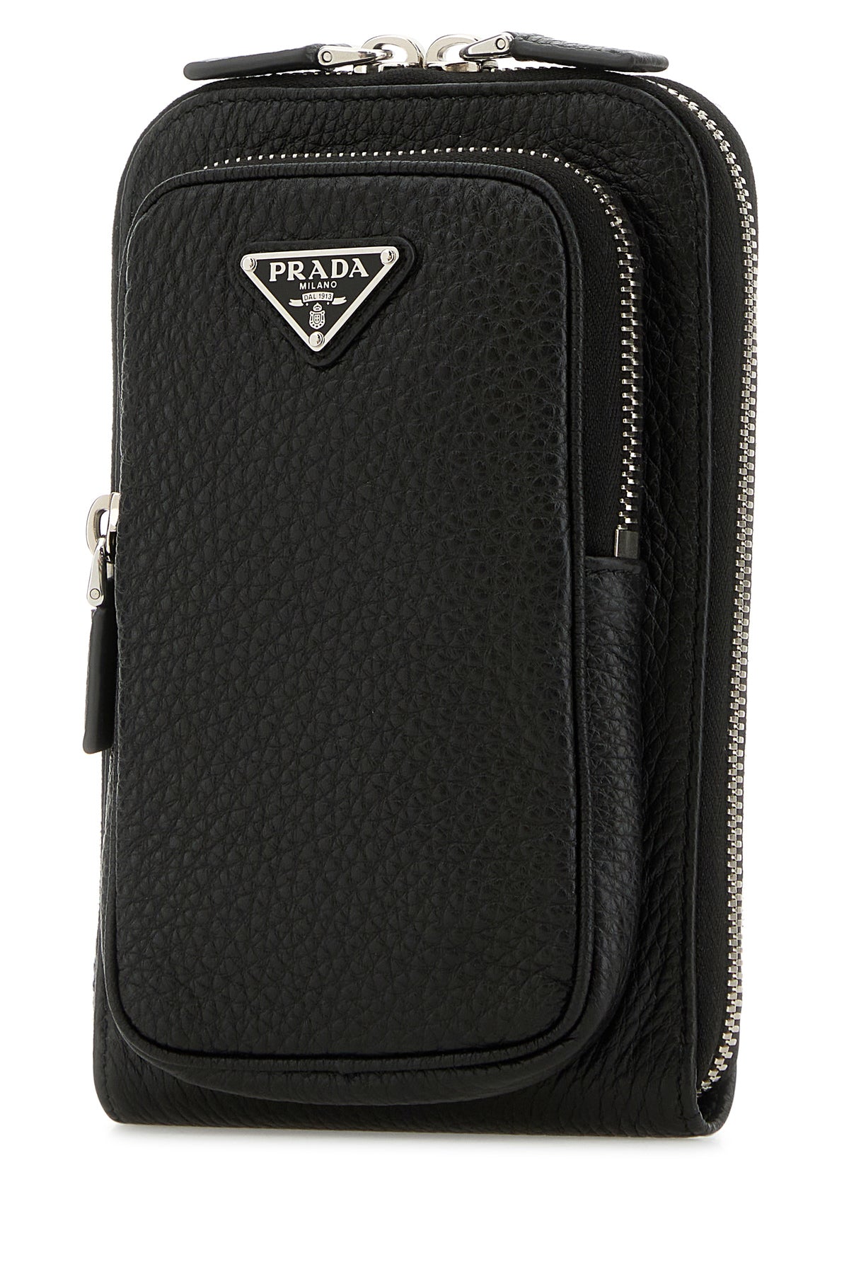 Phone case realized in pebble deer leather enriched by iconic logoed triangle at the front.
