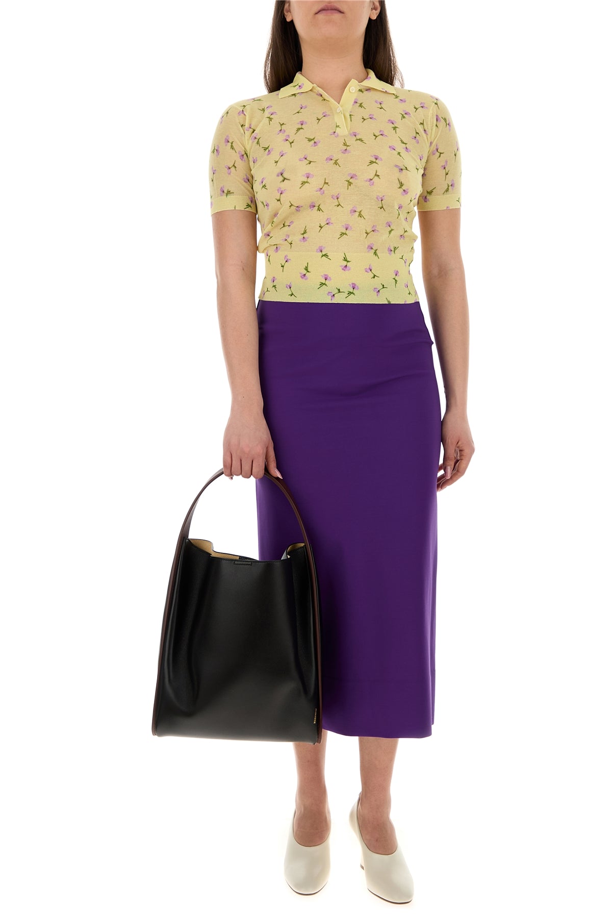 Bucket bag realized in ovine leather characterized by laminated printed logo on the side.