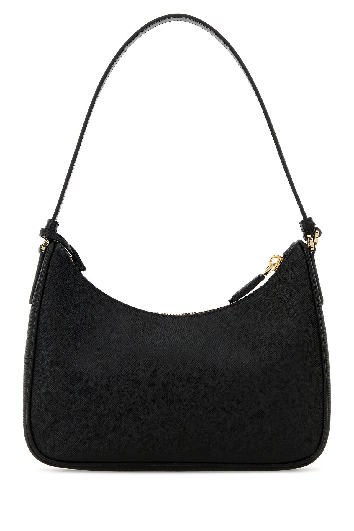Shoulder bag realized in Saffiano leather enriched by iconic logoed metal triangle at the front.