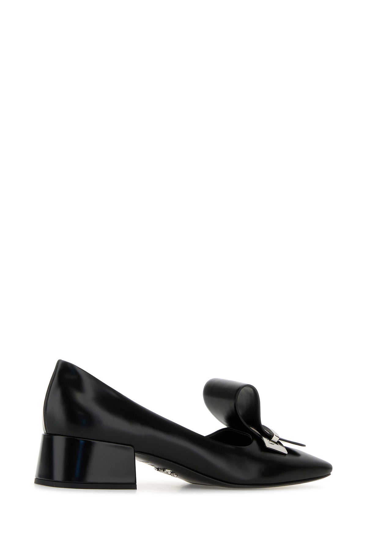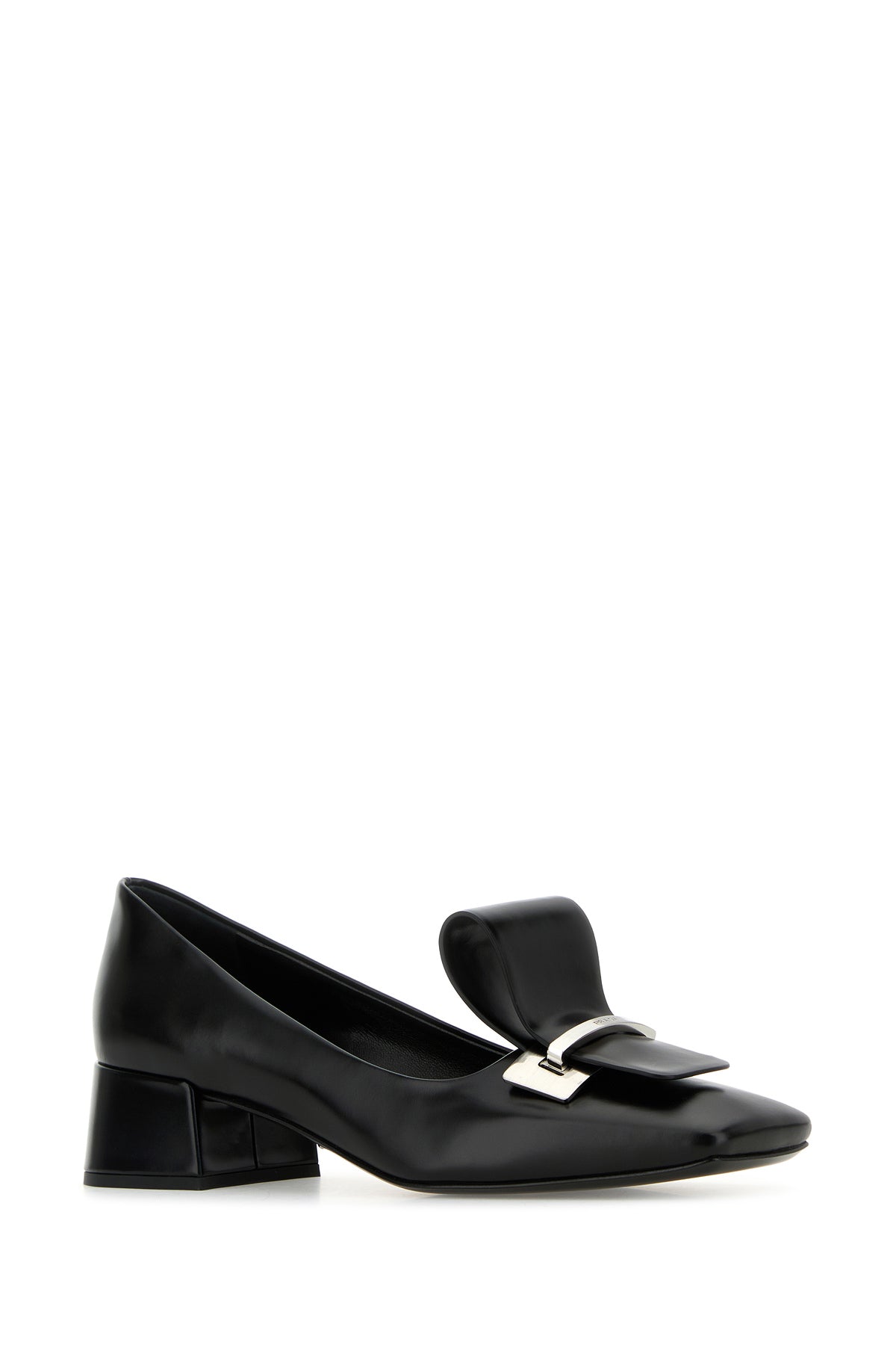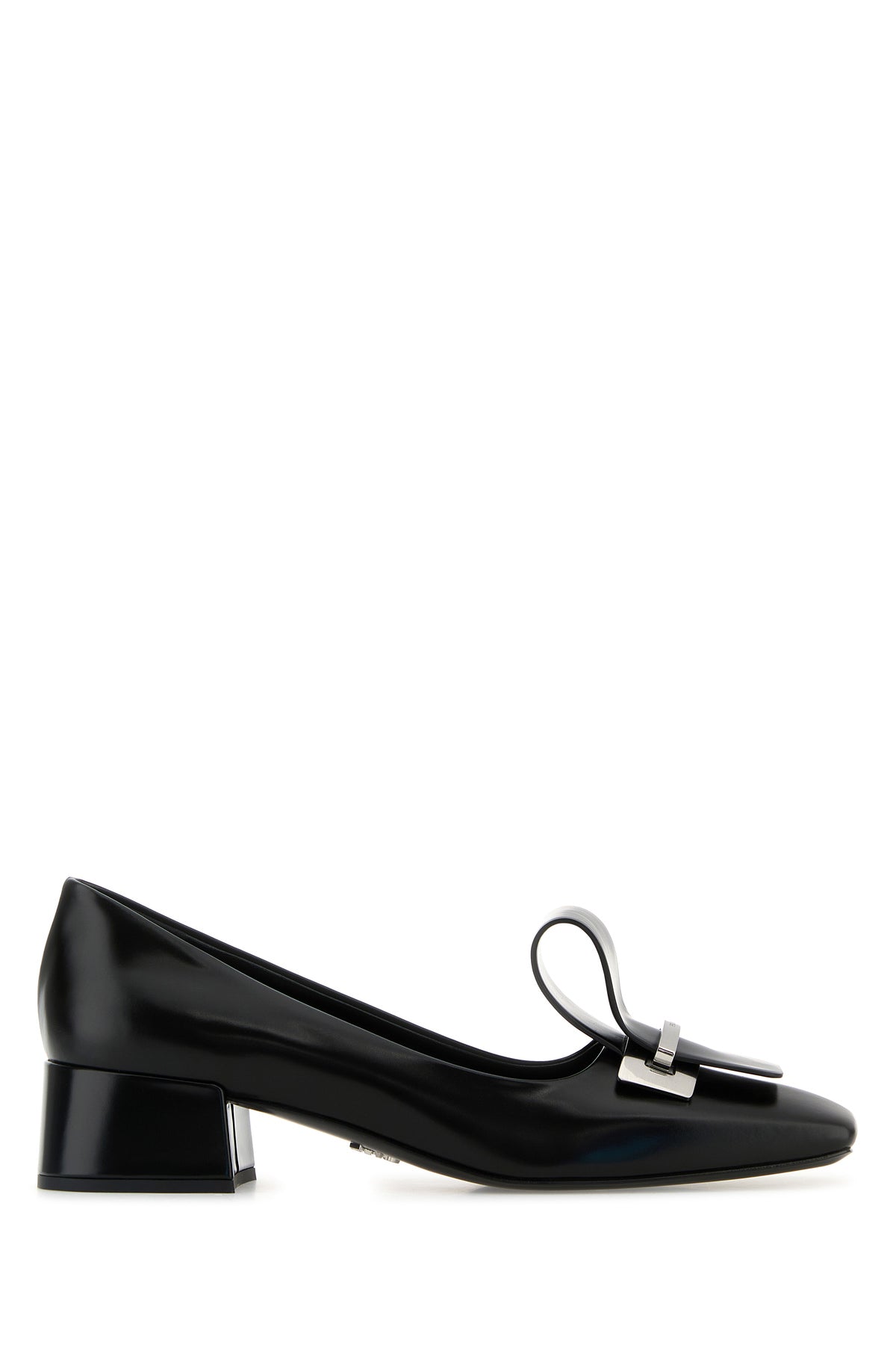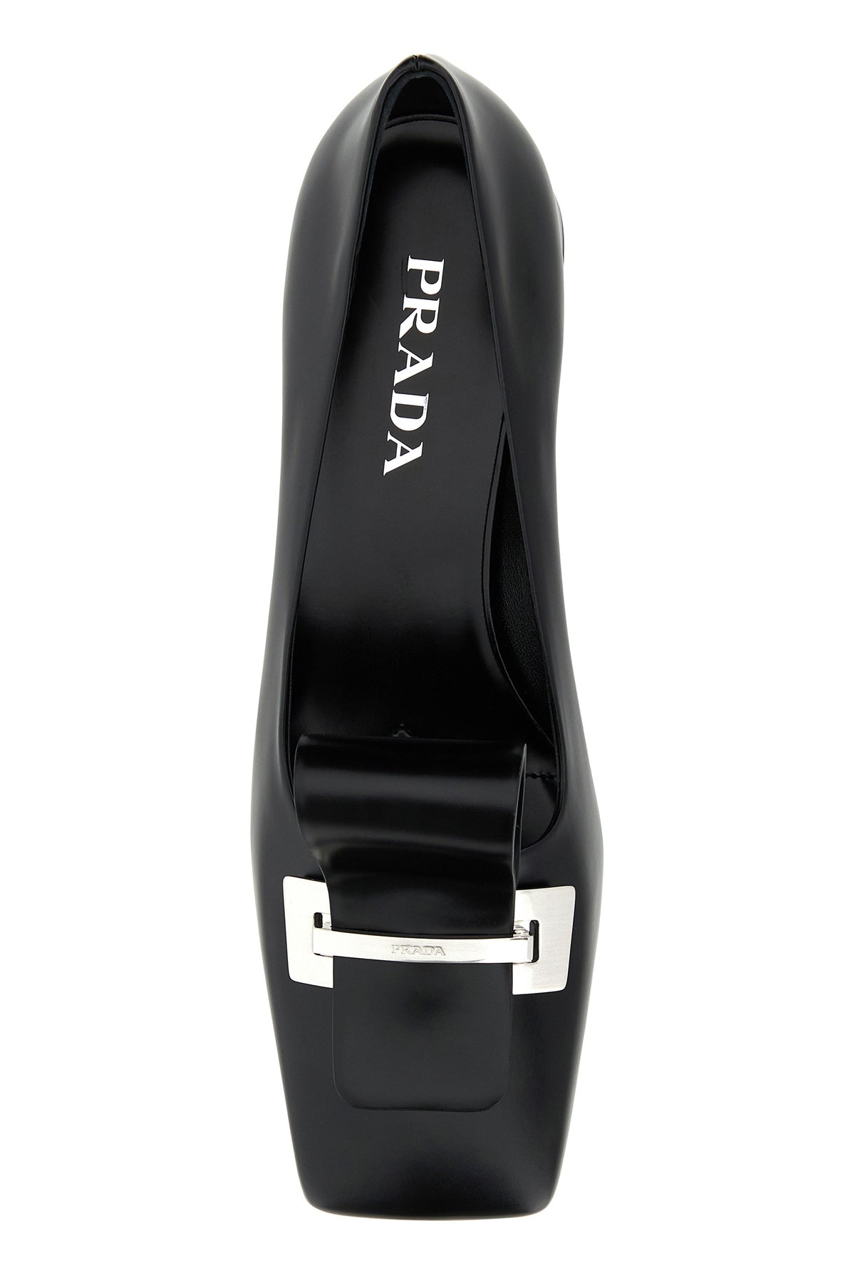 Pumps realized in leather enriched by logoed metal plate on the instep.