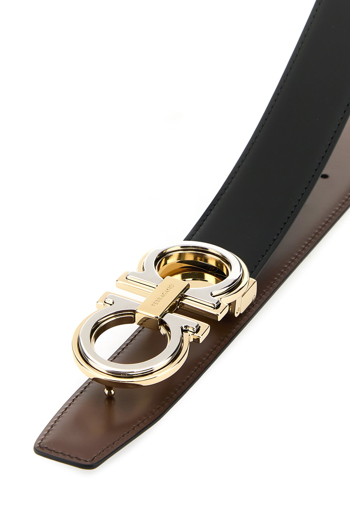 Reversible belt realized in polished-finish calf leather enriched by metal Gancini buckle.