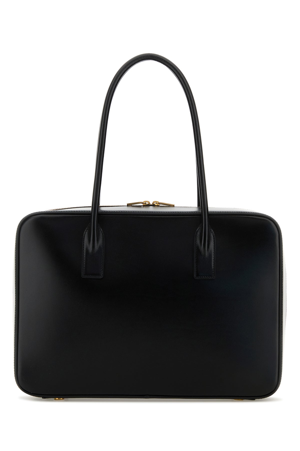 Handbag realized in smooth lamb leather characterized by laminated printed logo at the front.