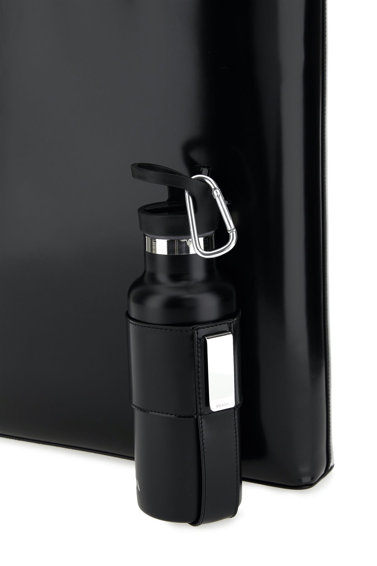 Black leather shopping bag