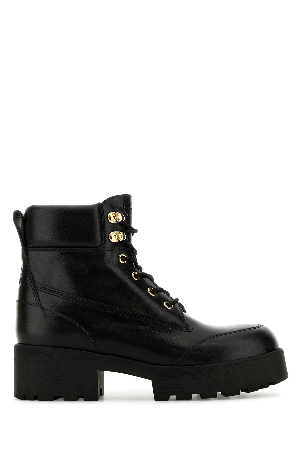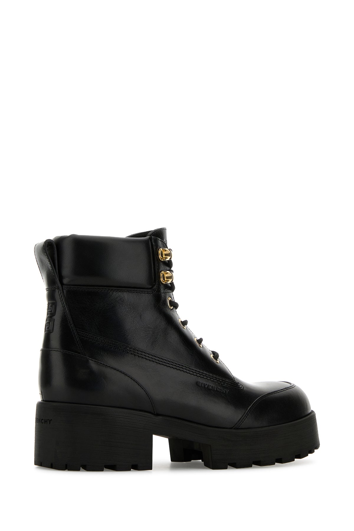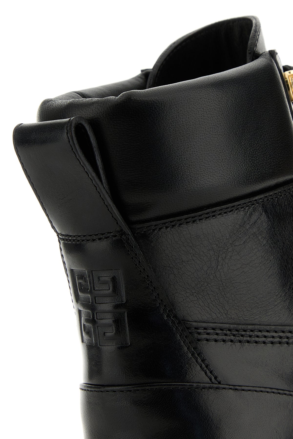 Ankle boots realized in polished-finish smooth bovine leather characterized by embossed logo on the side and embossed 4G at the back.