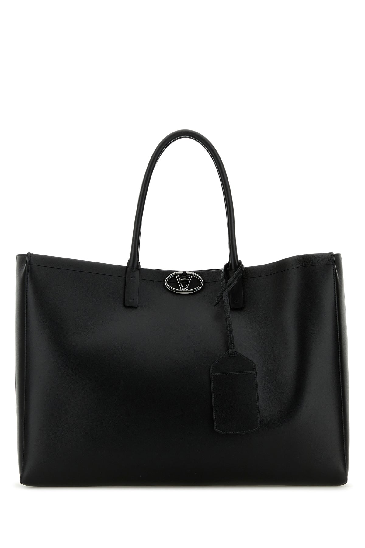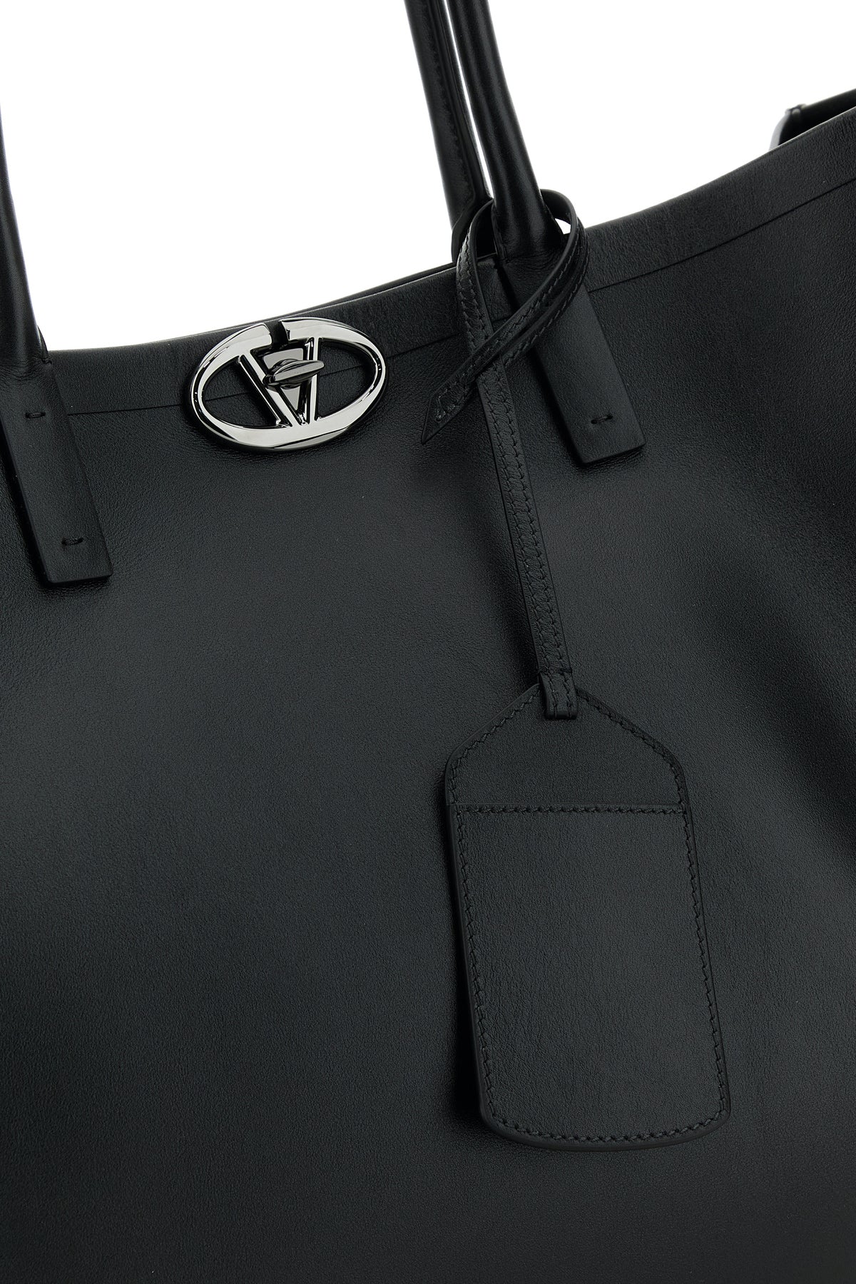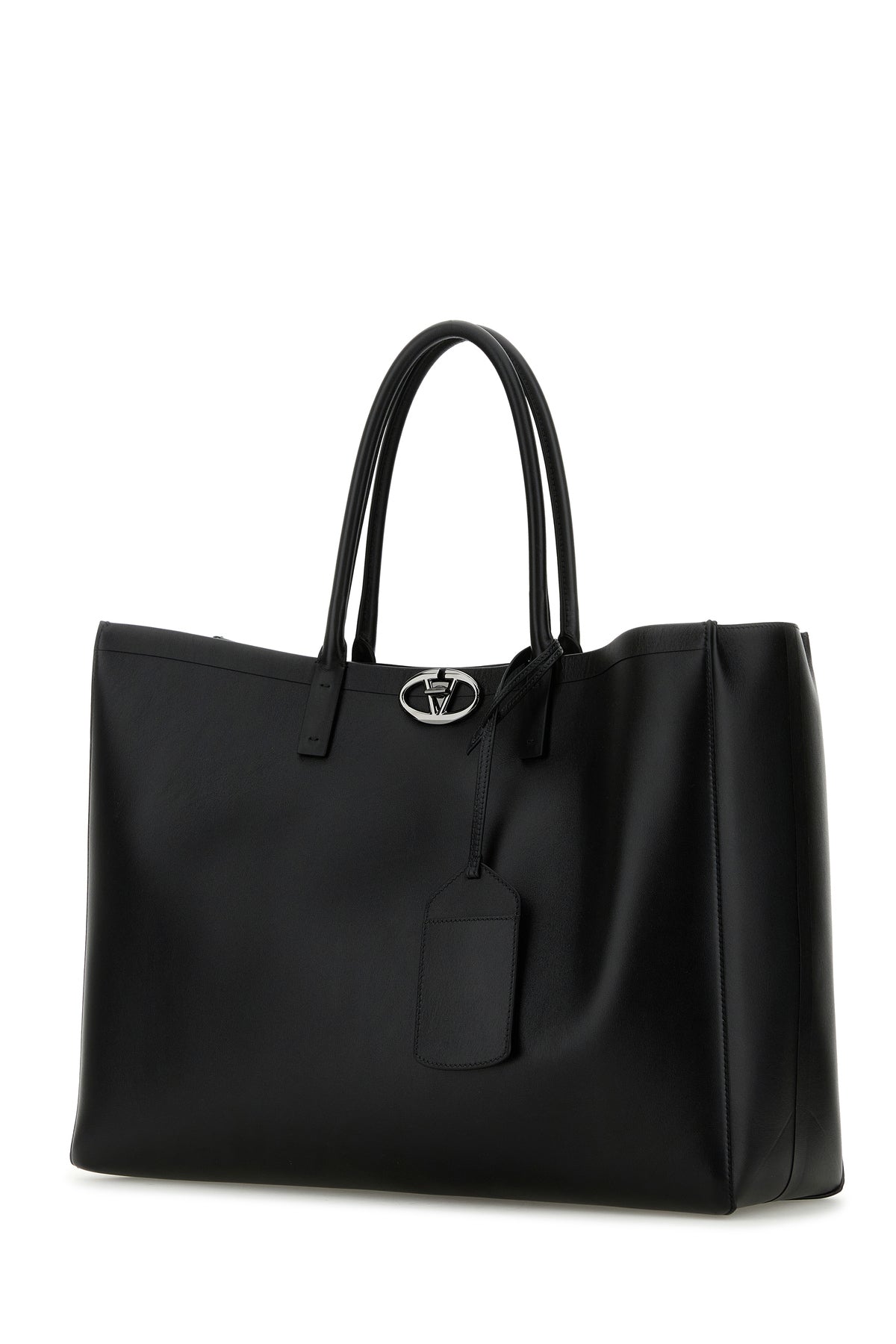 Black leather VLogo shopping bag