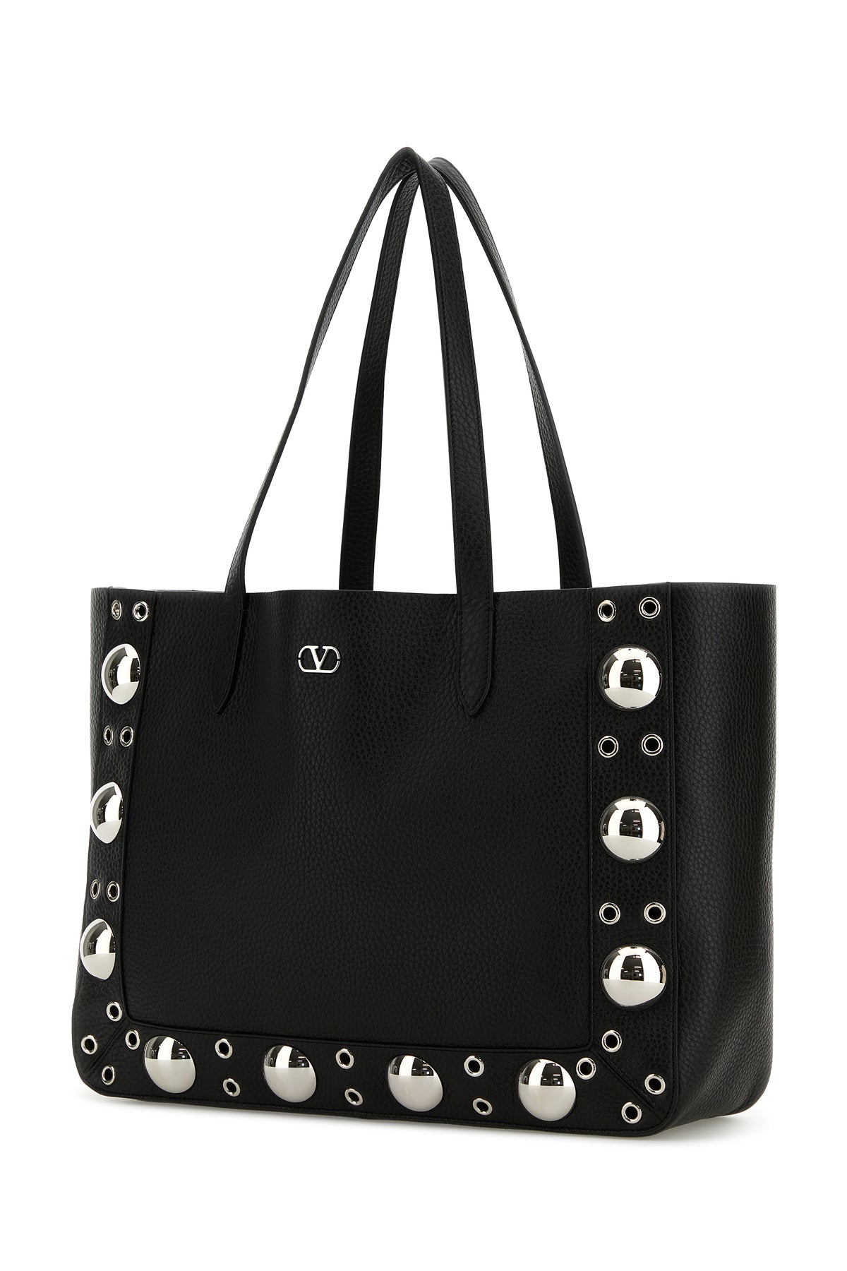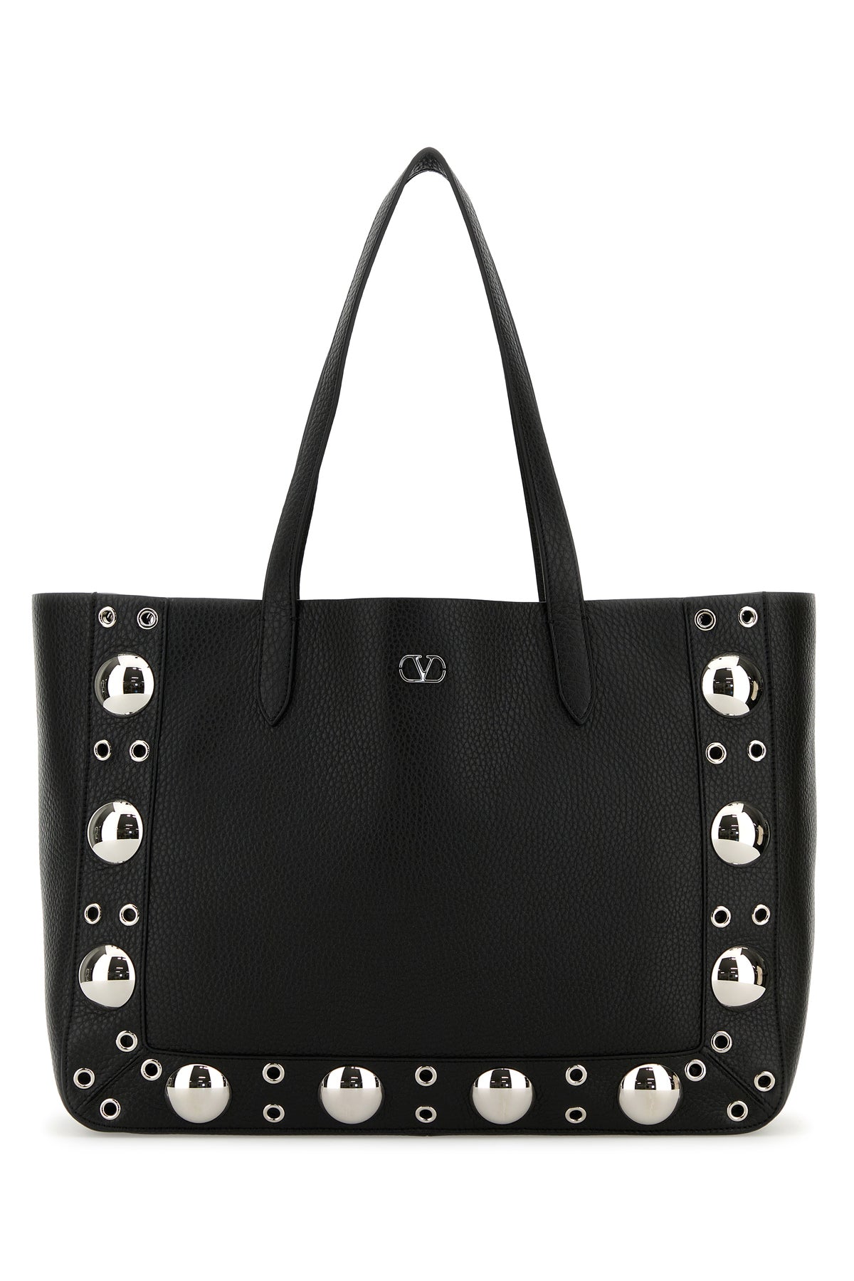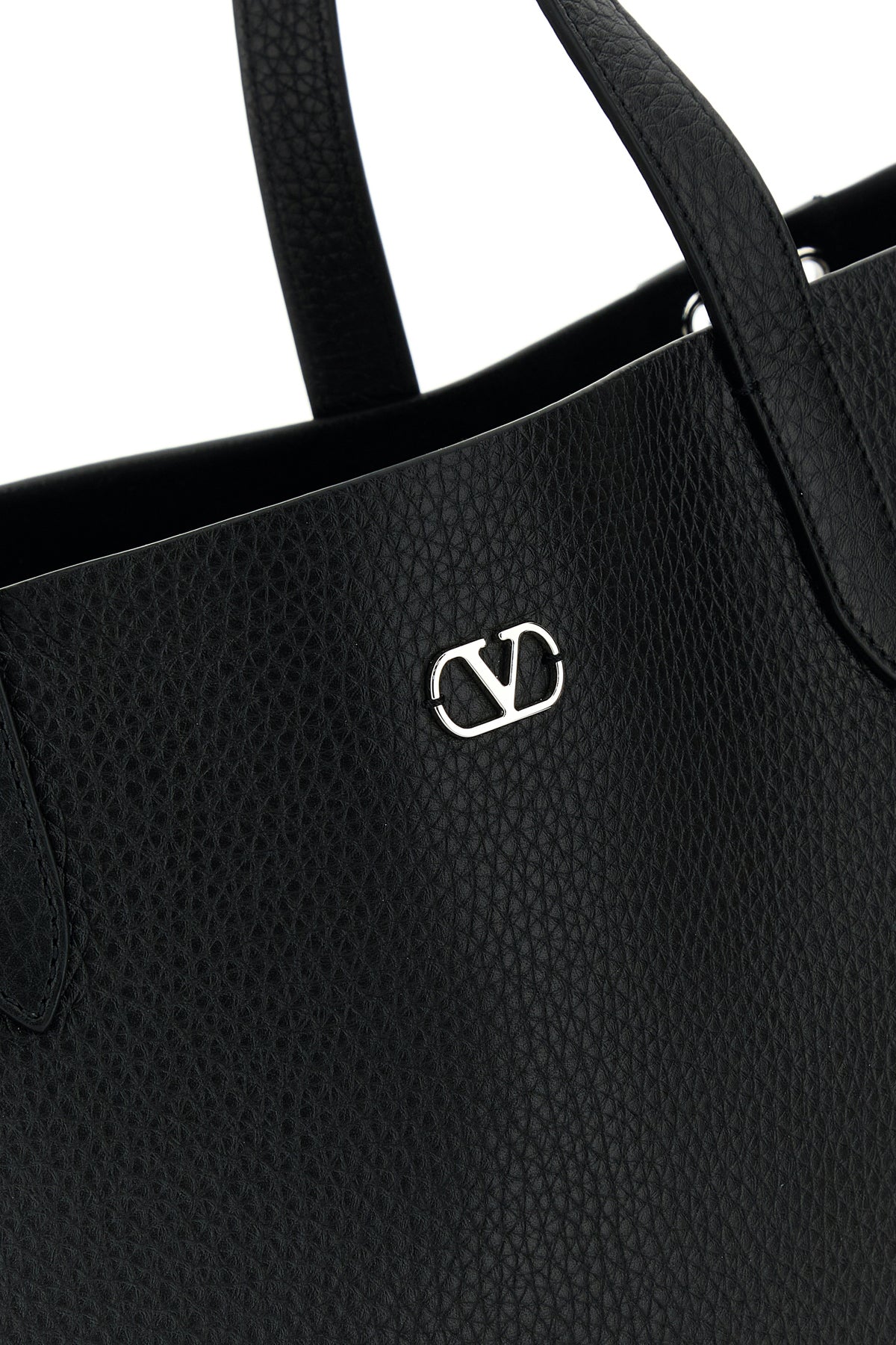 Shopping bag realized in pebble leather enriched by metal studs on the trimmings and VLogo Signature metal detail at the front.