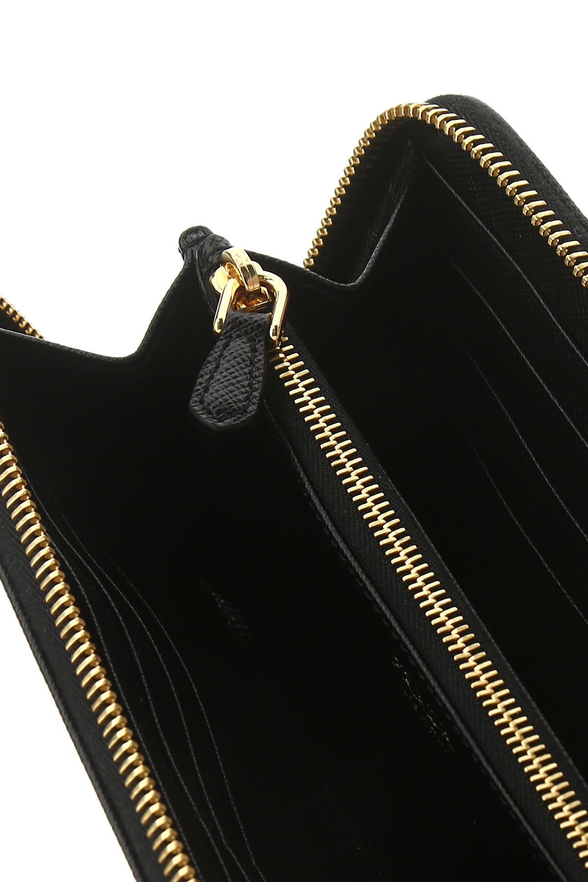 - Interior with two gusseted compartments, a central zip pocket, two slit pockets and twelve credit card slots