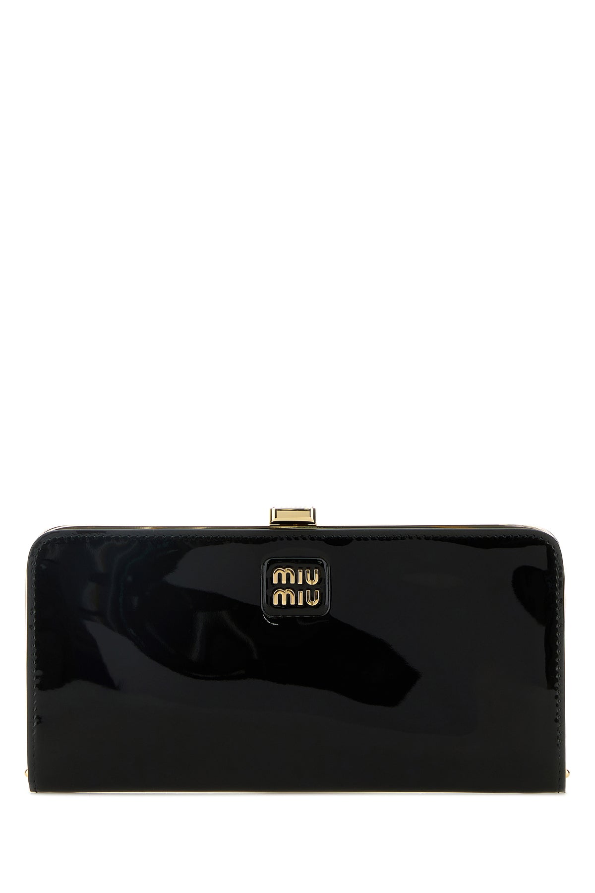 Wallet realized in patent leather enriched by metal lettering logo at the front.