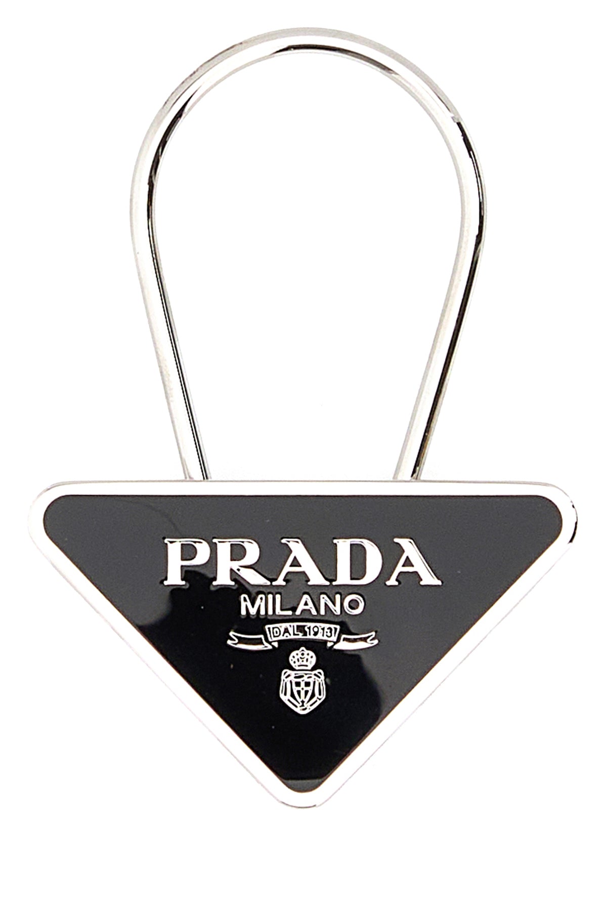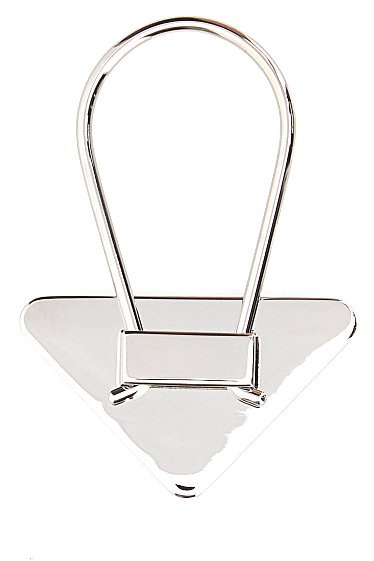 Key ring realized in silver-tone pleated metal characterized by printed logo at the front.