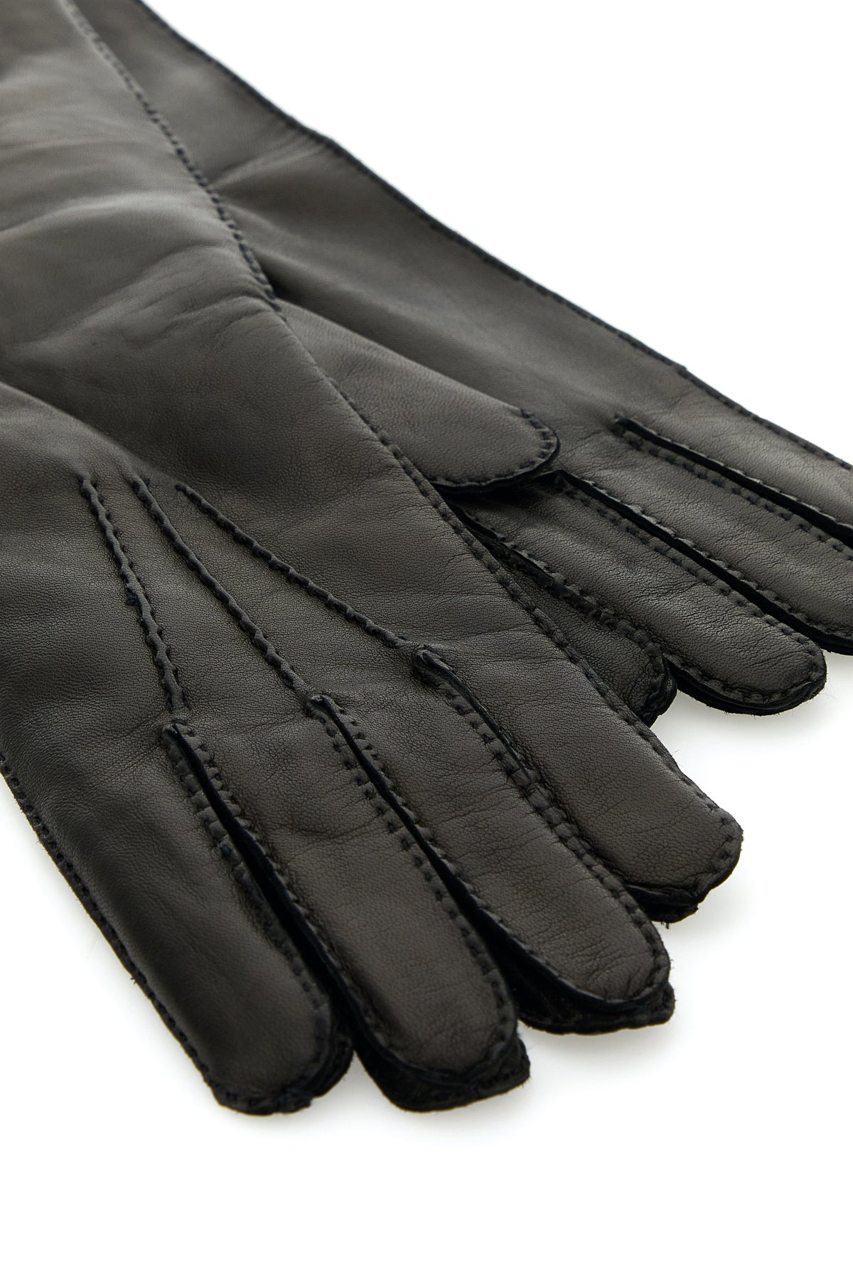 Gloves realized in polished-finish smooth nappa leather enriched by tonal leather logoed label at the back.