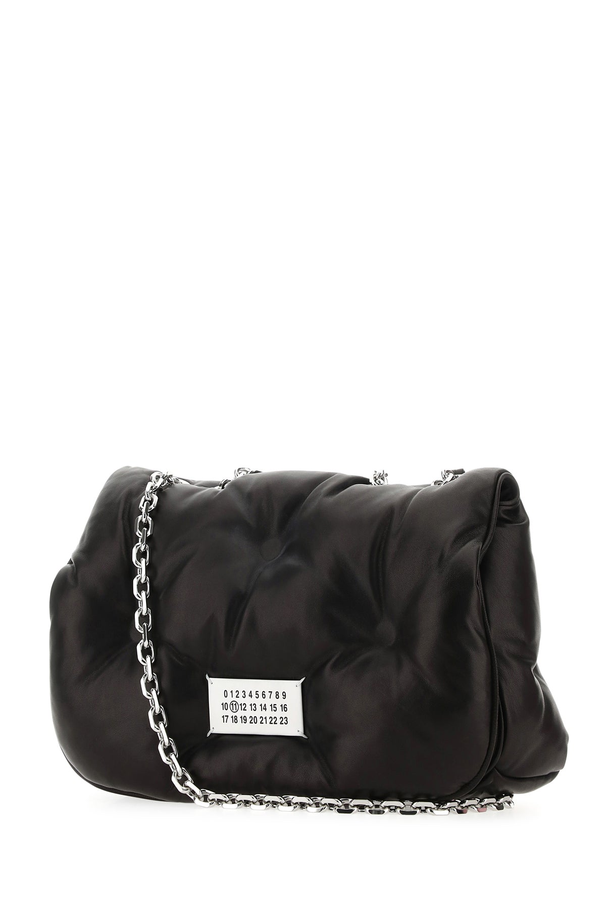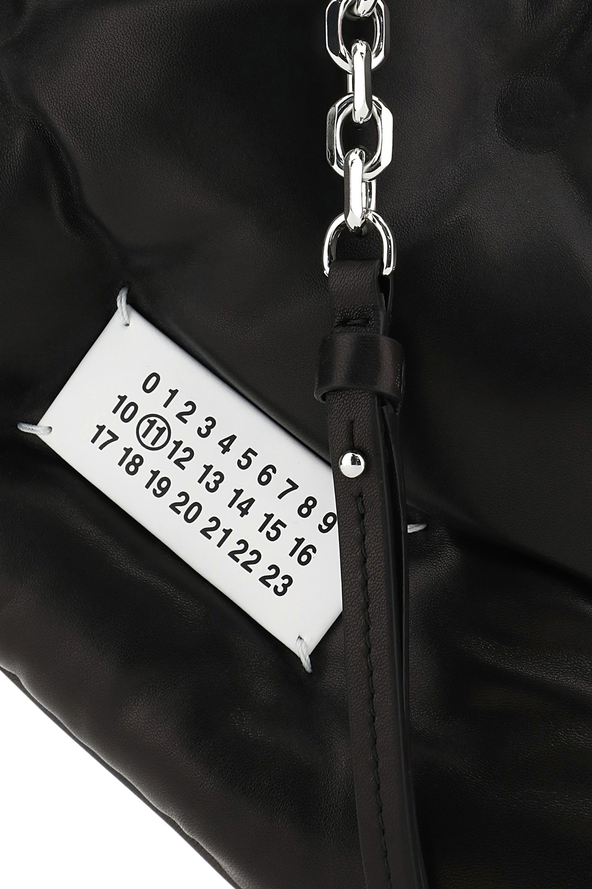 - Metal chain shoulder strap with tonal leather shoulder pad that can be worn single or double