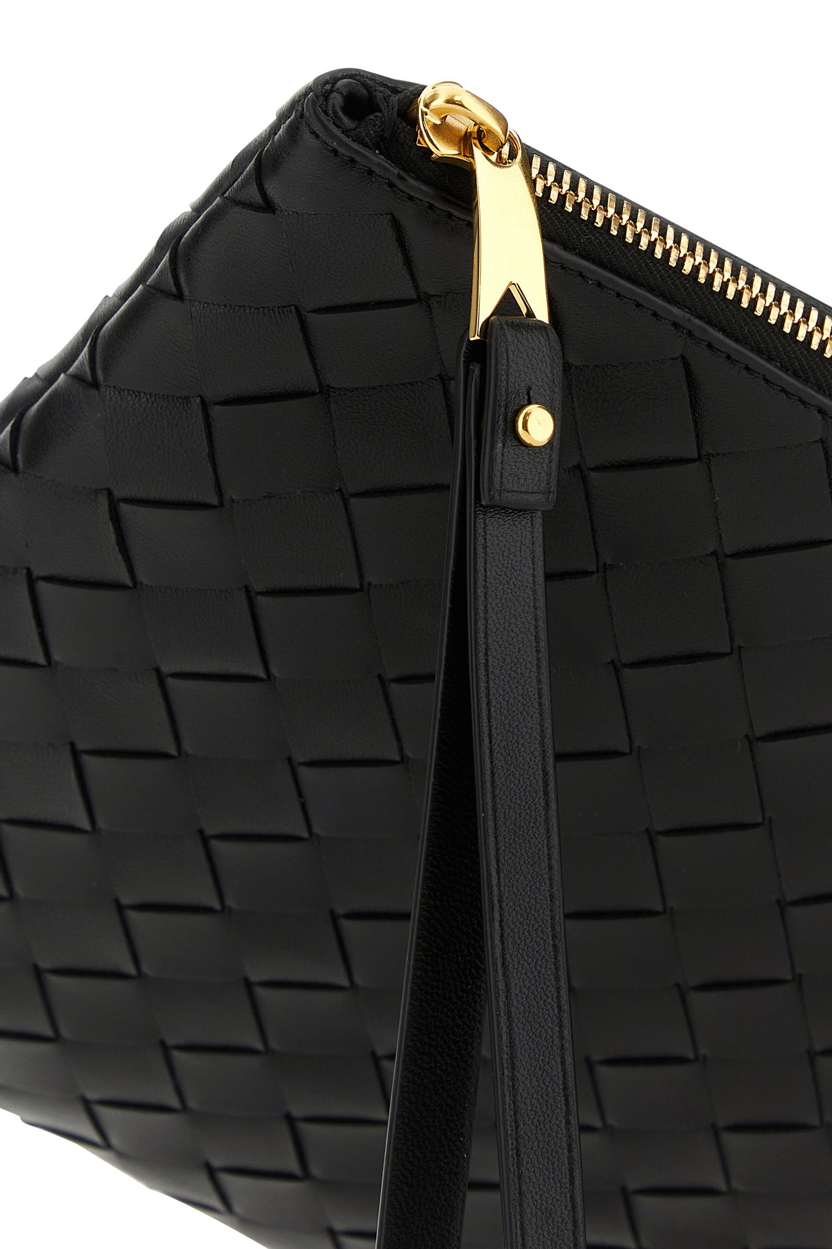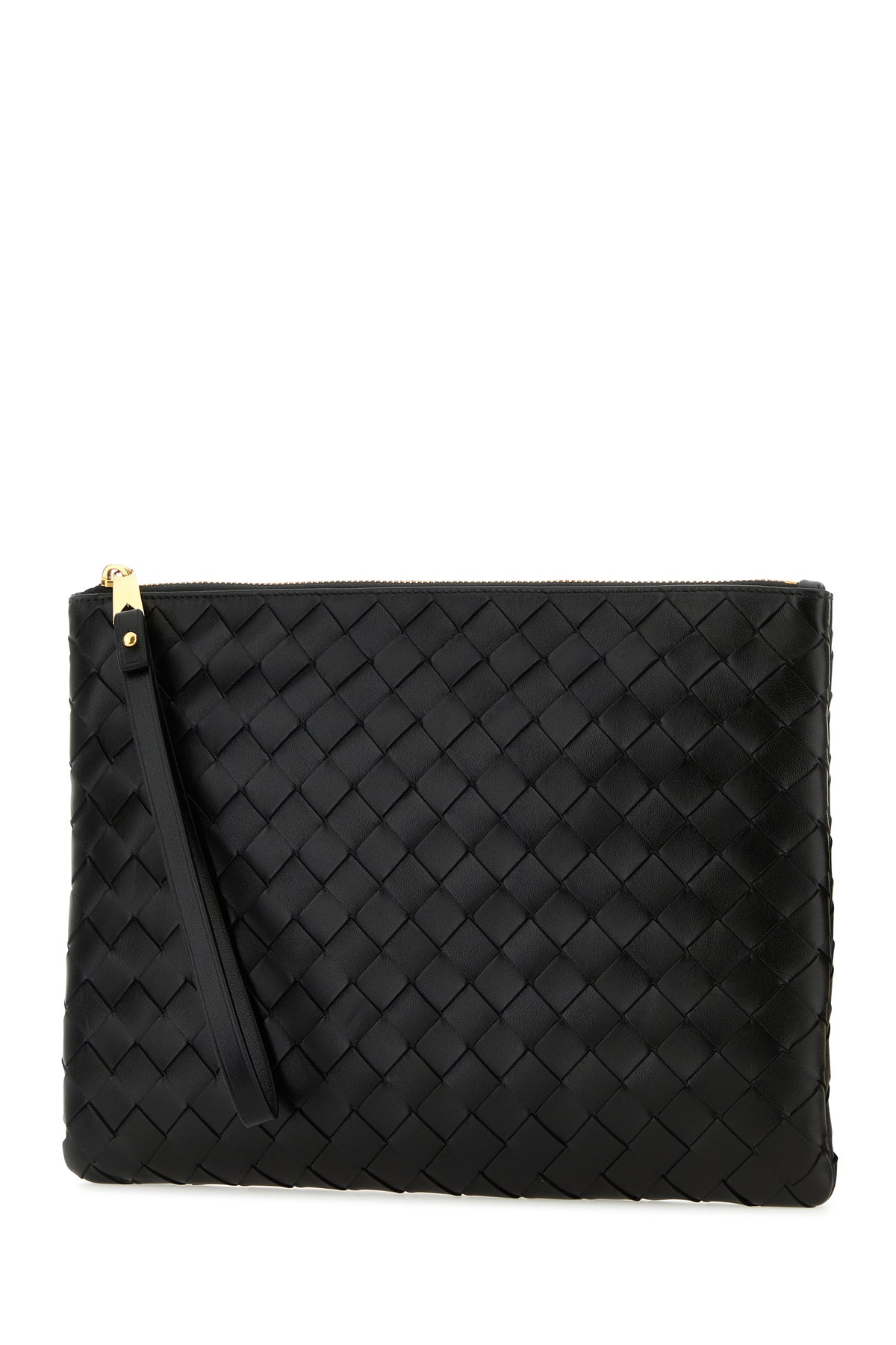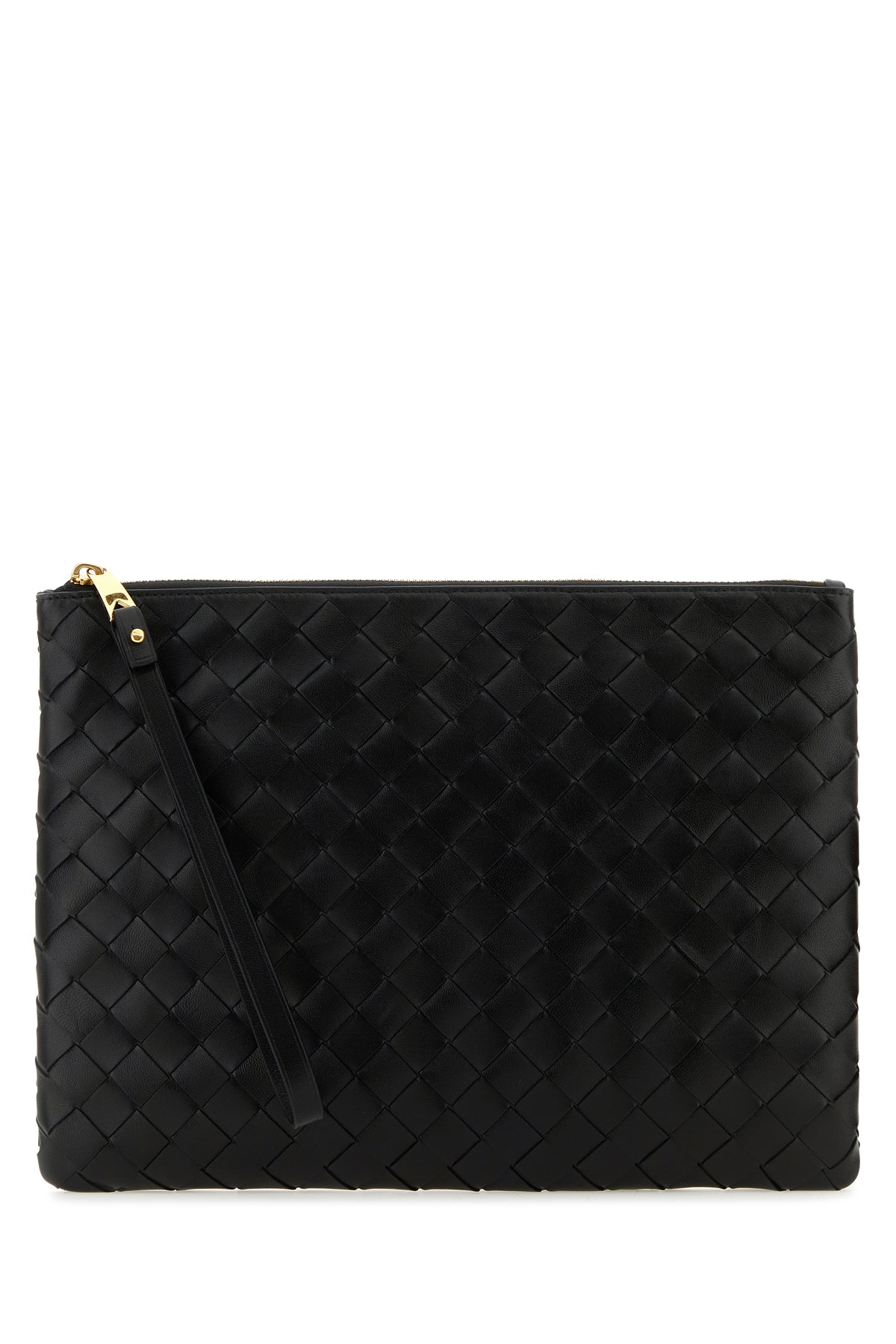 Pouch realized in lamb nappa leather characterized by iconic Intrecciato motif on the entire surface.