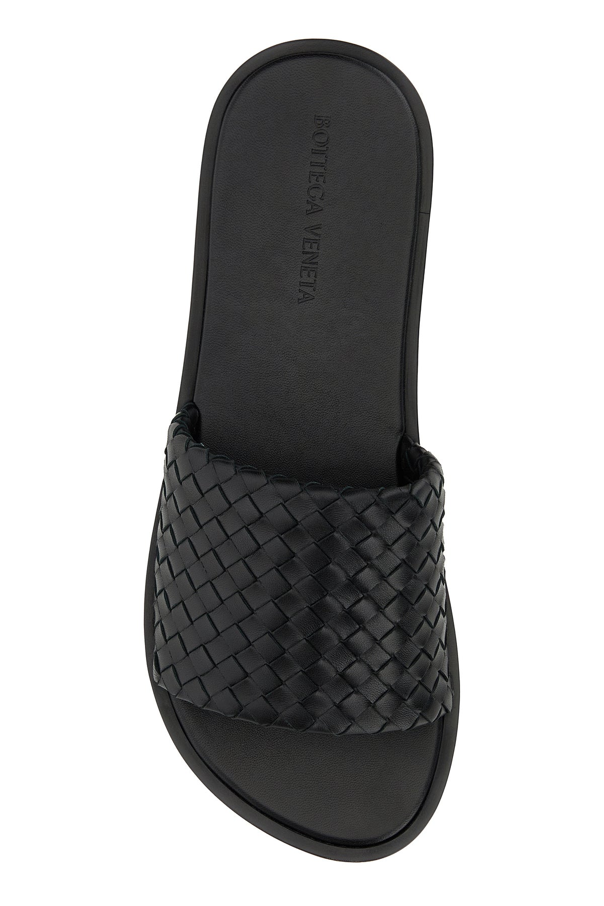 Slippers realized in nappa leather characterized by iconic Intrecciato motif on the instep.