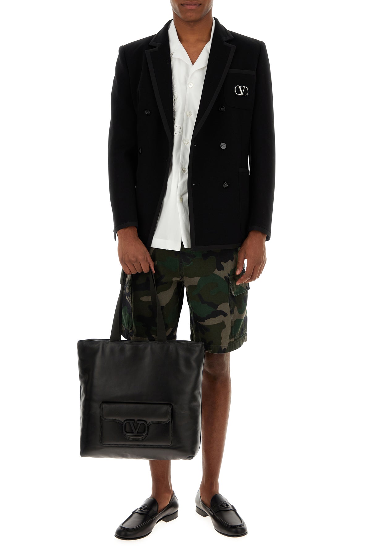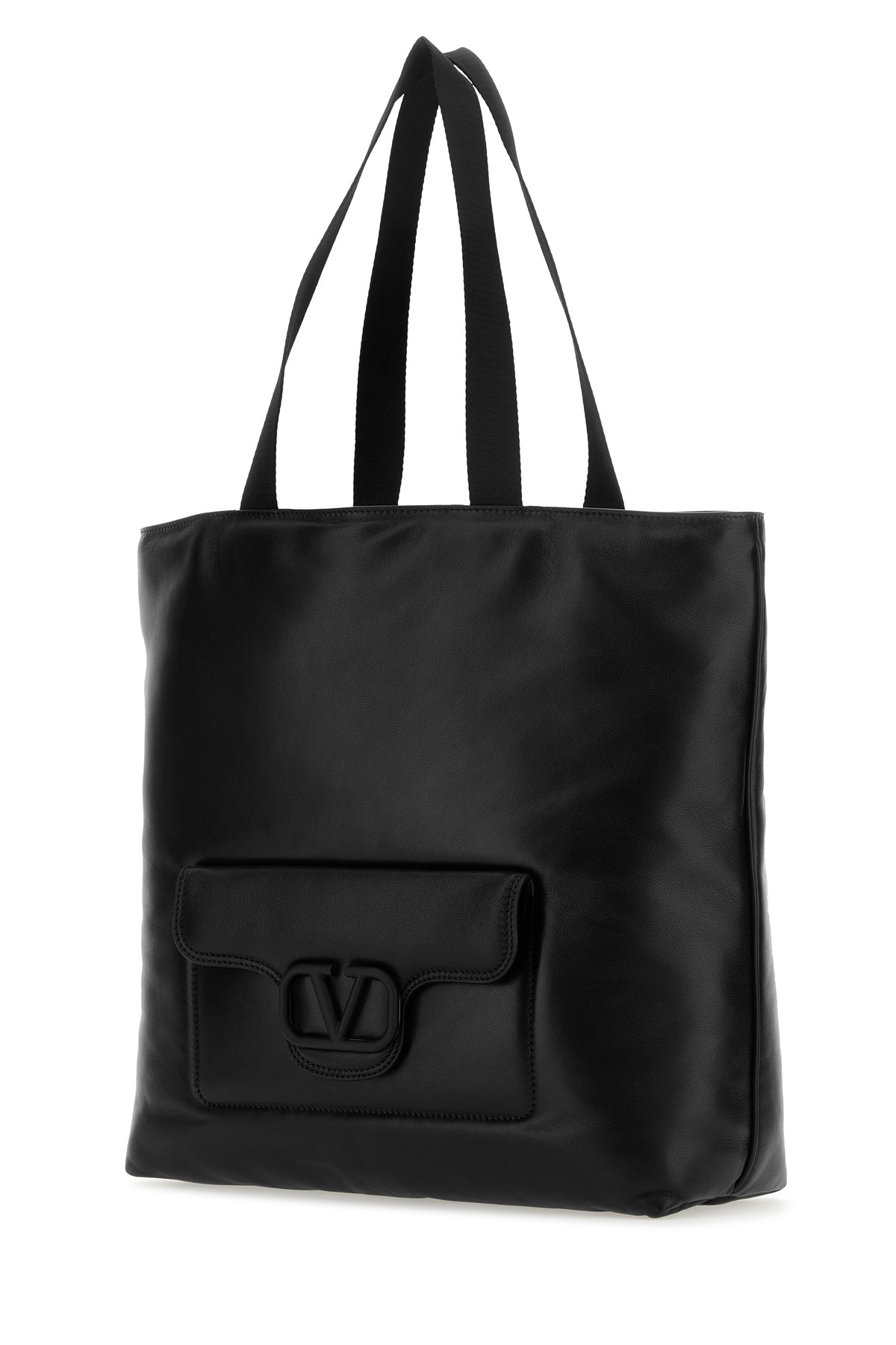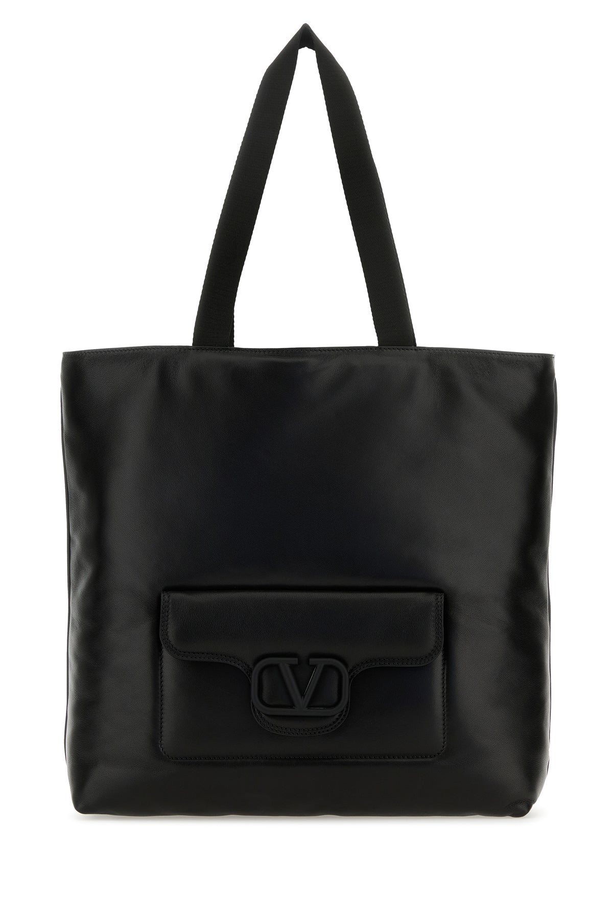 Shopping bag realized in nappa leather enriched by tonal metal VLogo detail at the front.