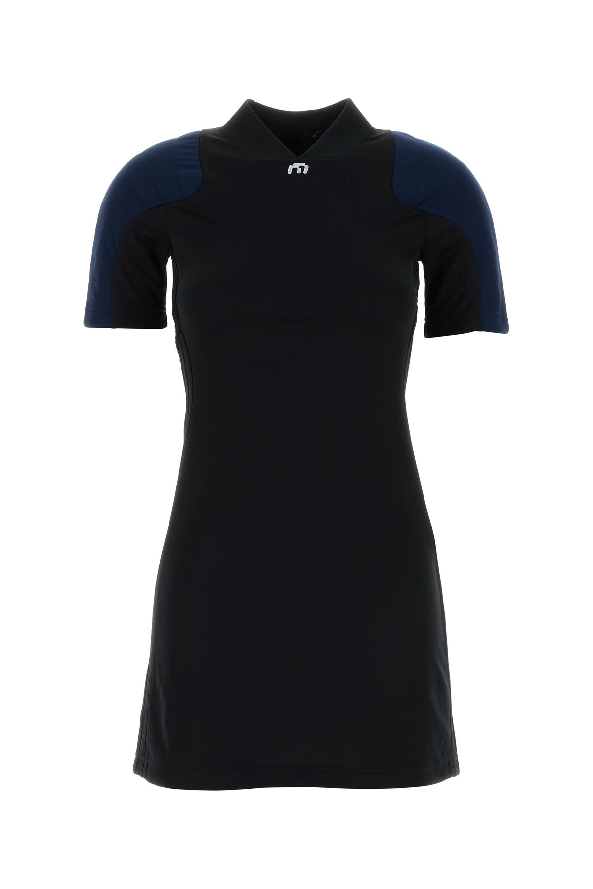 Mini dress realized in polyester characterized by embroidered logos at the front and at the back.