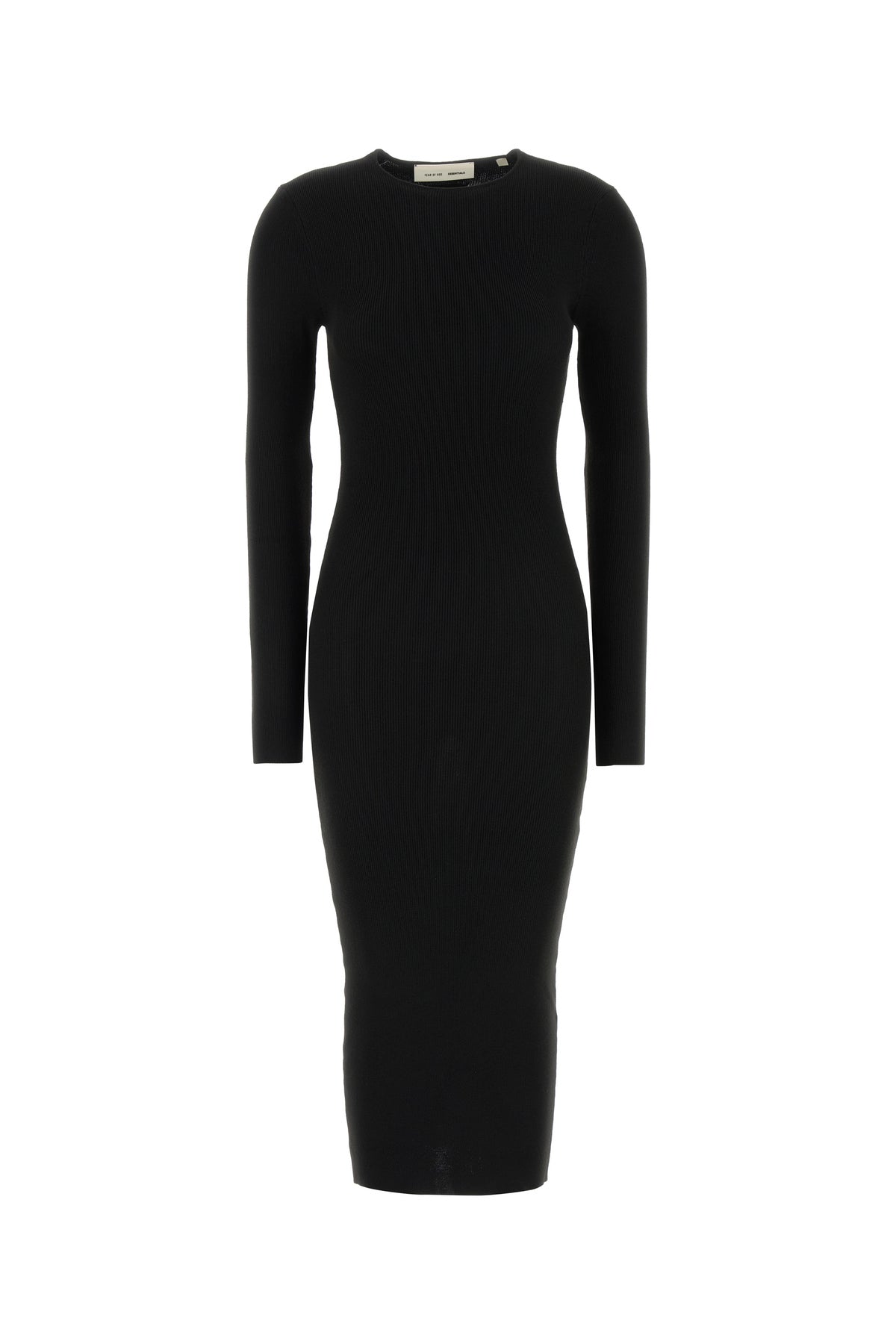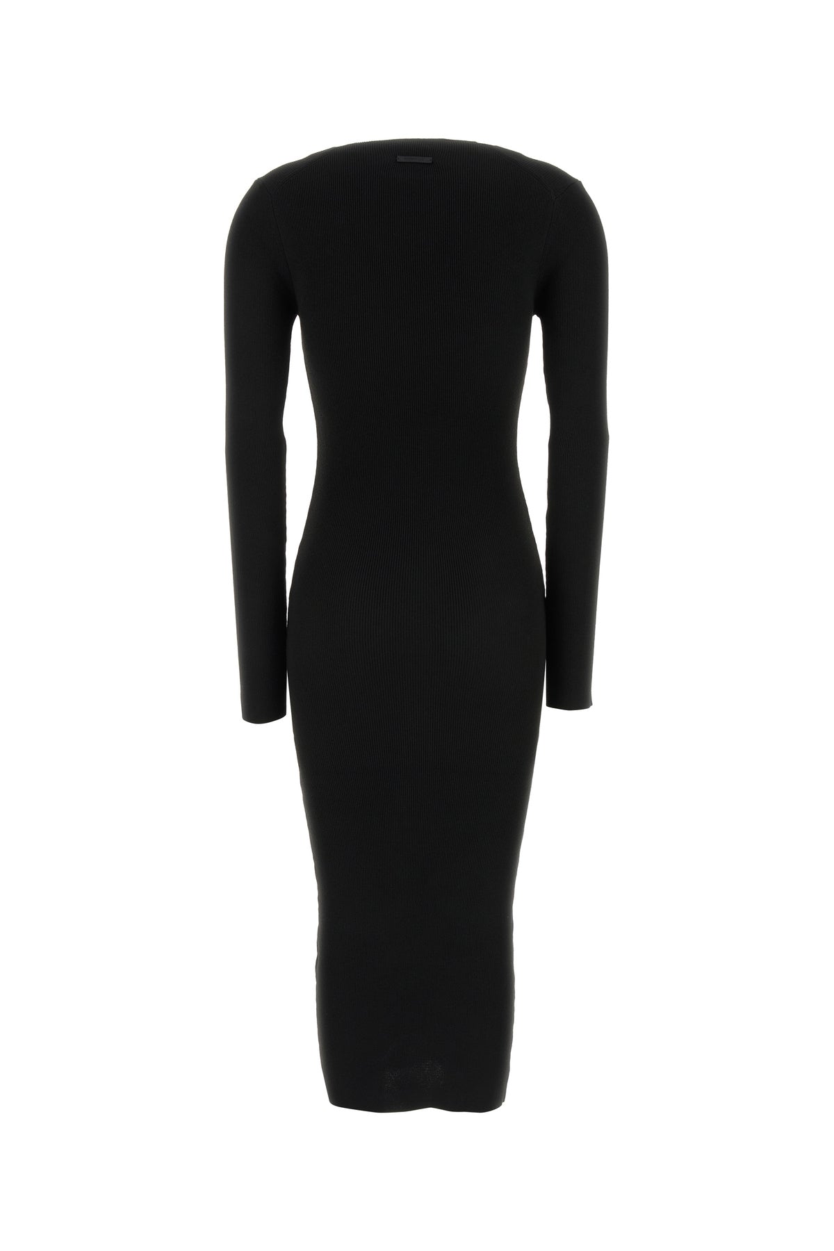 Fitted dress realized in ribbed polyester blend enriched by tonal logoed label at the back.