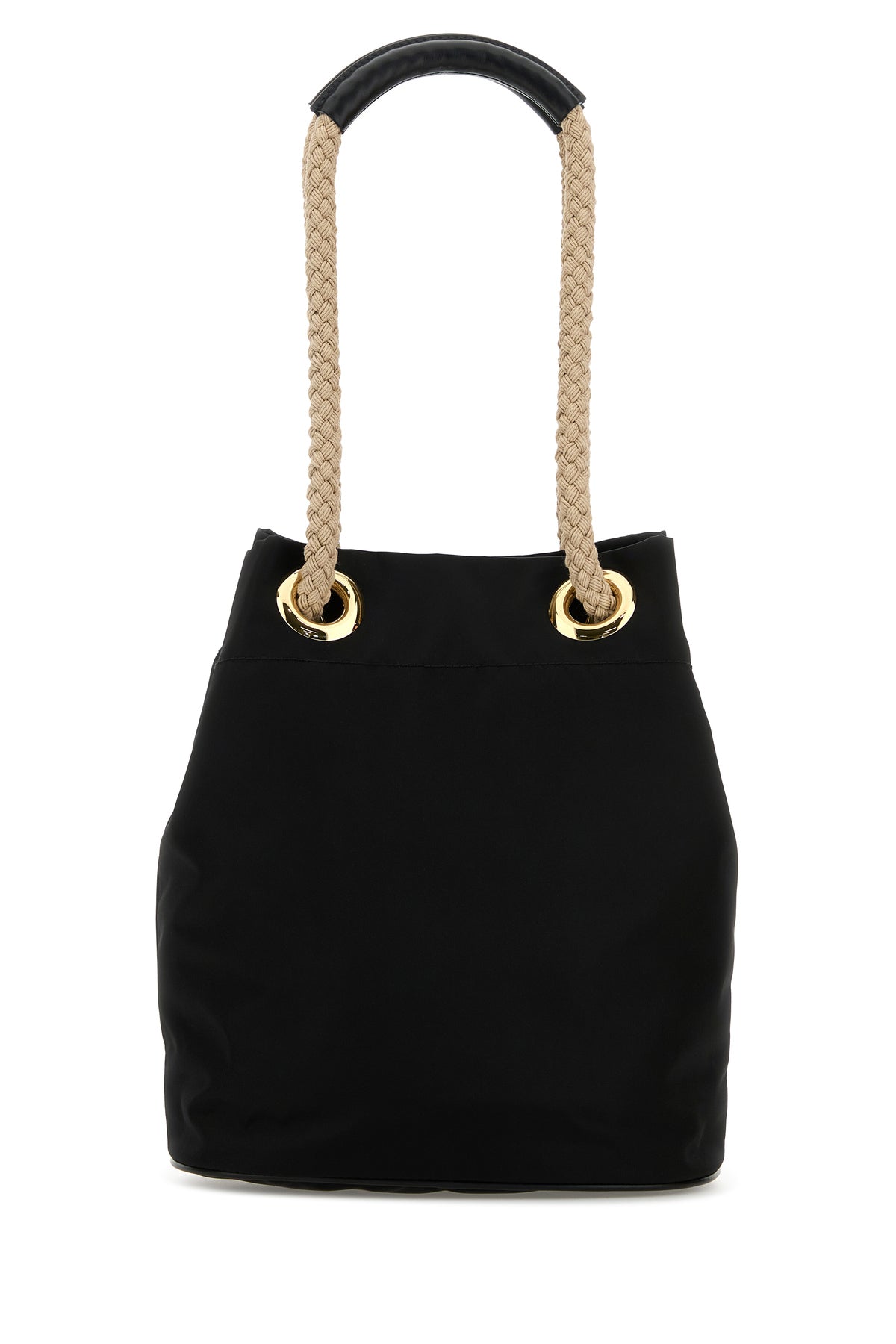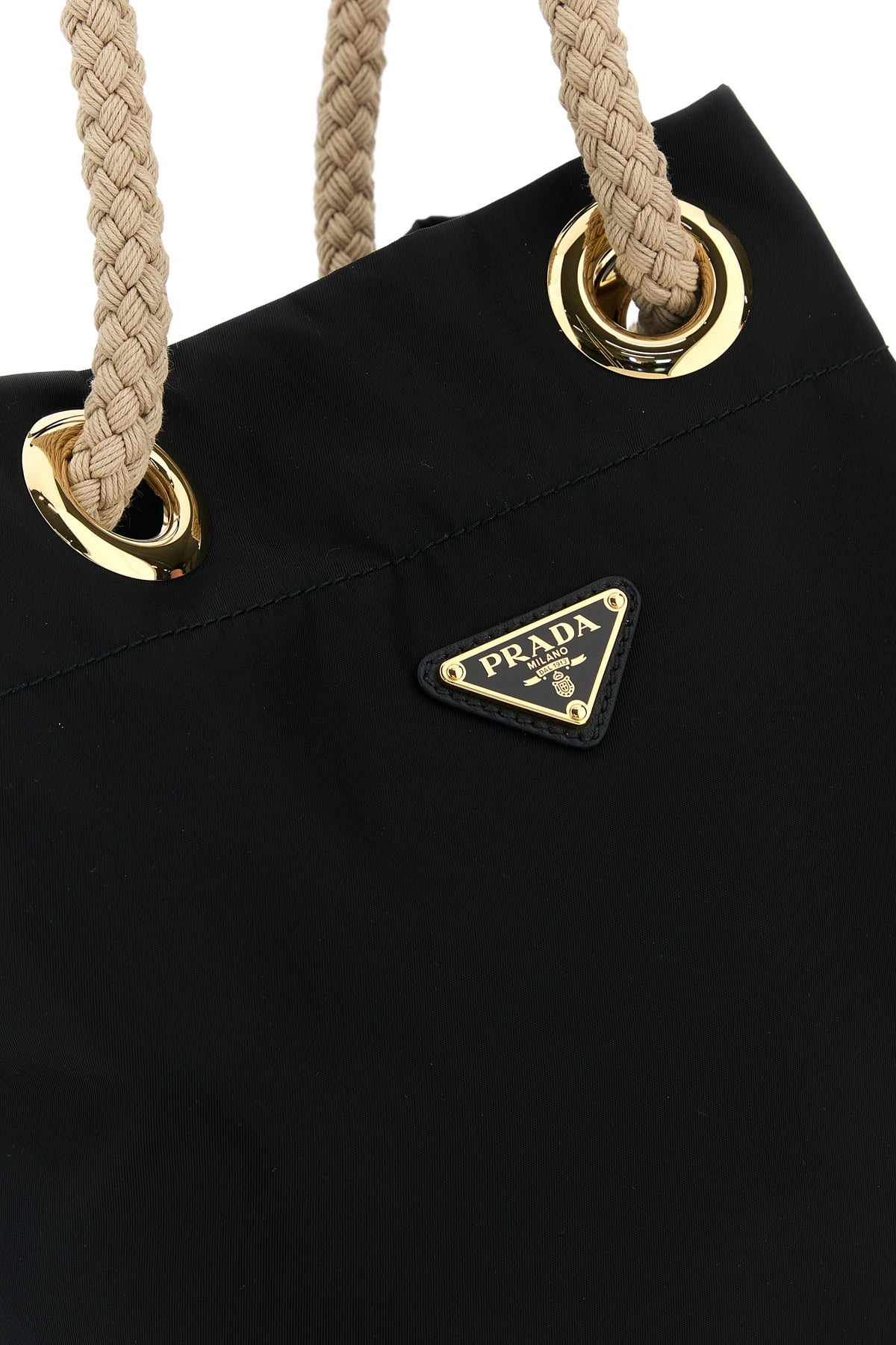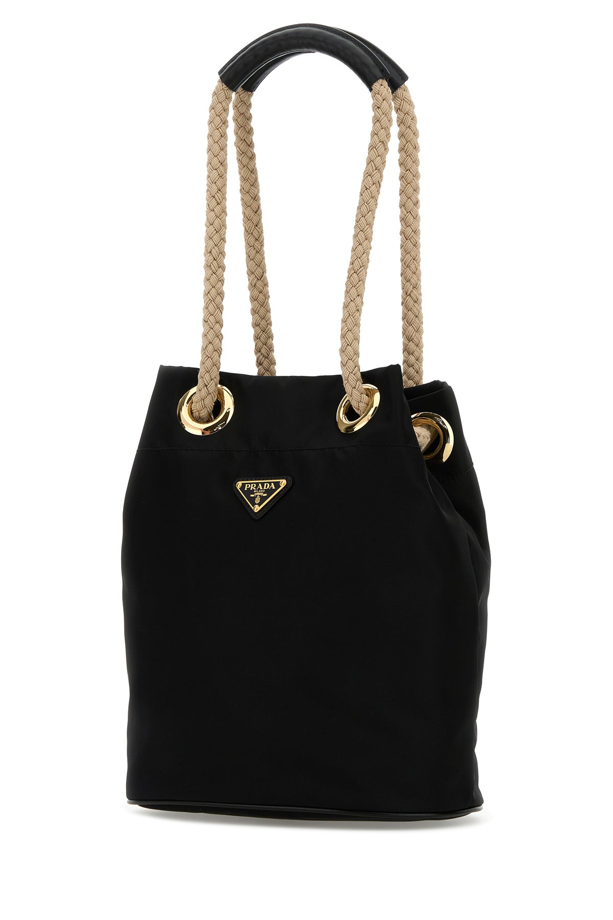 Bucket bag realized in Re-Nylon enriched by iconic logoed metal triangle at the front.