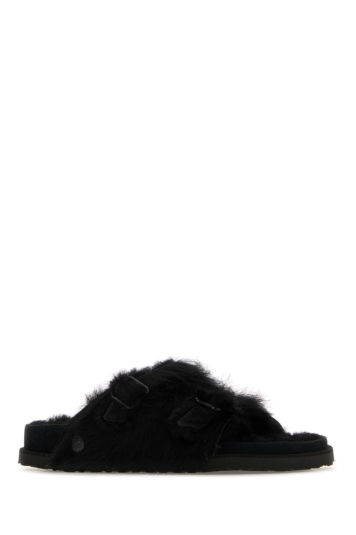 Slippers realized in shearling enriched by logoed metal detail on the side.