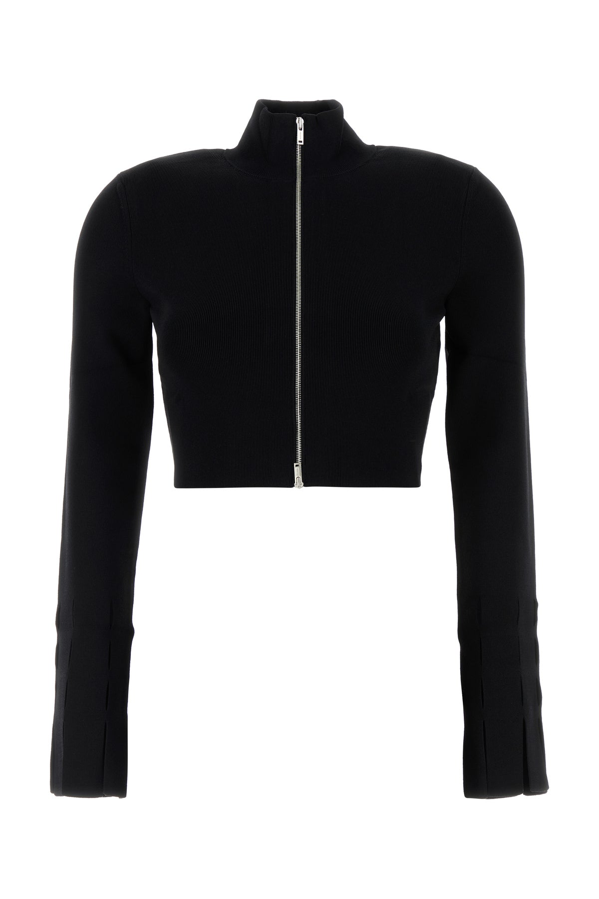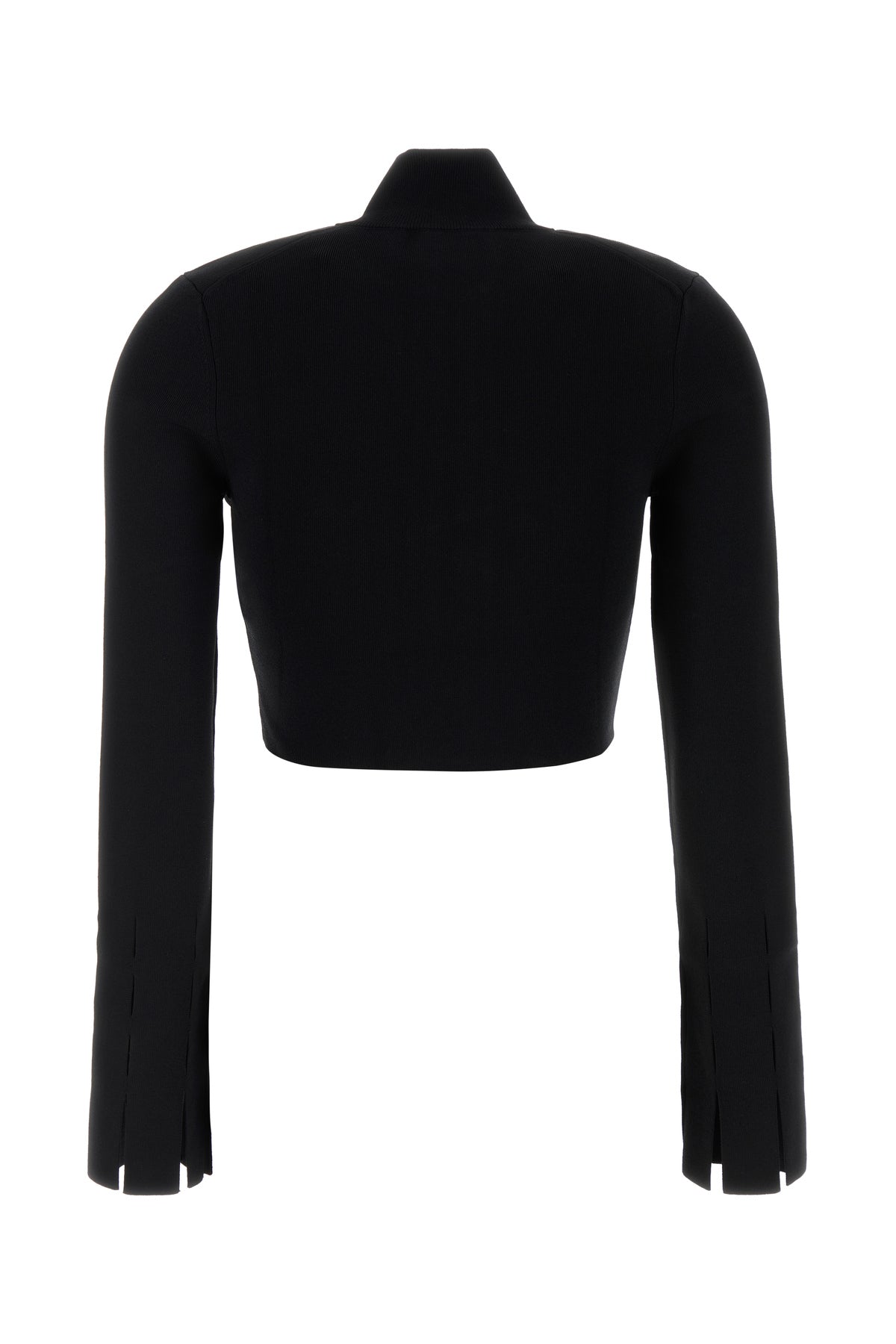 Cropped-cut cardigan realized in blend viscose stretch characterized by slits on the cuffs.