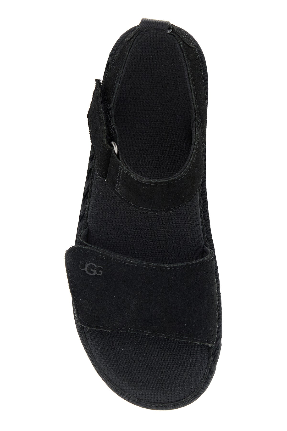 Sandals realized in suede characterized by embossed logo on the velcro strap on the instep.