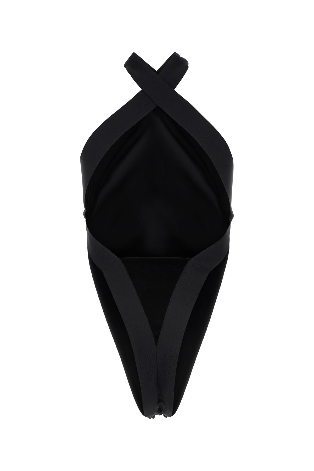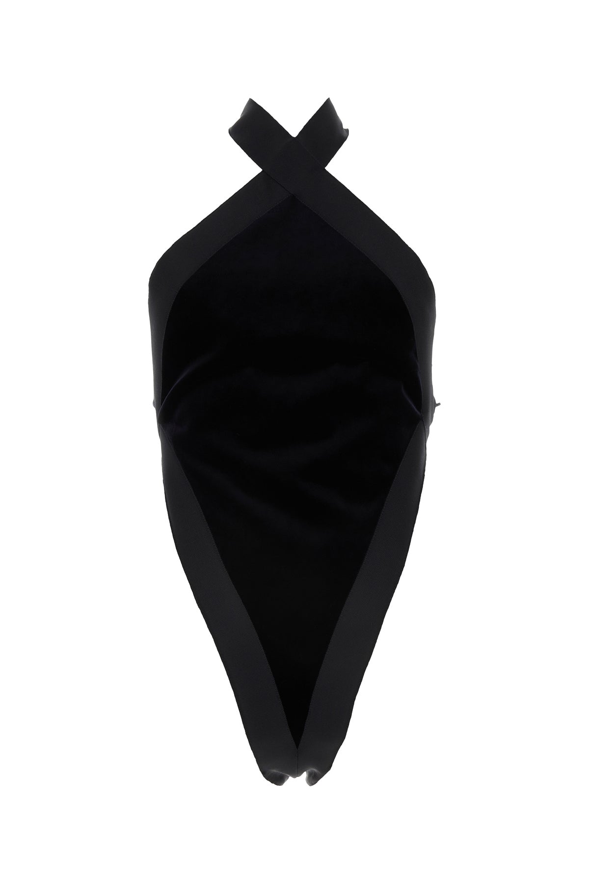 Bodysuit realized in velvet characterized by halter neckline.