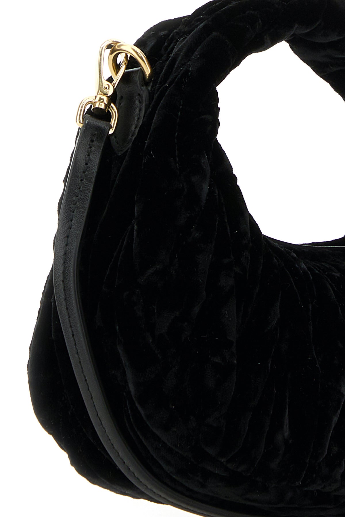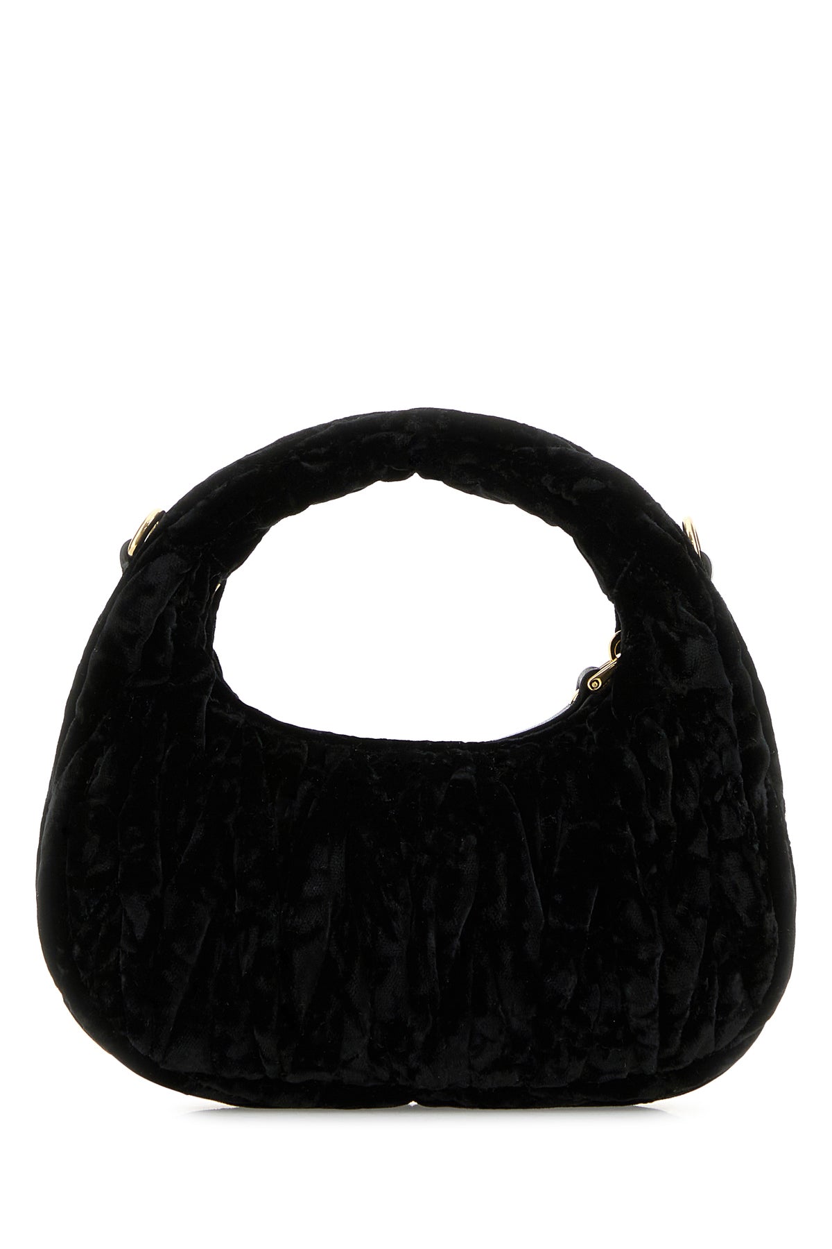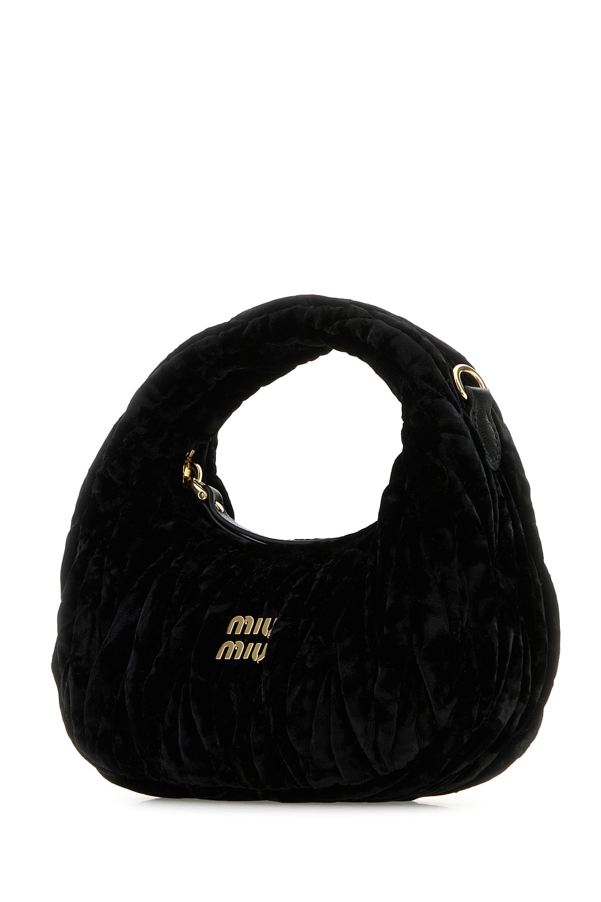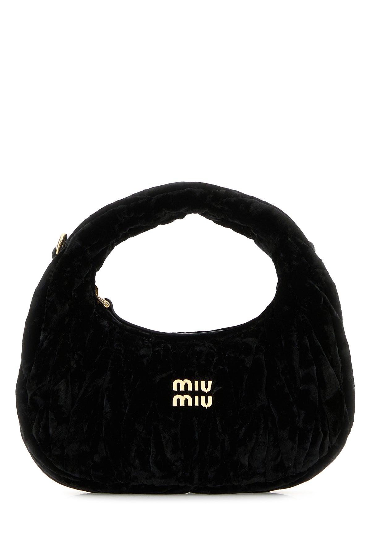 Handbag realized in velvet enriched by metal lettering logo at the front.