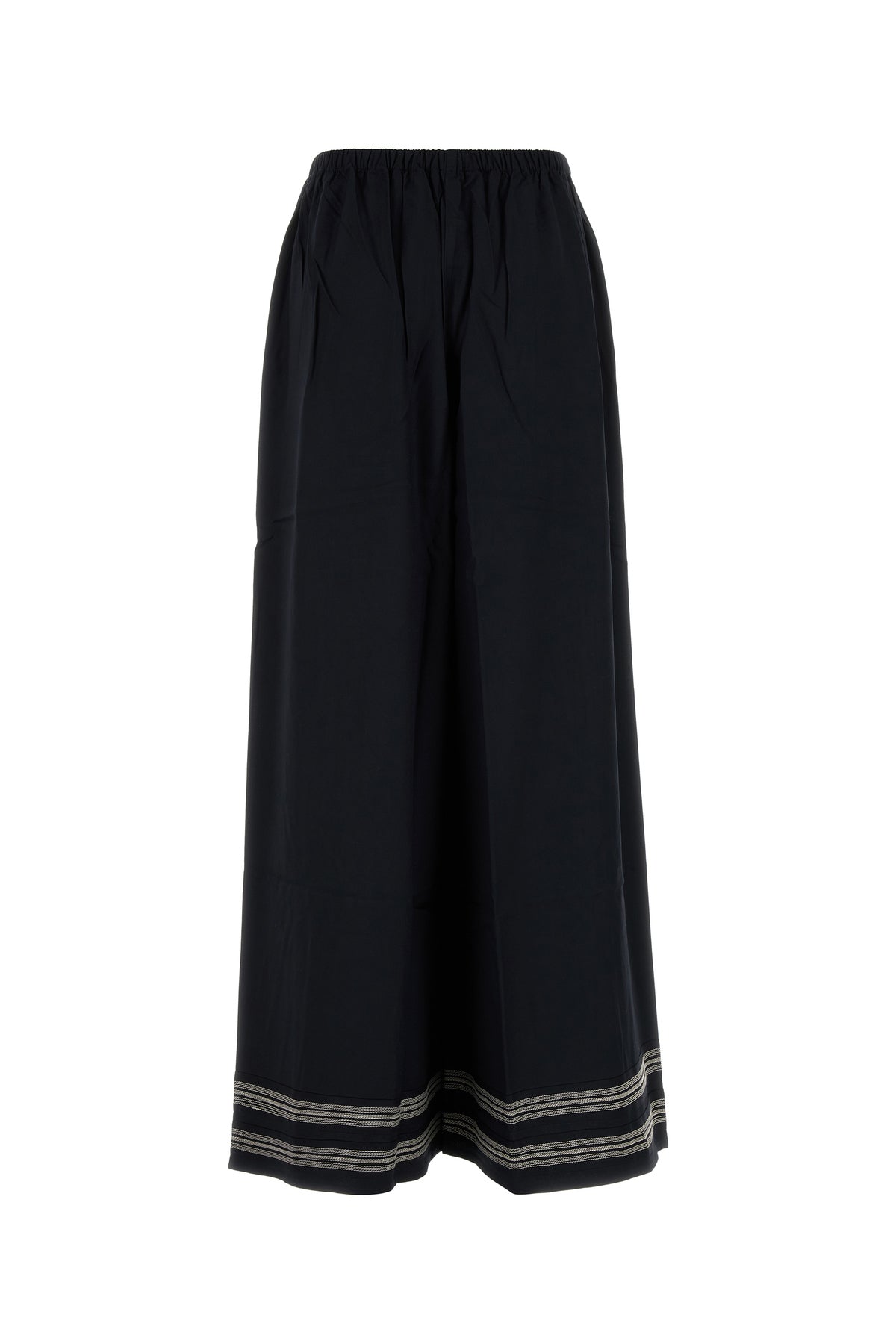 Wide-leg pant realized in viscose characterized by peculiar embroidery on the hemline.