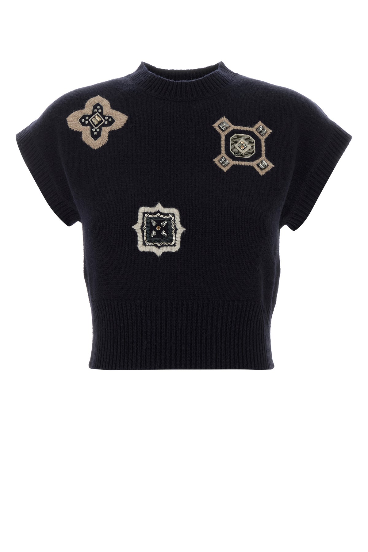 Vest realized in wool and cashmere characterized by peculiar embroidery on the entire surface.