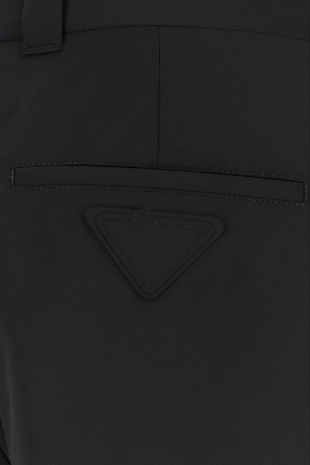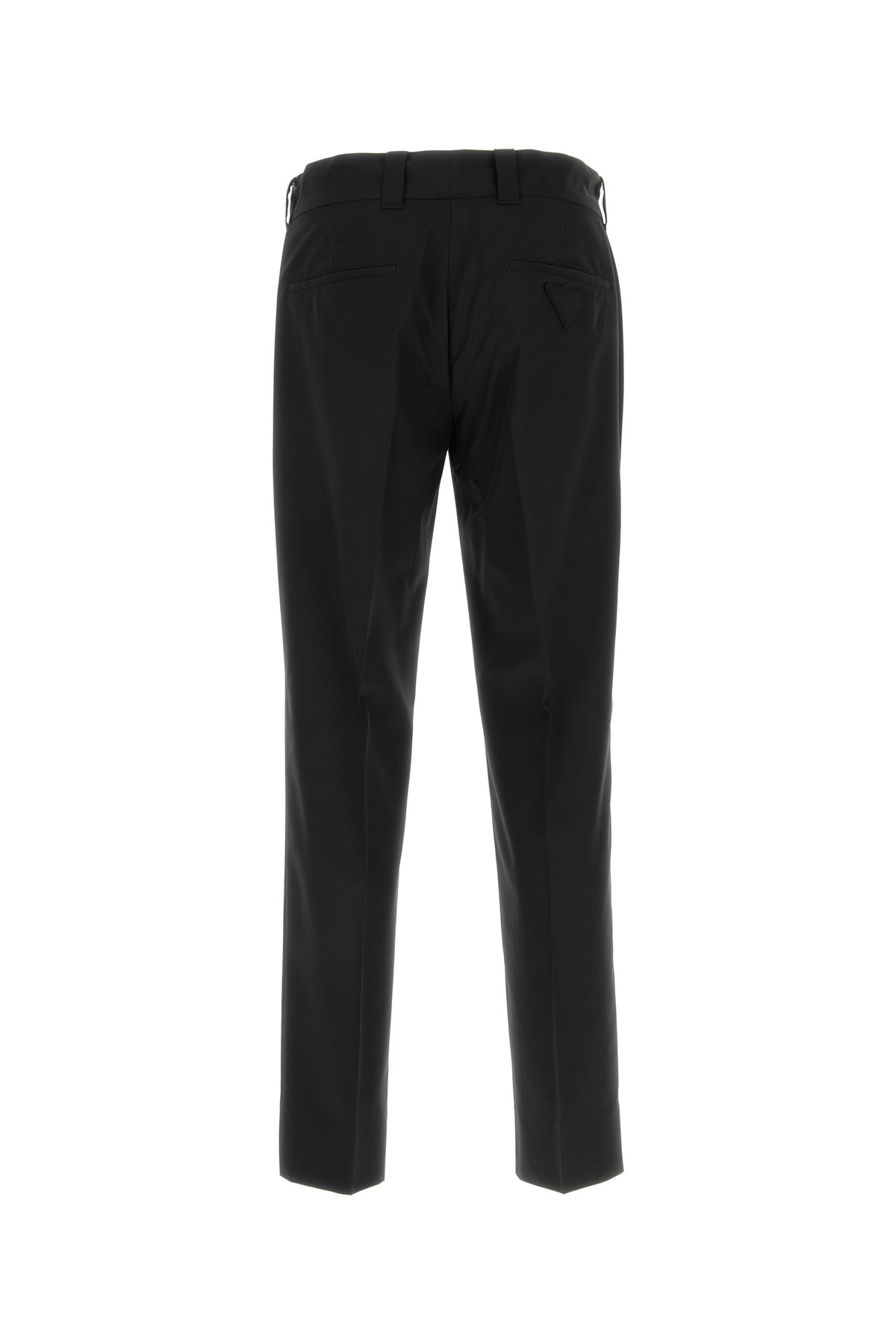 Pant realized in virgin wool blend enriched by iconic tonal fabric triangle at the back.