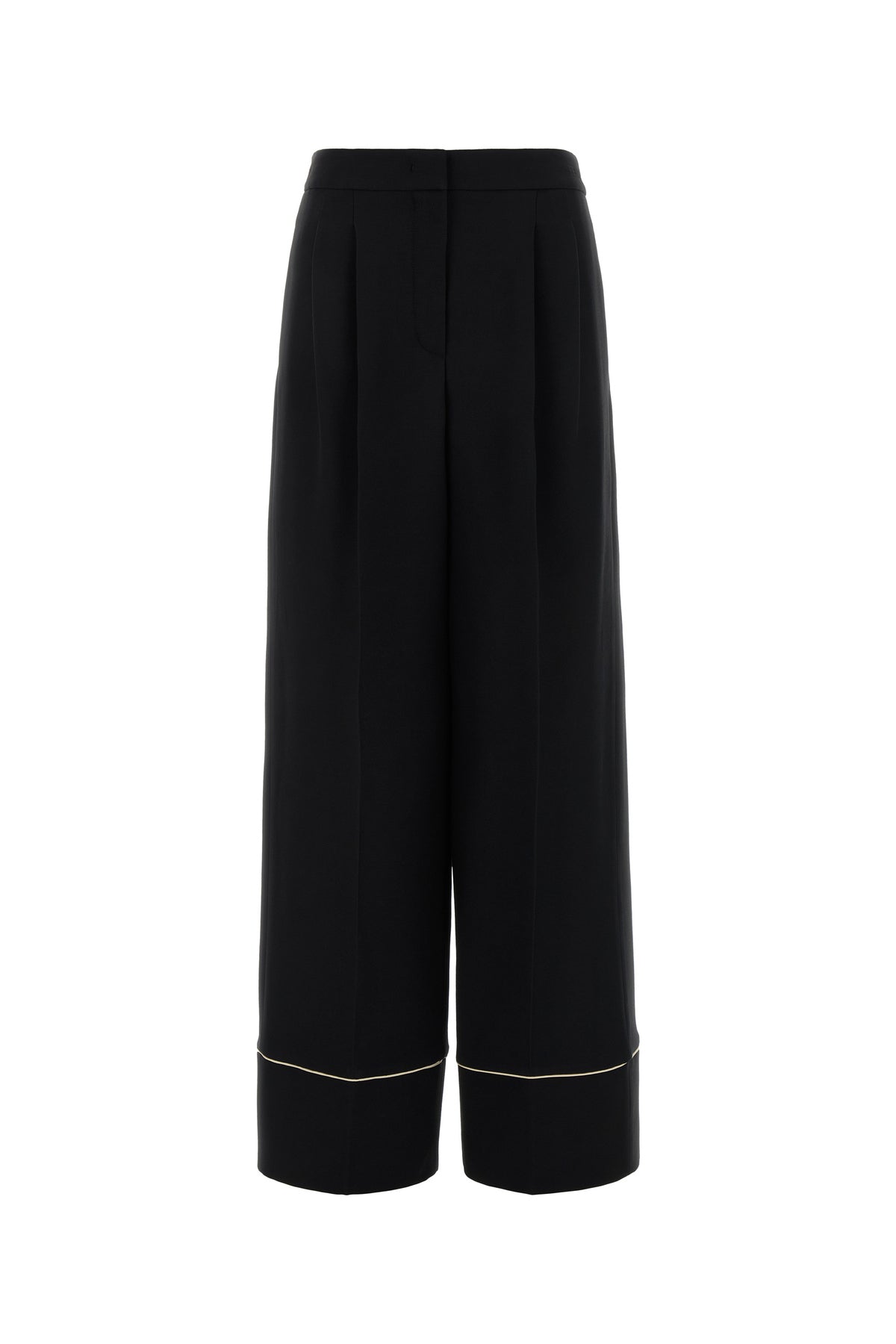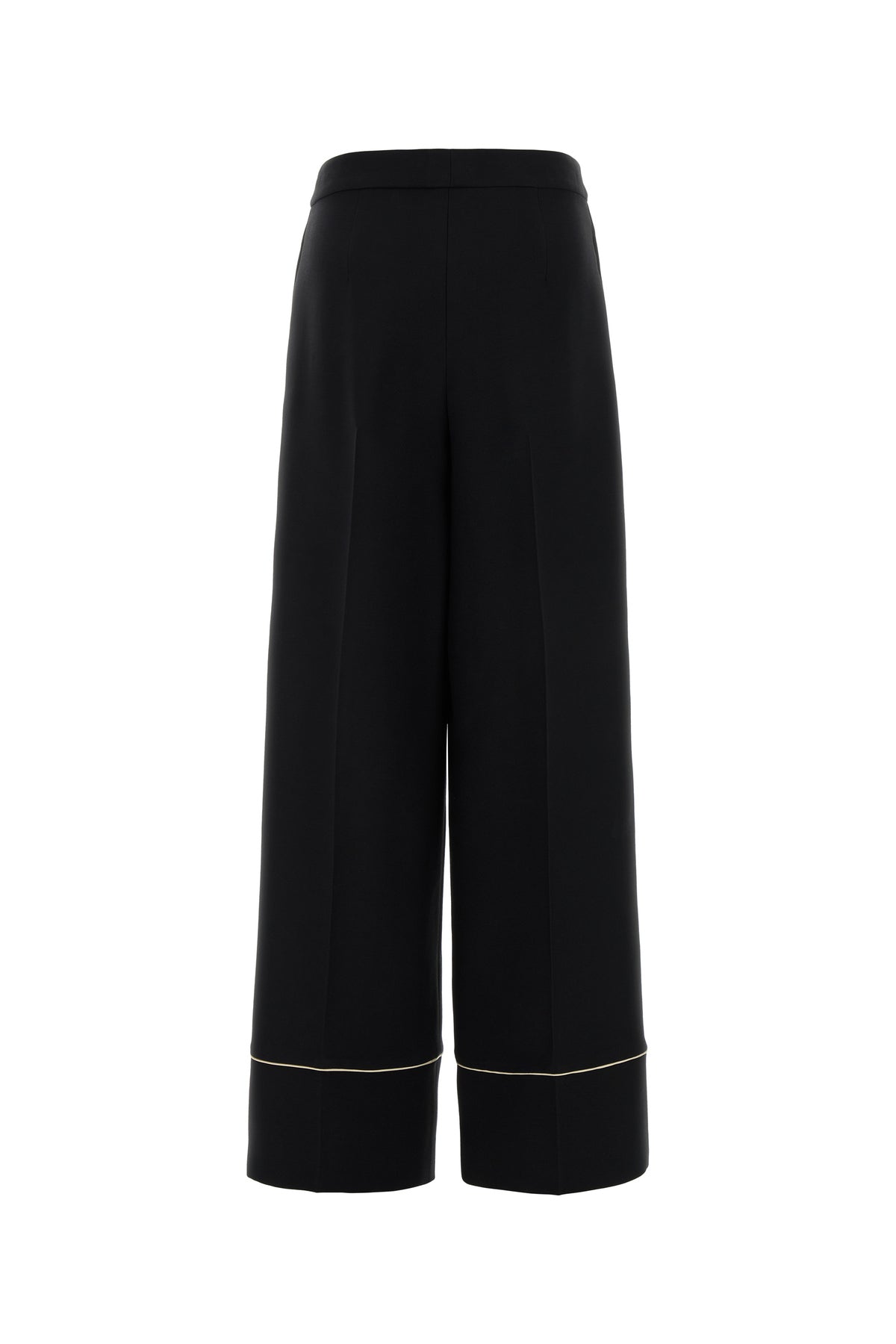 Pyjamas pant realized in wool and silk characterized by contrasting piping on the hemline.